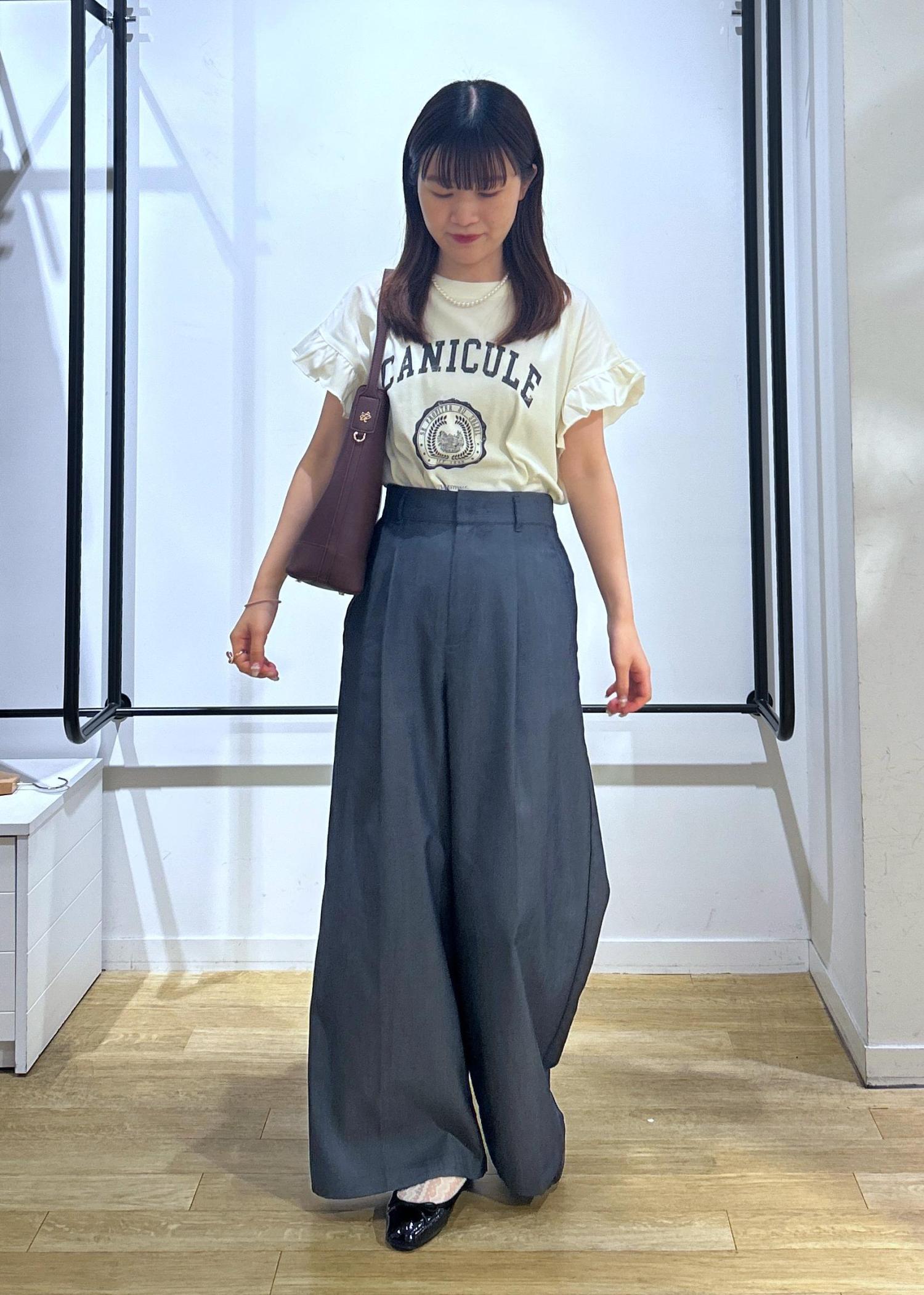 Tシャツはワイドパンツにインすることで、すっきりとしたシルエットで合わせて頂けます◎