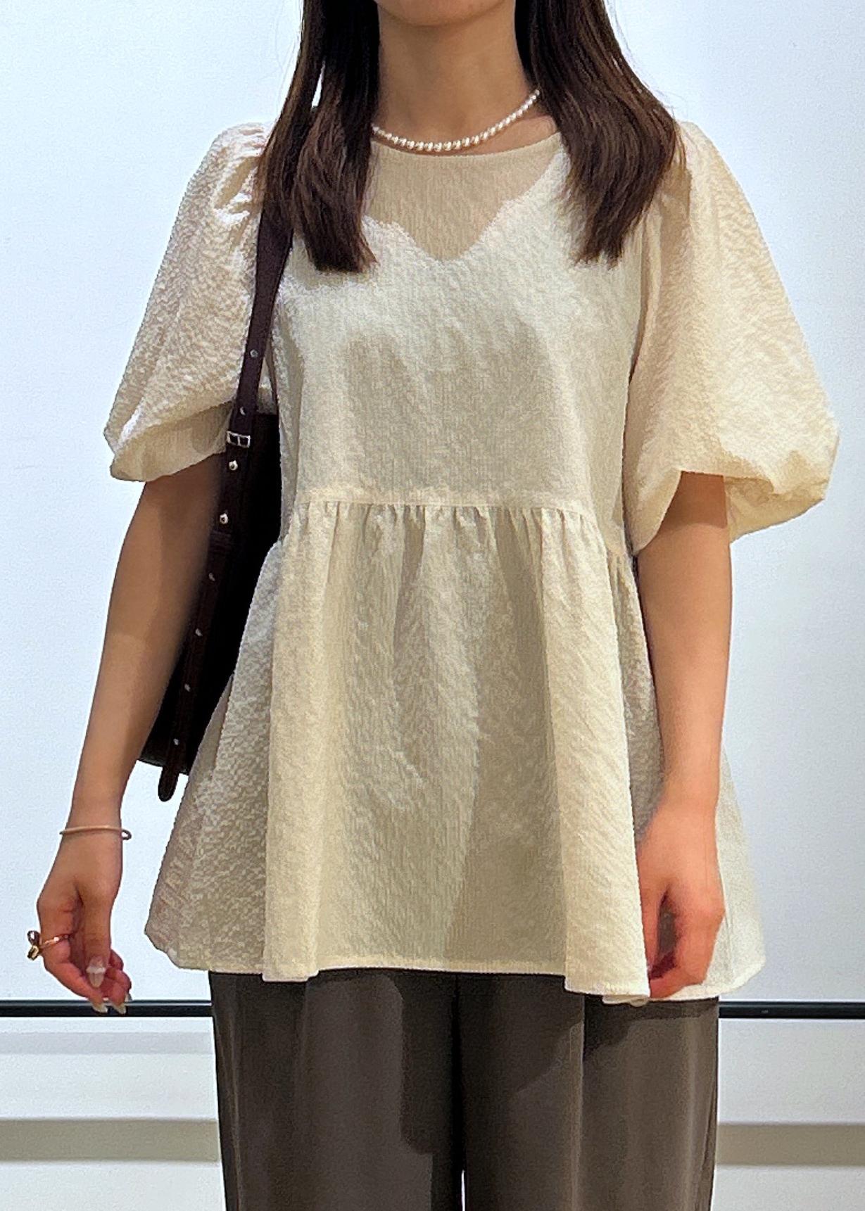 ペプラムブラウスは、程よいボリューム感なので綺麗なシルエットでお召頂けます◎