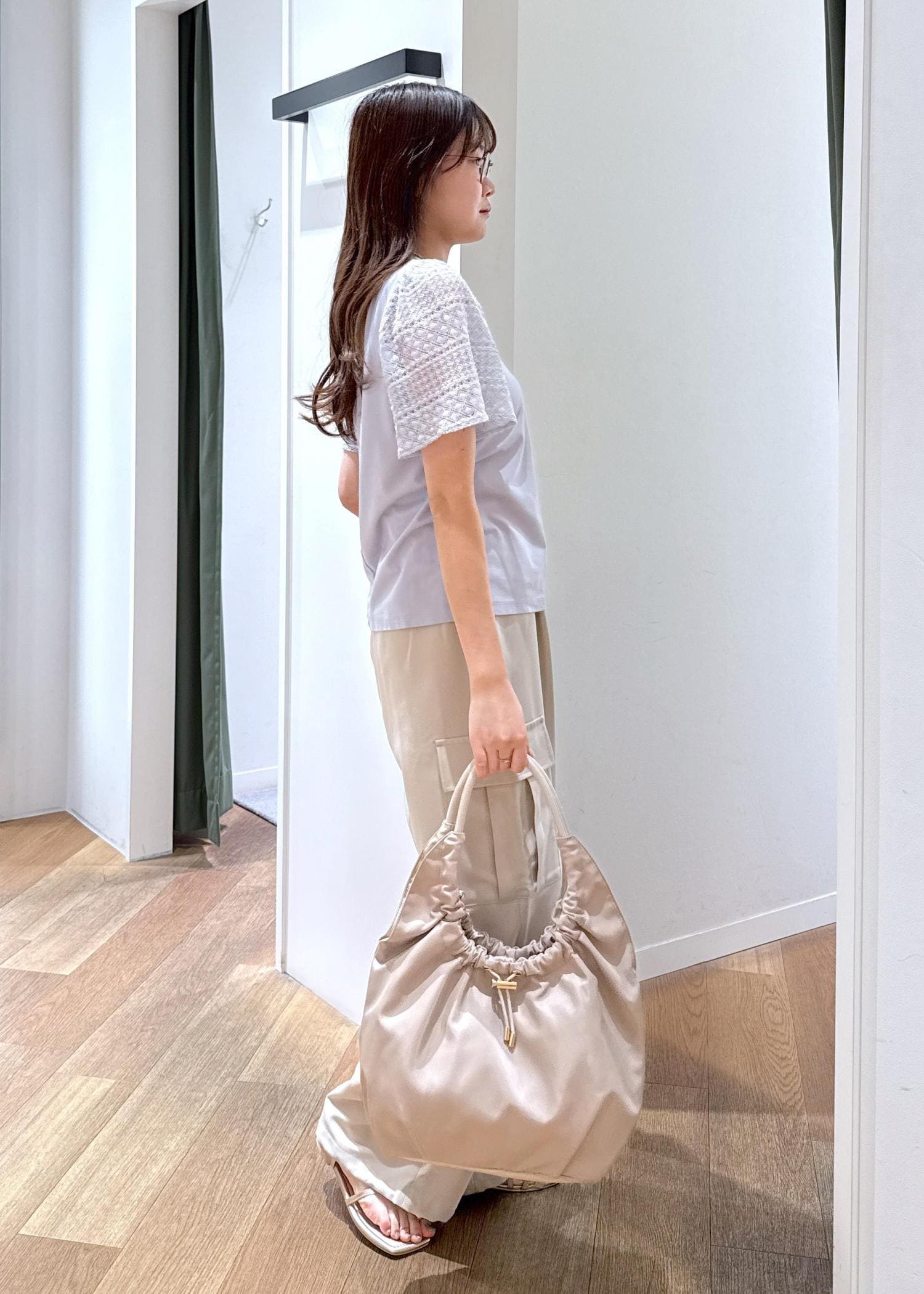 実用性のある大きめなバッグを持ち、日常に取り入れやすいコーディネートにしました。