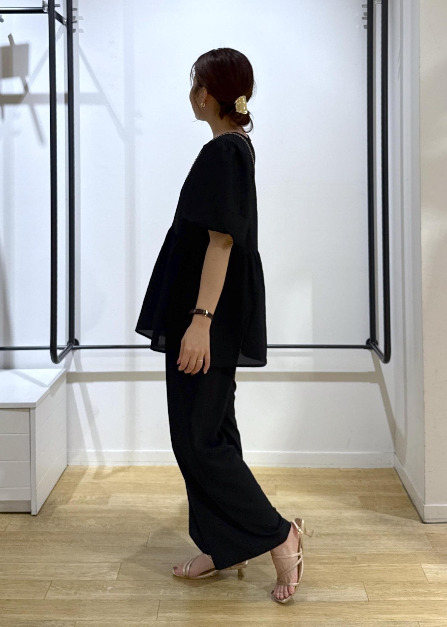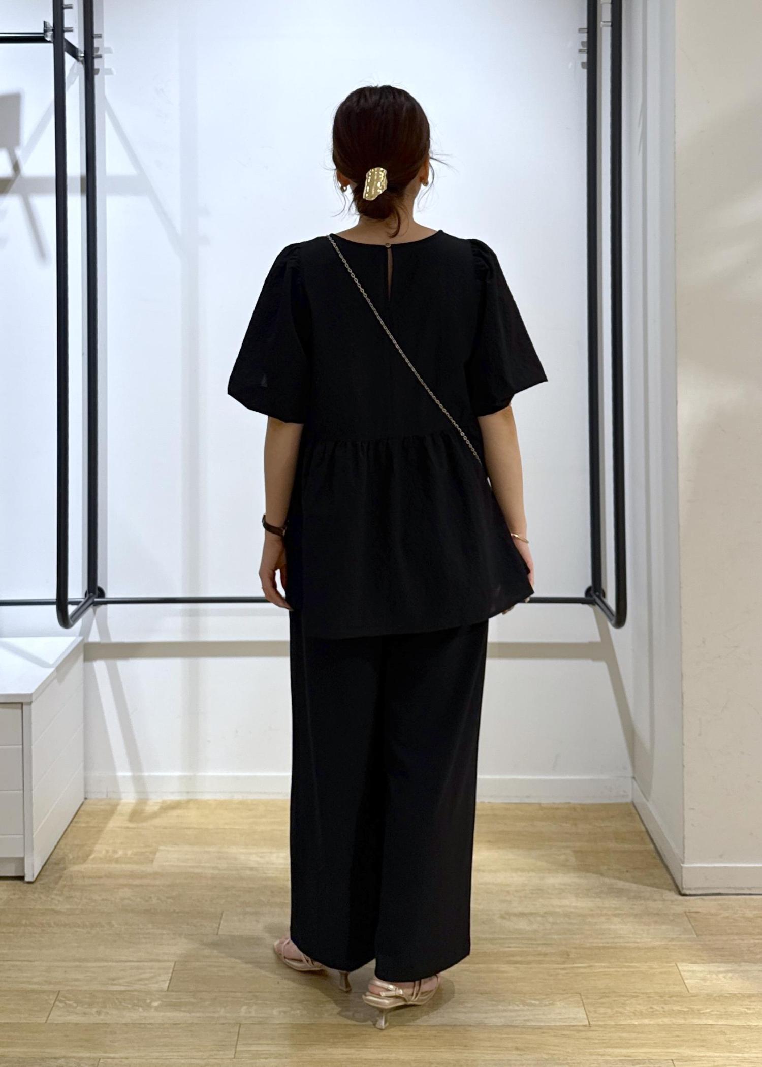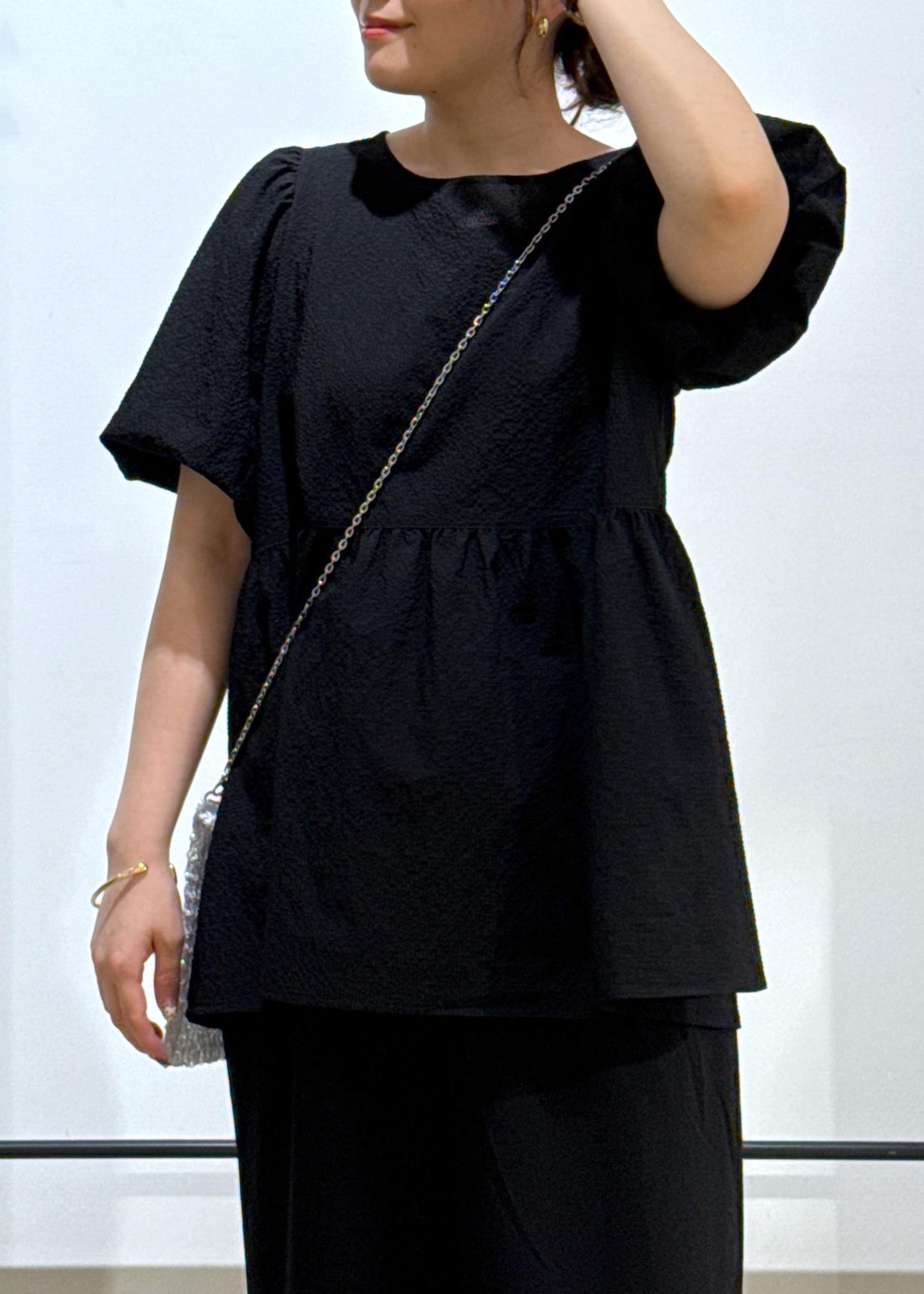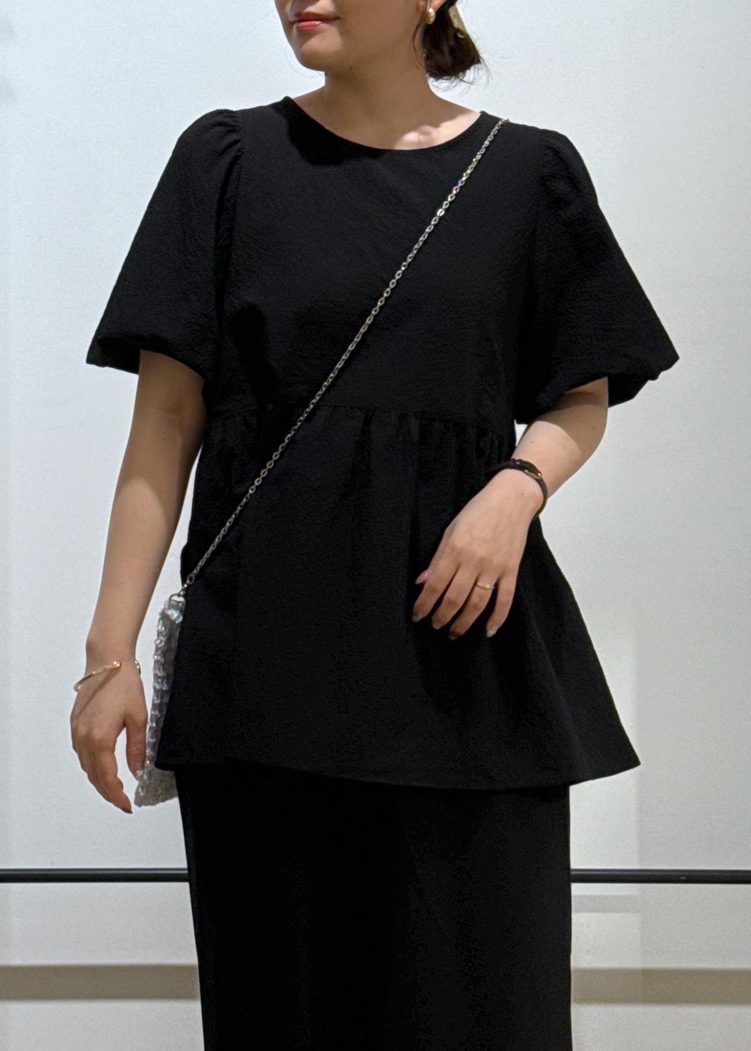 ペプラムデザインもブラックで合わせると大人っぽく着用できますよ◎