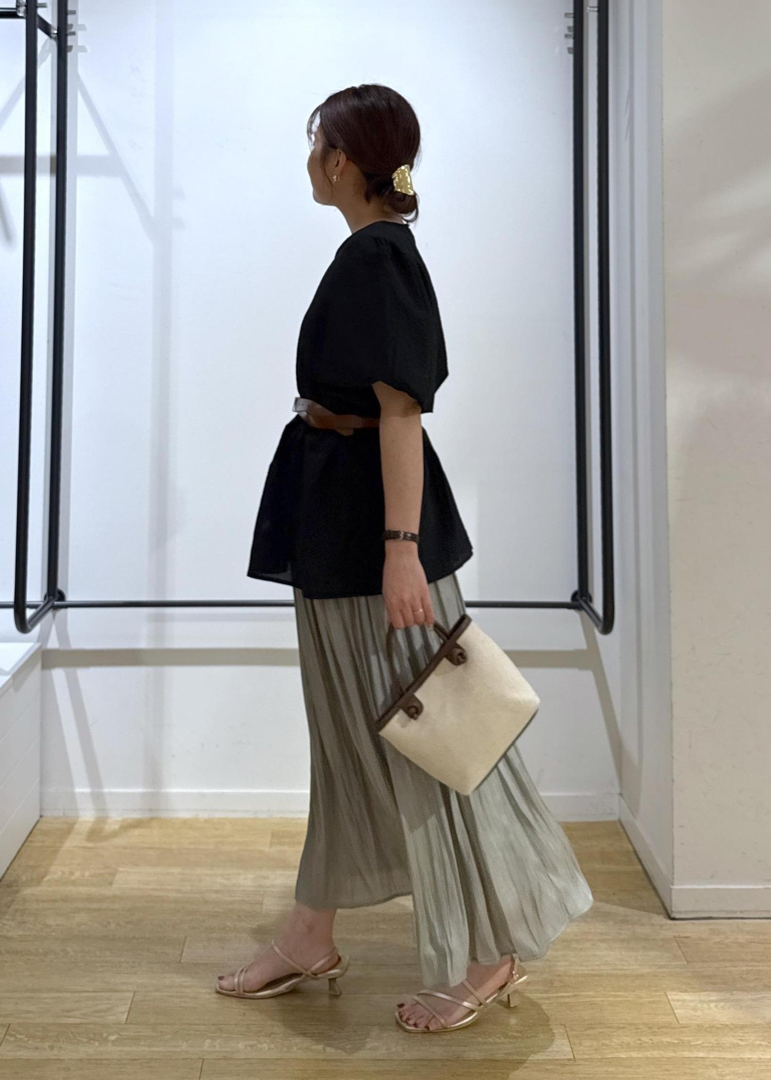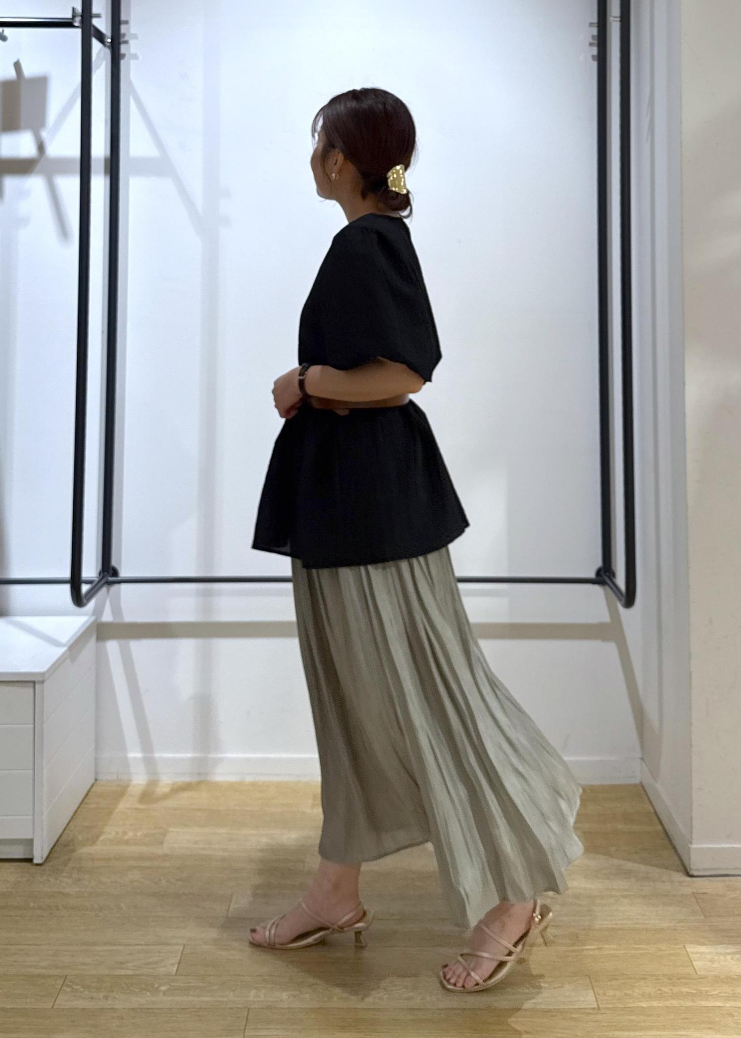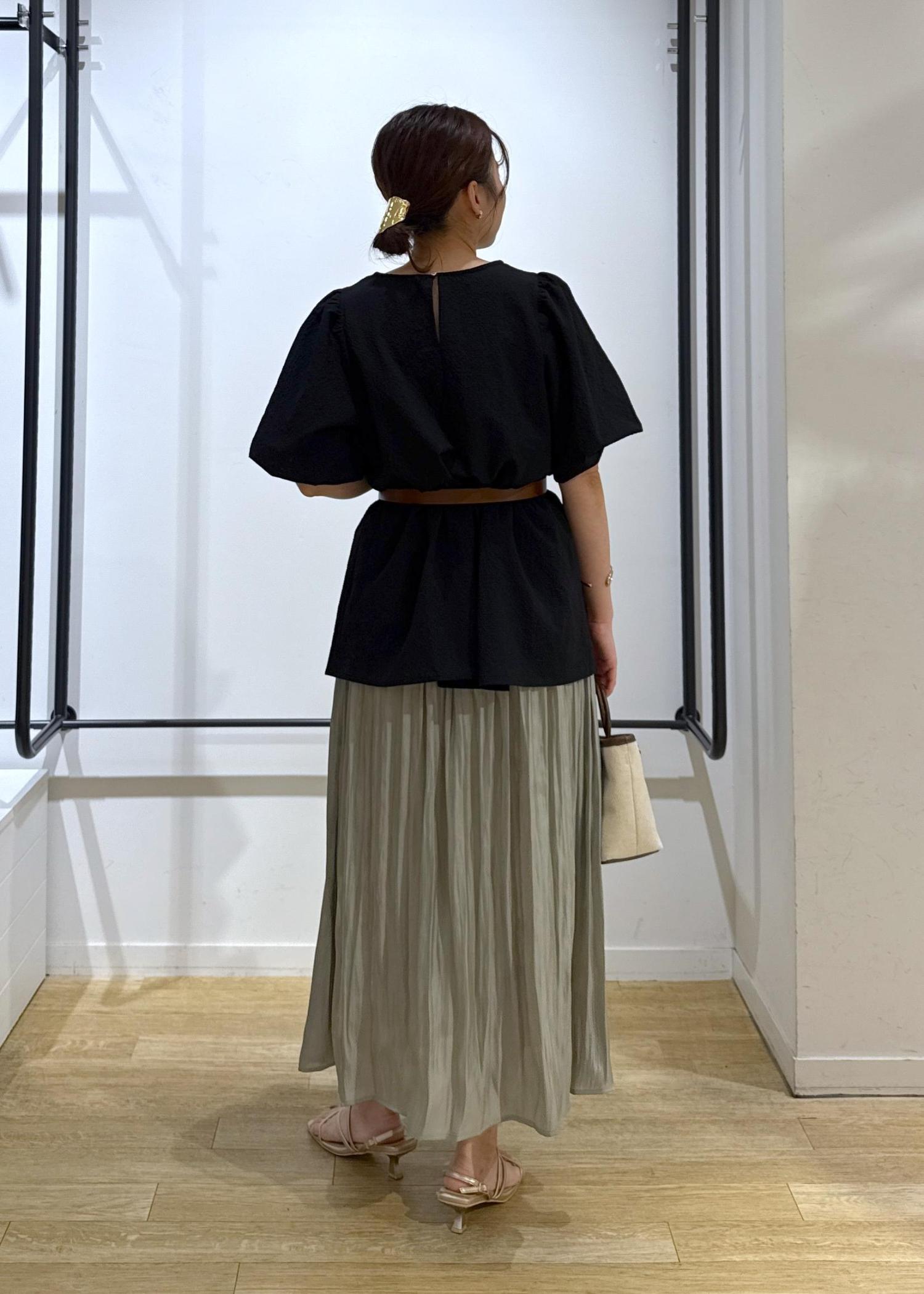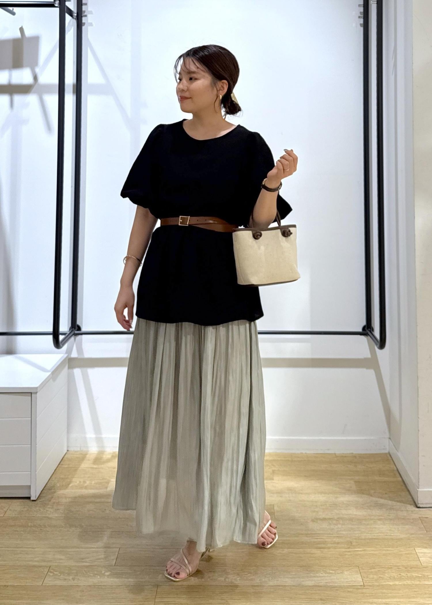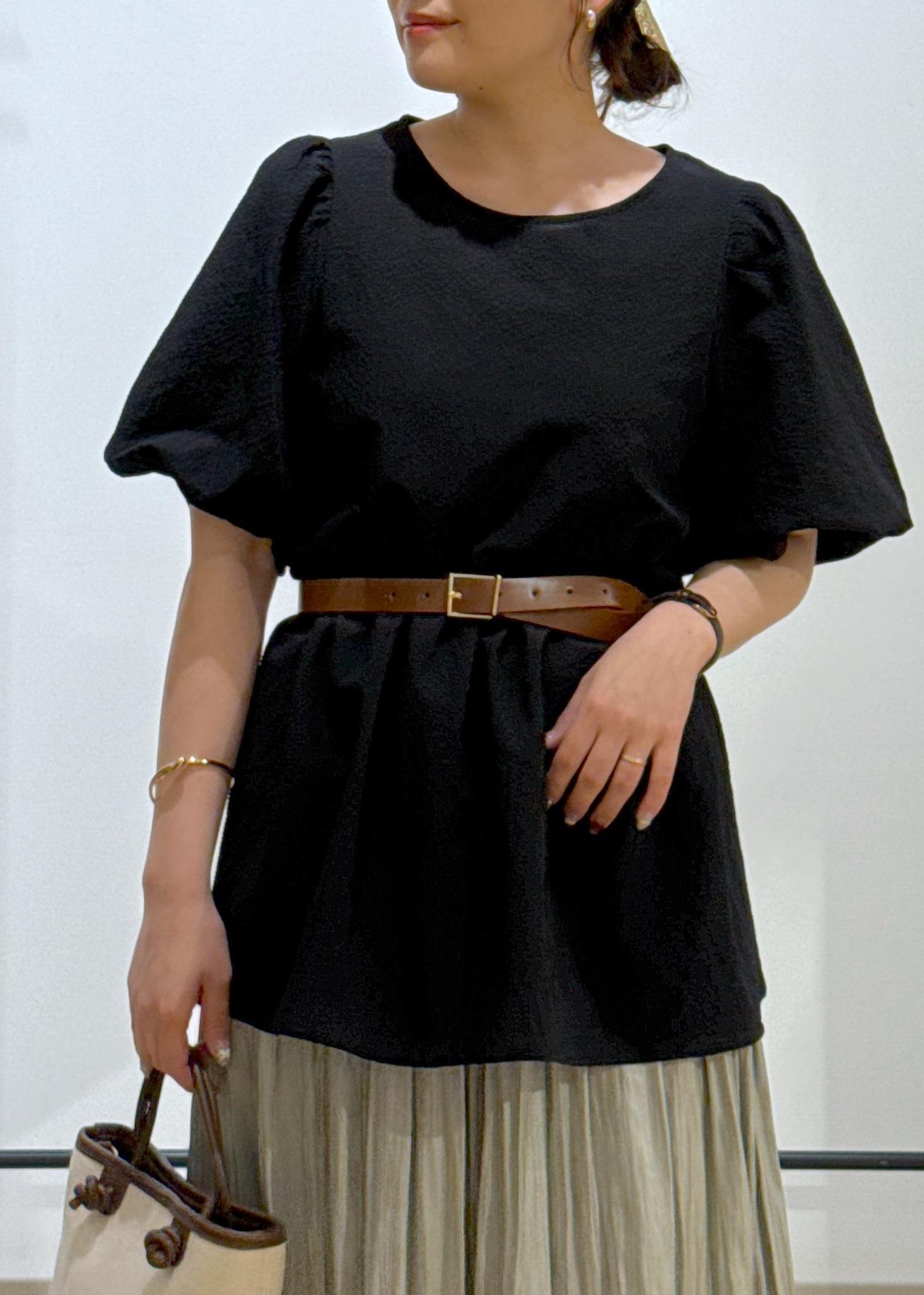 ペプラムデザイン×フレアスカートなのでウエストベルトでメリハリつけて着用してみました!