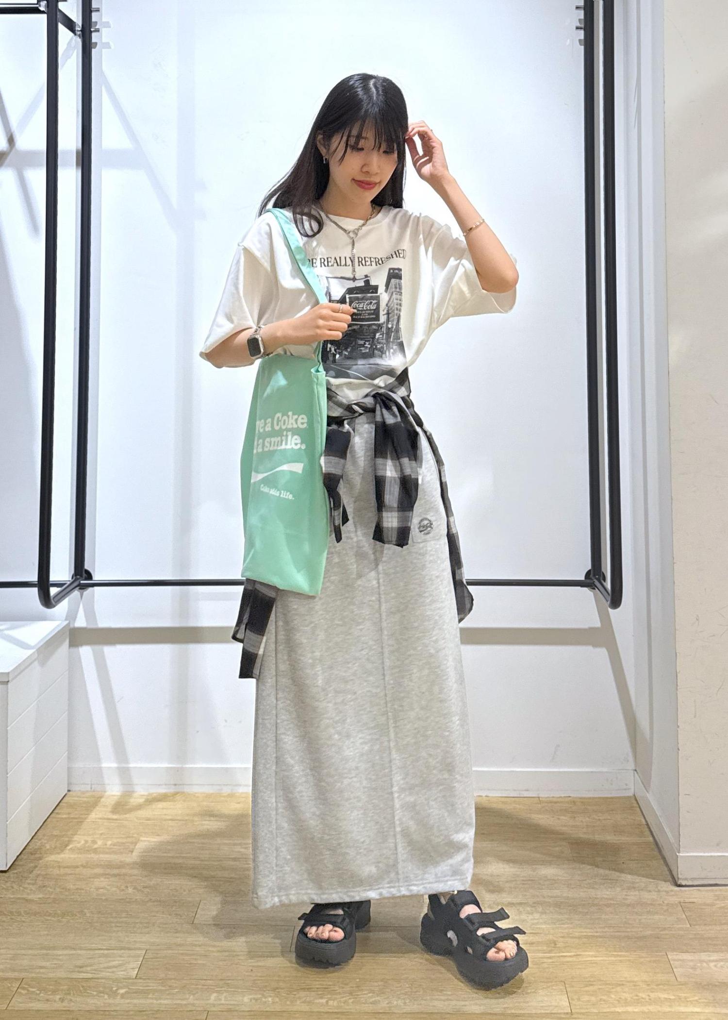 ROPÉ PICNIC【Coca-Cola】【汗染み加工・セットアップ対応】ラメ入りミニ裏毛アイラインスカートライトグレー / M¥4,499レビュースリットがあり、後ろの英字がワンポイントになっていてかわいいです!ウエストに紐もついているので、調節も◎