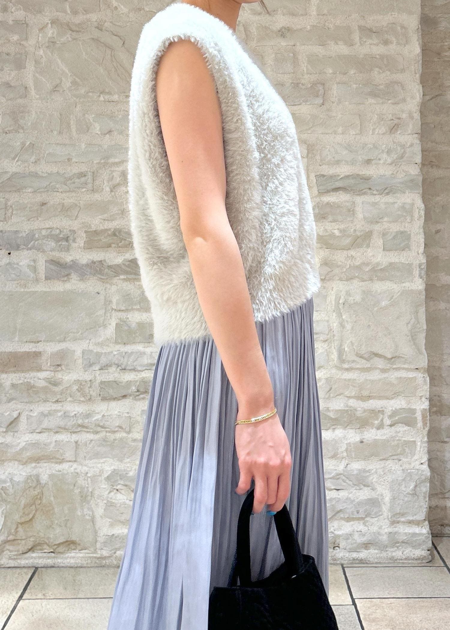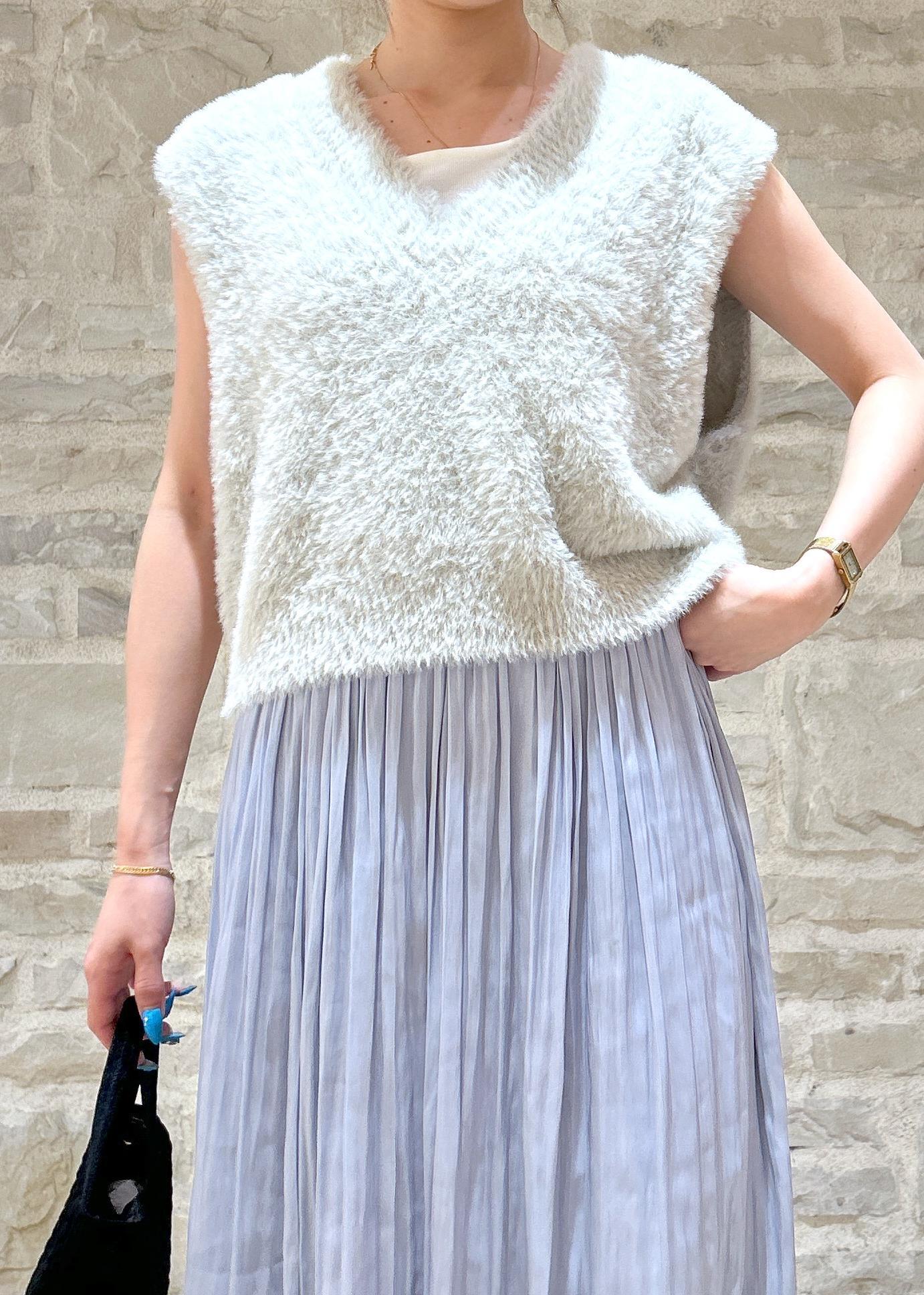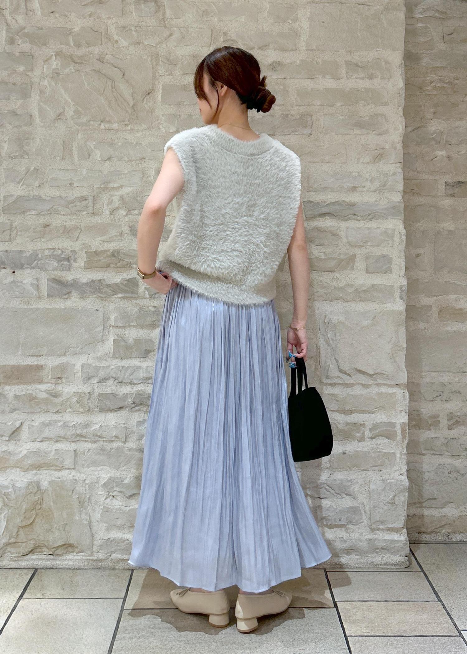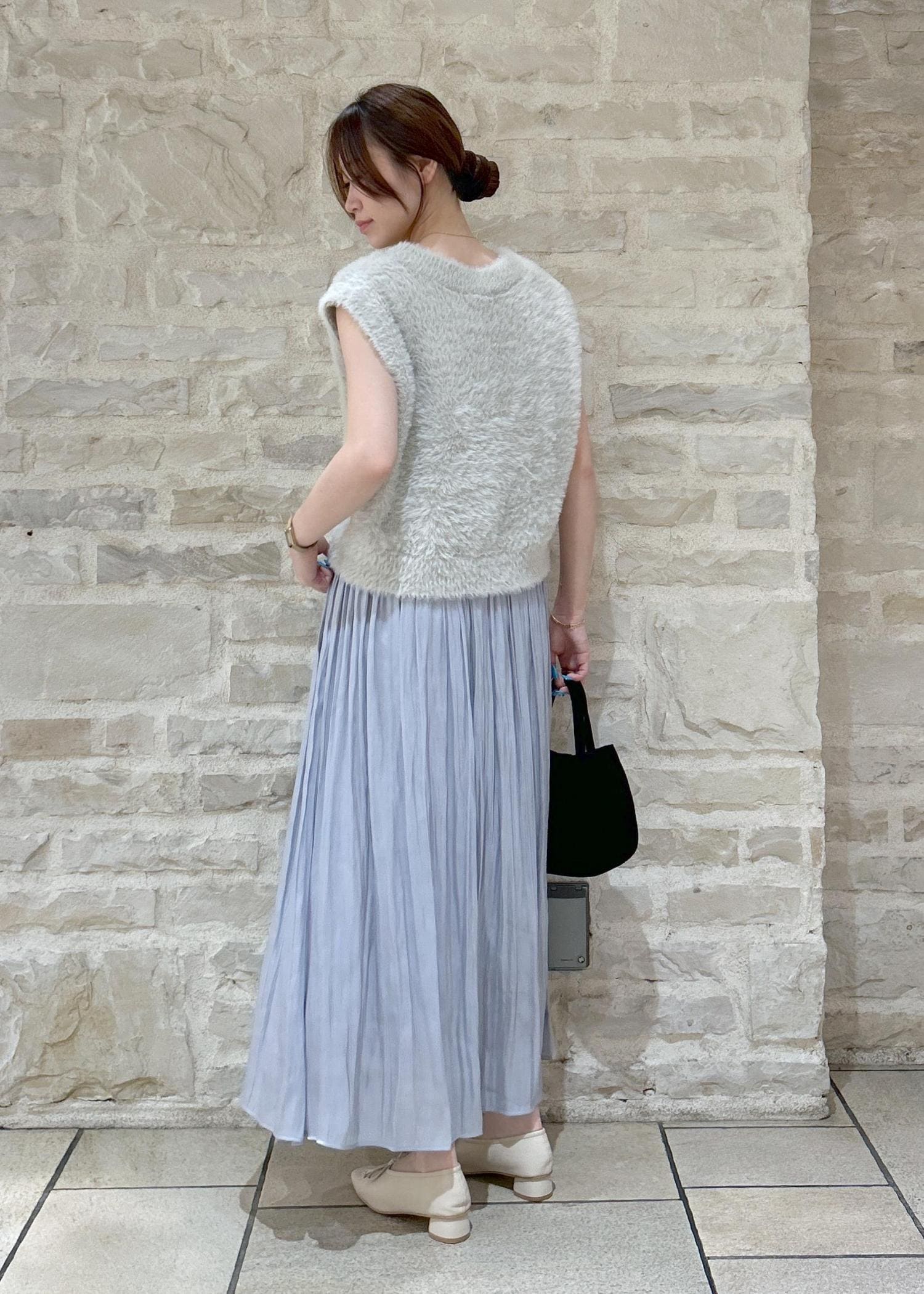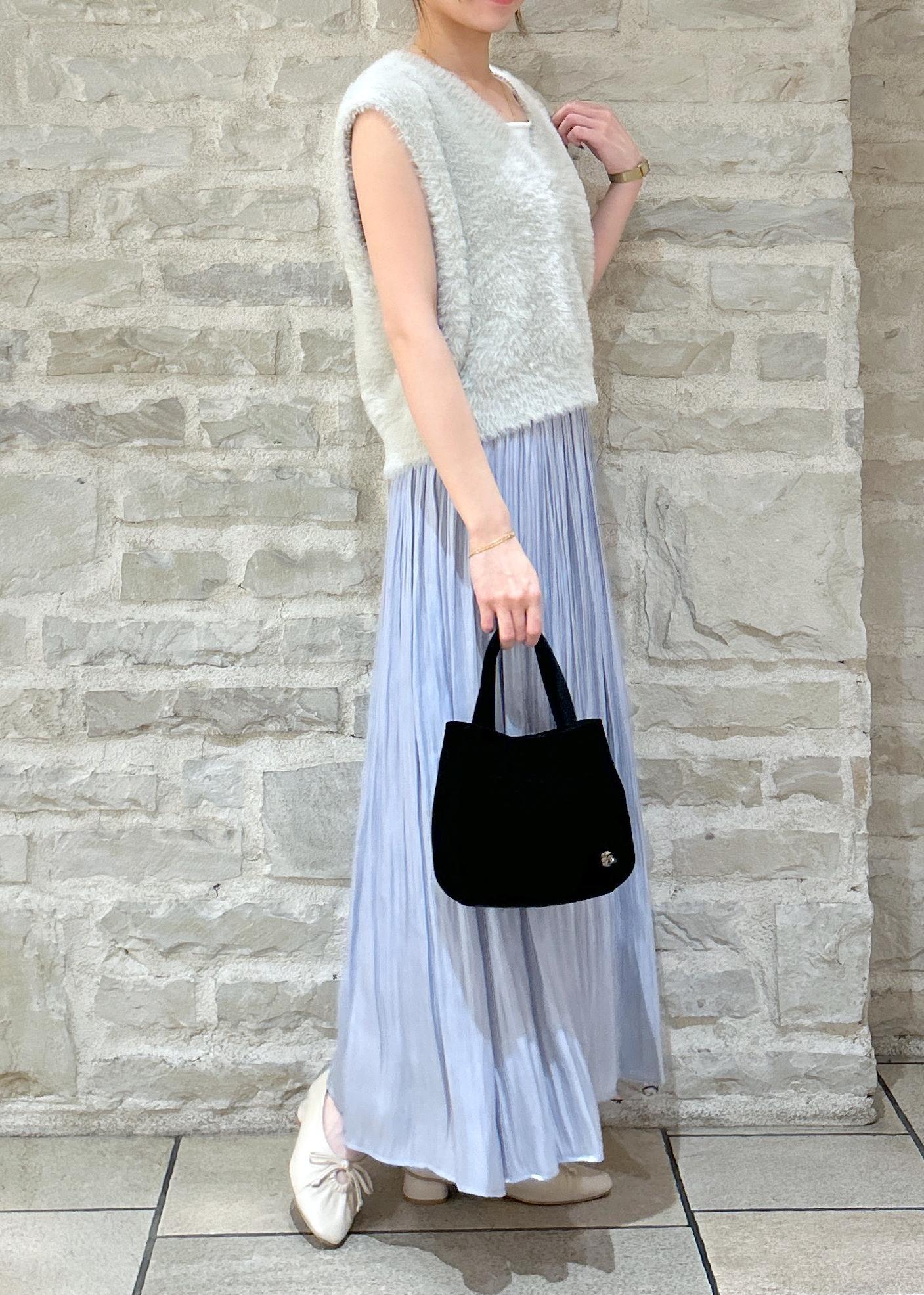 シャギーニットにスカートを合わせてキレイめな秋スタイリングにしました。