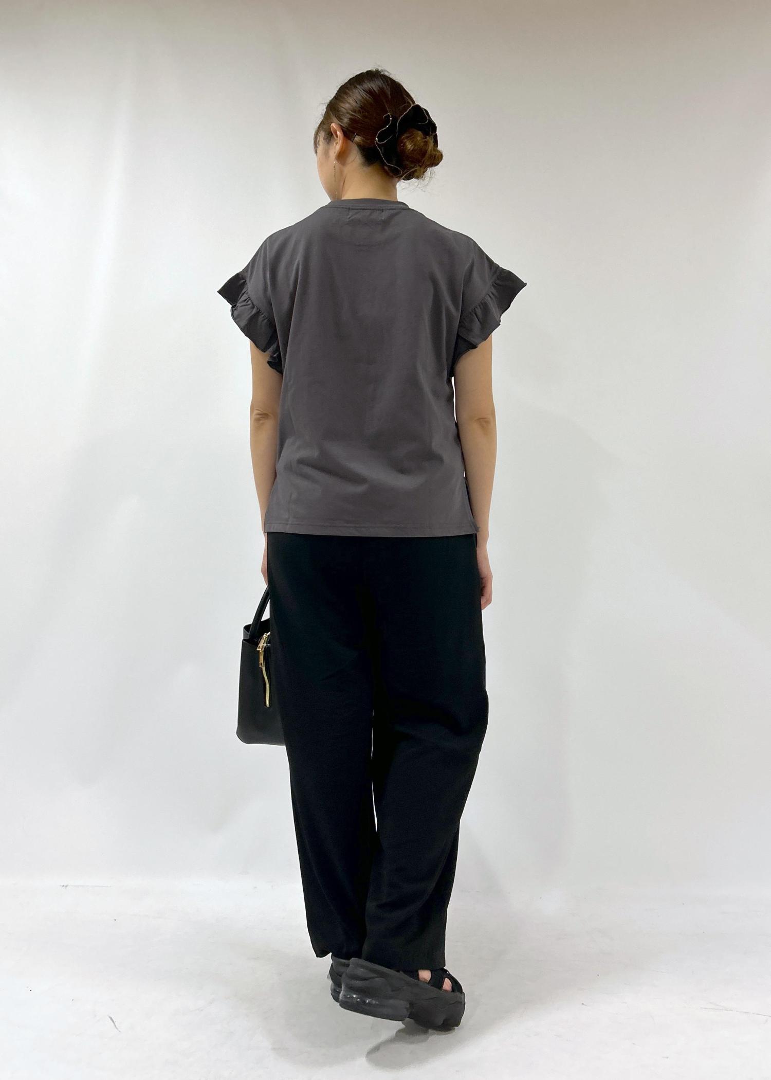 ROPÉ PICNIC袖フリルカレッジロゴTシャツチャコール / 38¥4,499レビューフリル袖になっているので甘くなりすぎないチャコールを選びました。