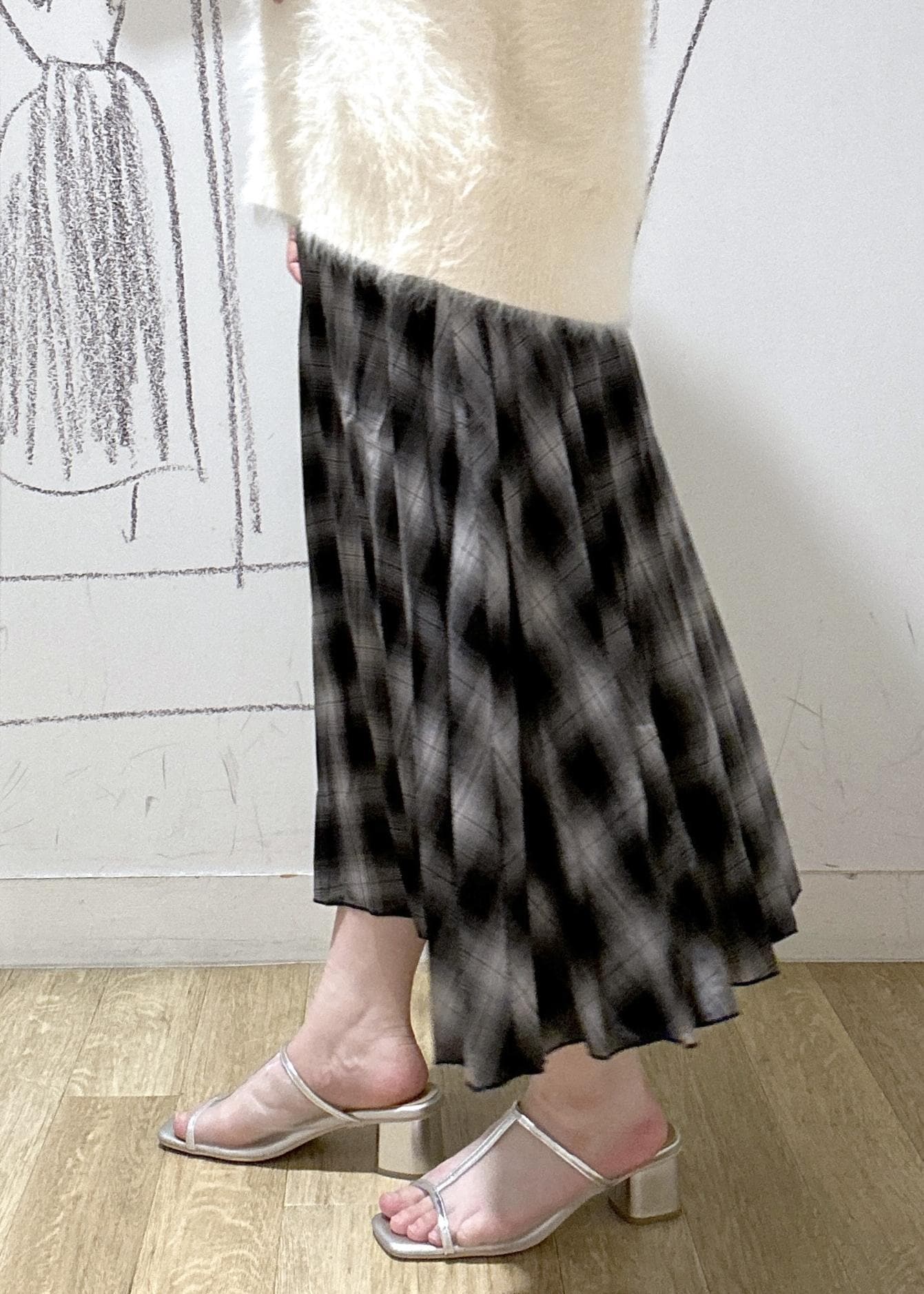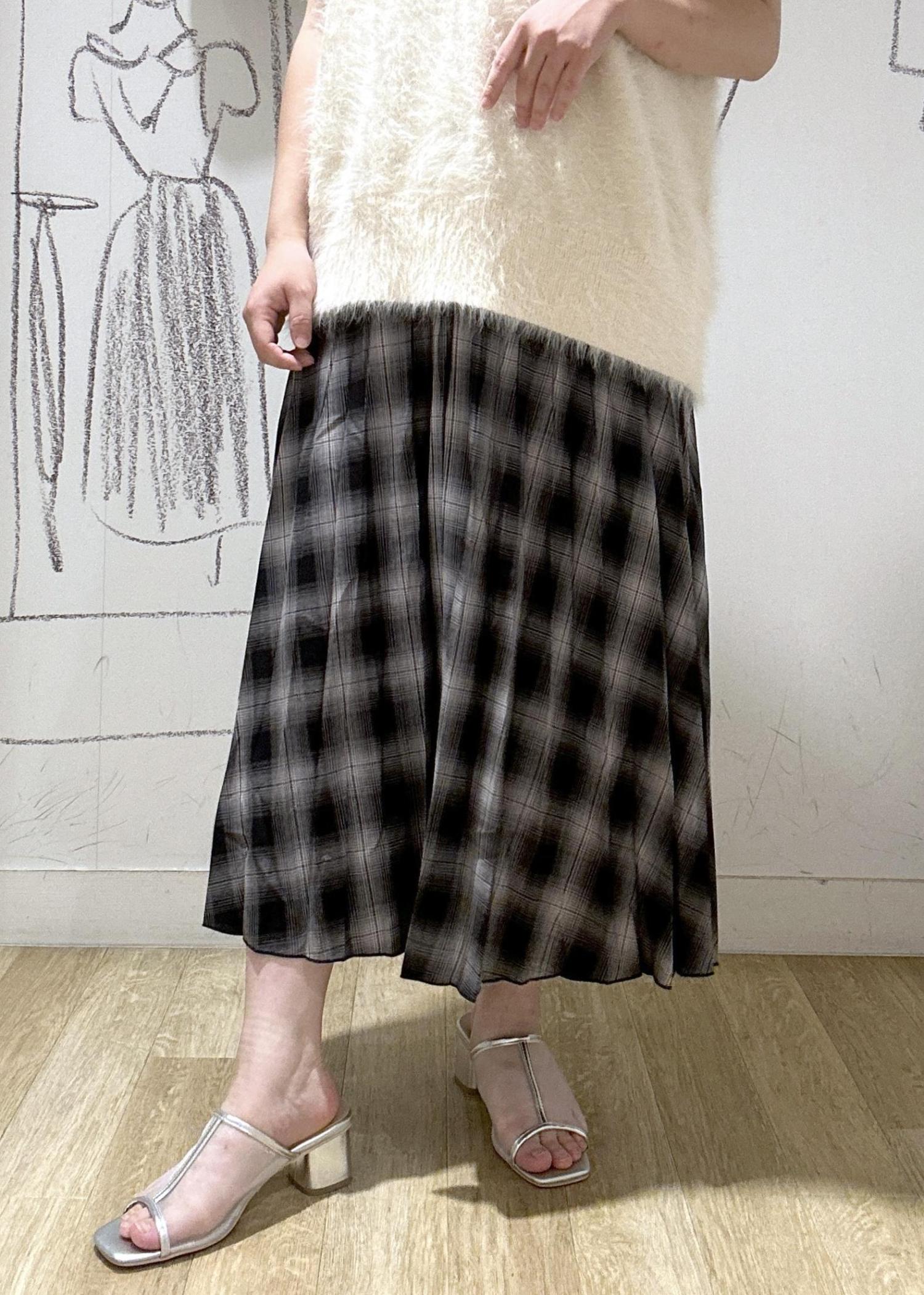 ROPÉ PICNICチェック柄プリーツスカートブラック系 / F¥4,994レビュー丈はくるぶしにかかるくらい。