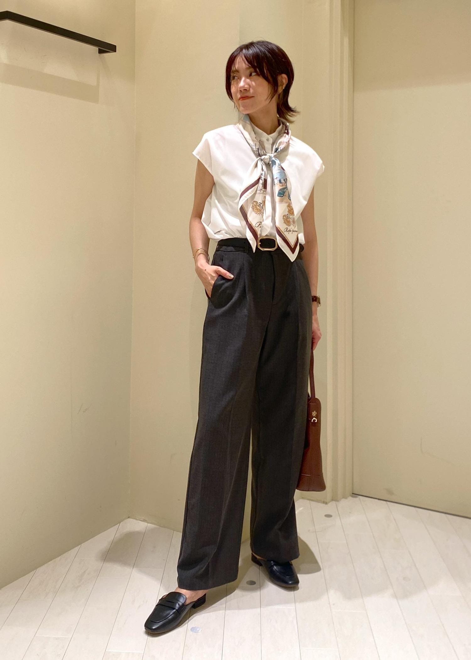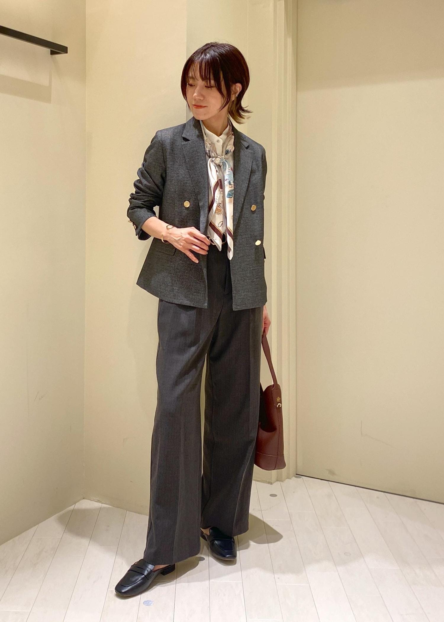 フォルムはスマートでスッキリした印象なので。ボリュームのあるボトムやロングボトムもバランス良くまとまります。 -