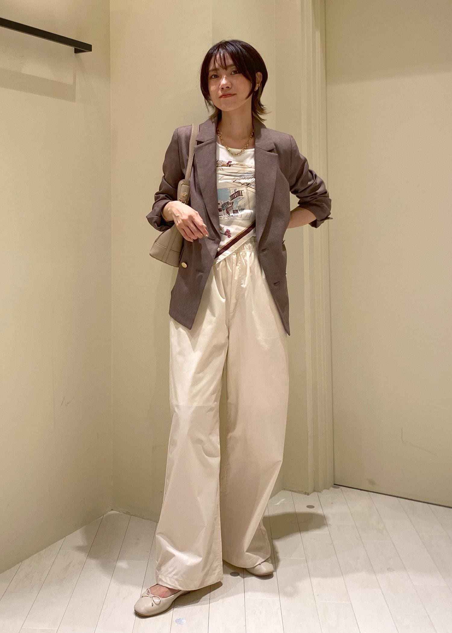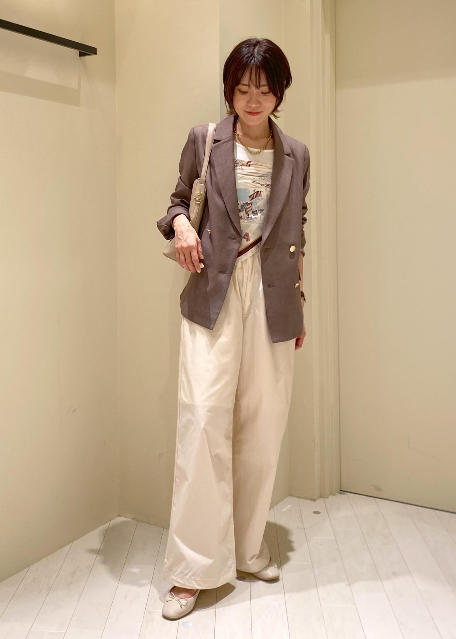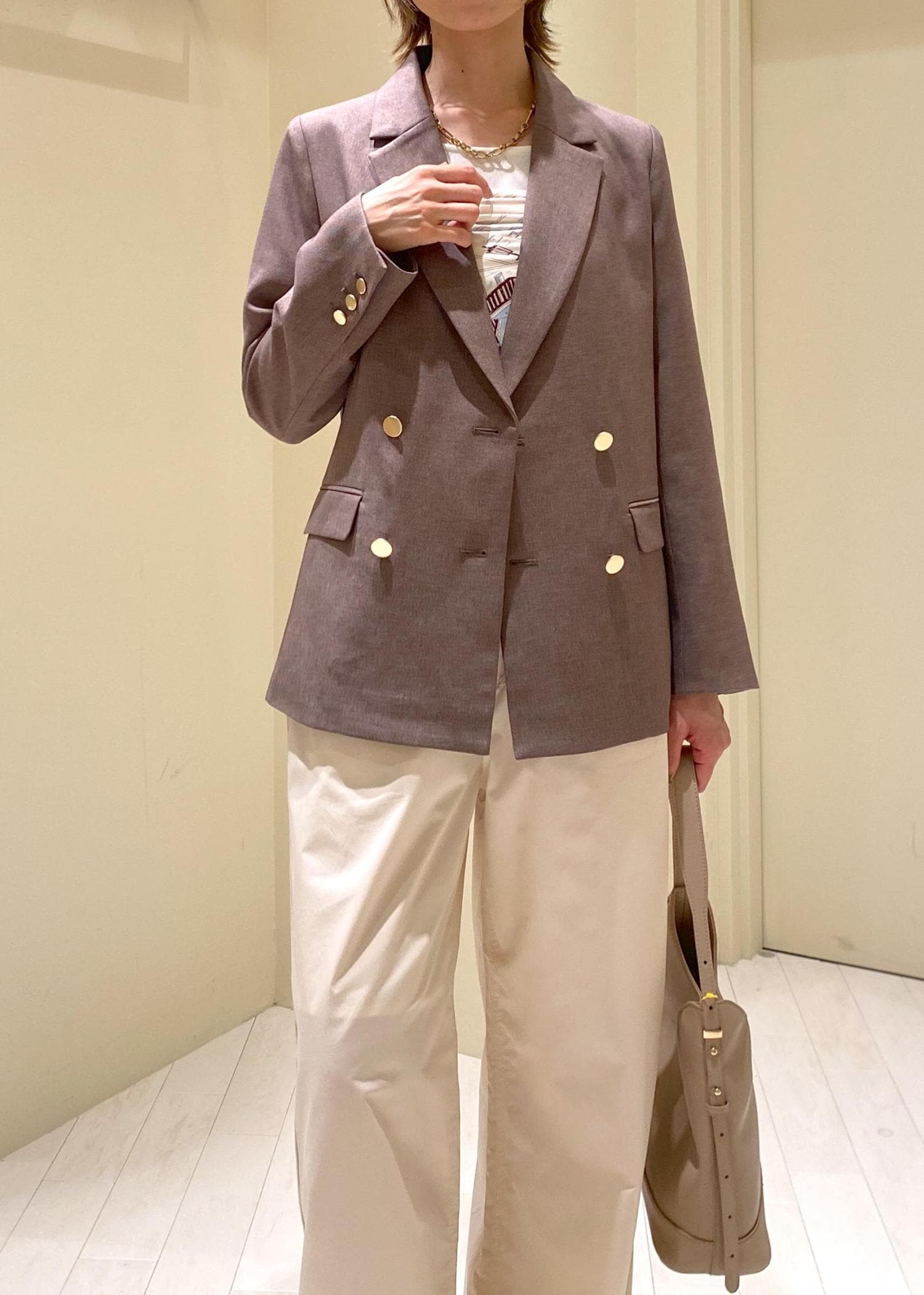 ROPÉ PICNICレディハンサムシリーズ ウールライク金ボタンジャケット(半裏地)/セットアップ・通勤対応ベージュ系 / L¥8,998レビュー金ボタンがスタイリングのアクセントになります。168㎝Mサイズ着用で、着丈にかかるぐらいでスッキリとスマートな印象で着こなせます。