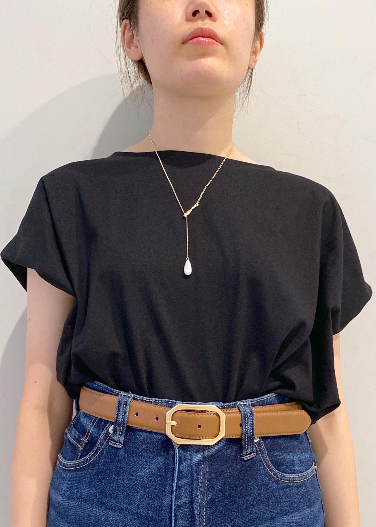 襟ぐりが広めなのでロングネックレスなどを合わせるとさらにかわいいと思います。