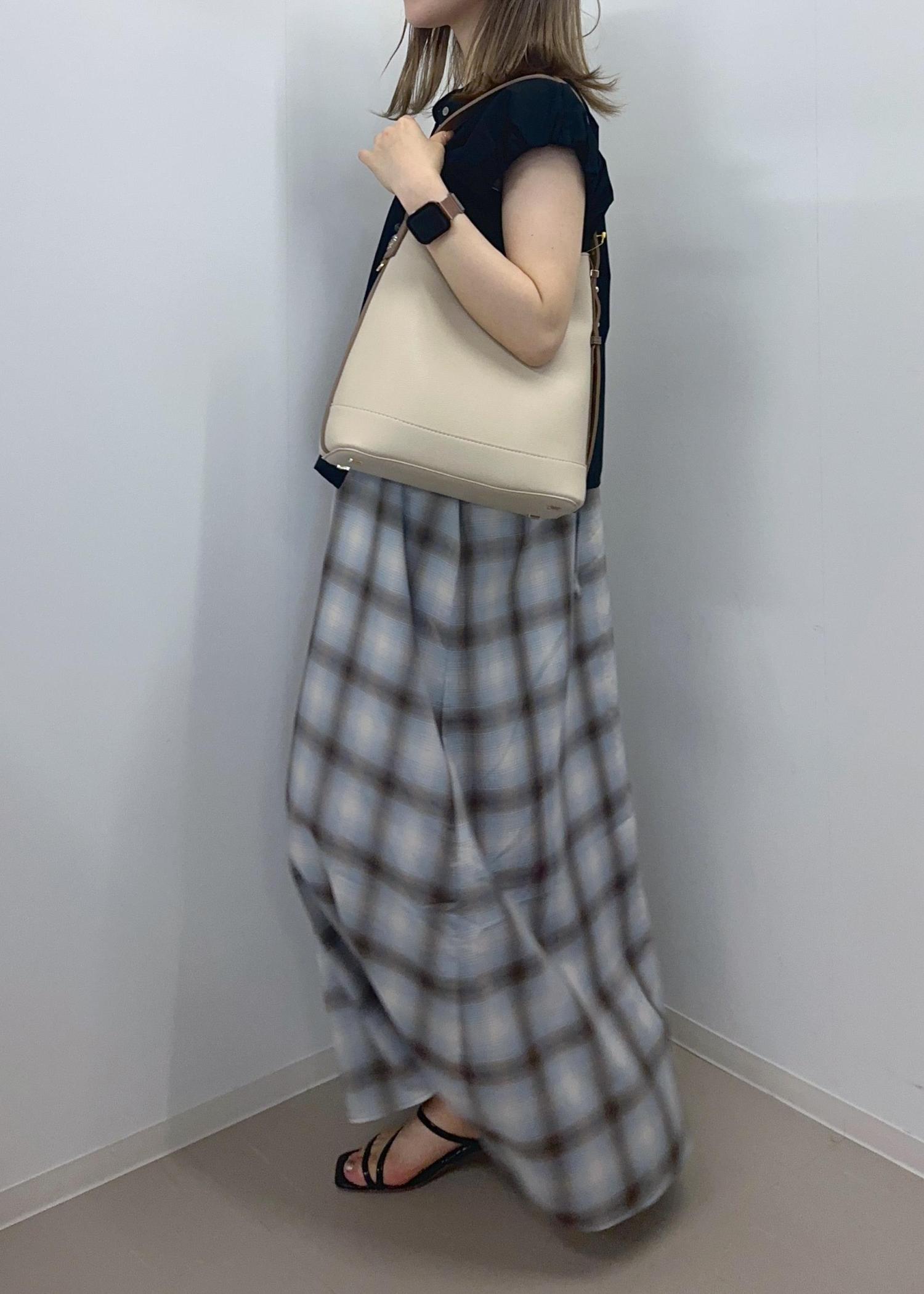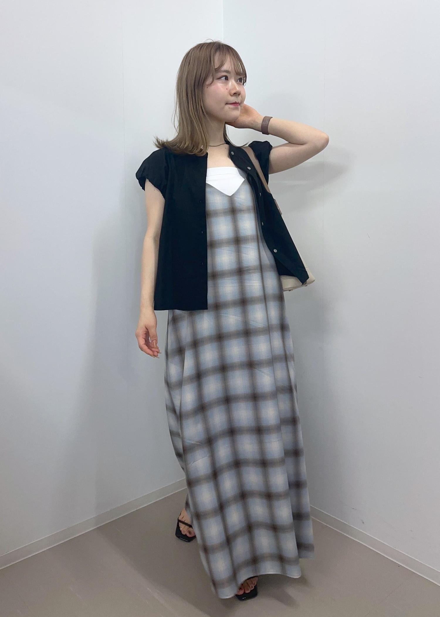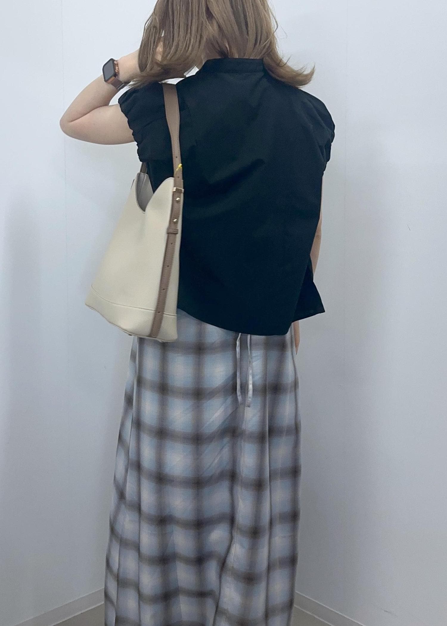 ブラウスを羽織り、きれいめ雑貨でまとめることで、きれいめ感ももたせたコーディネートに仕上げました。