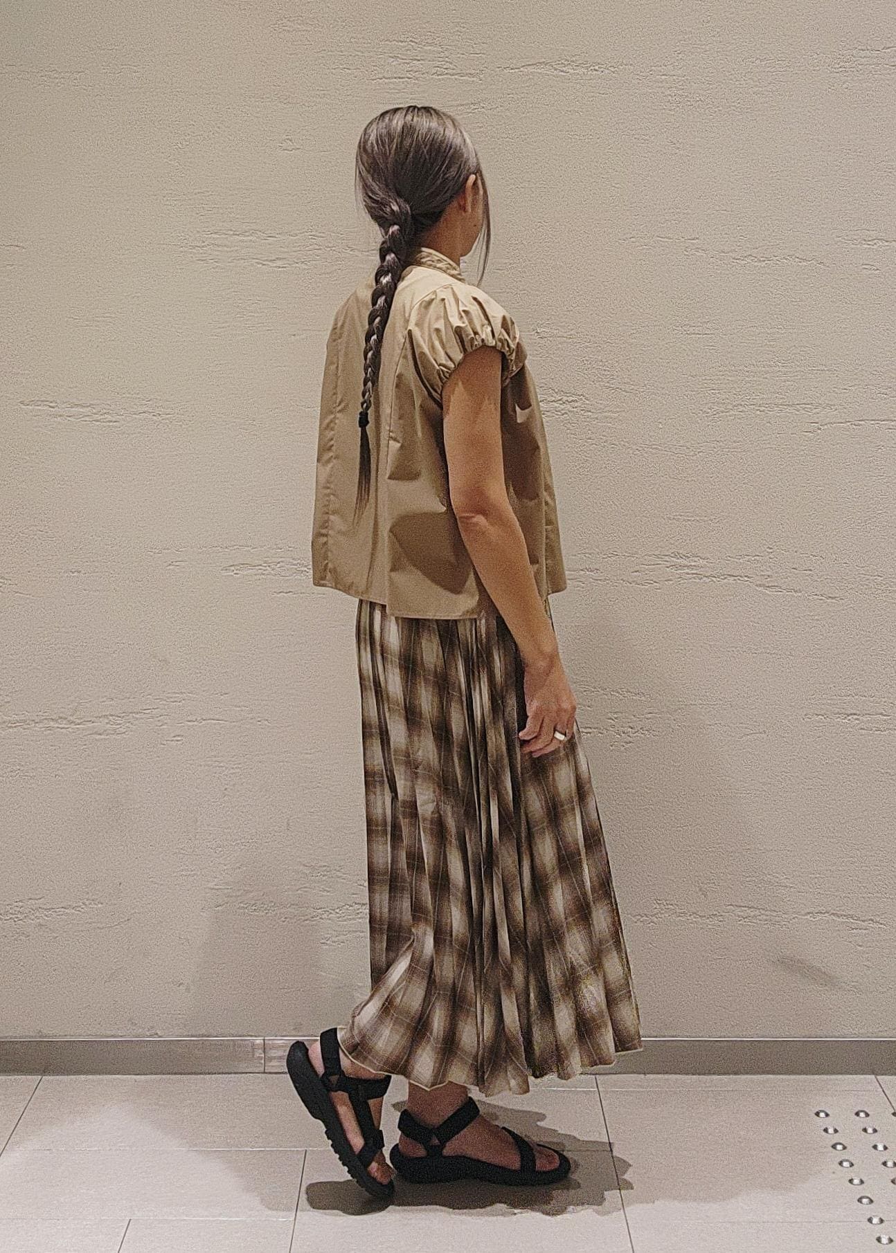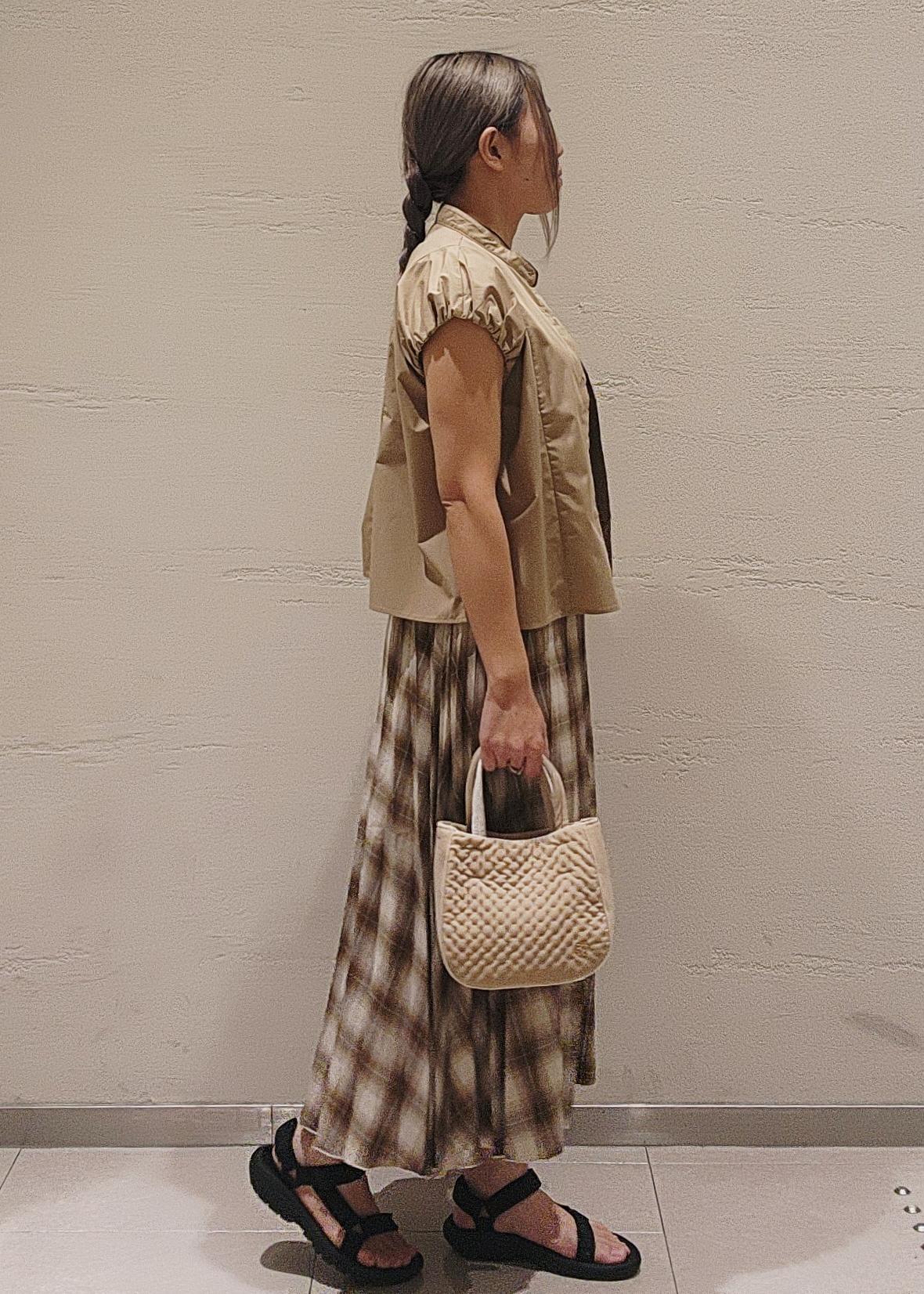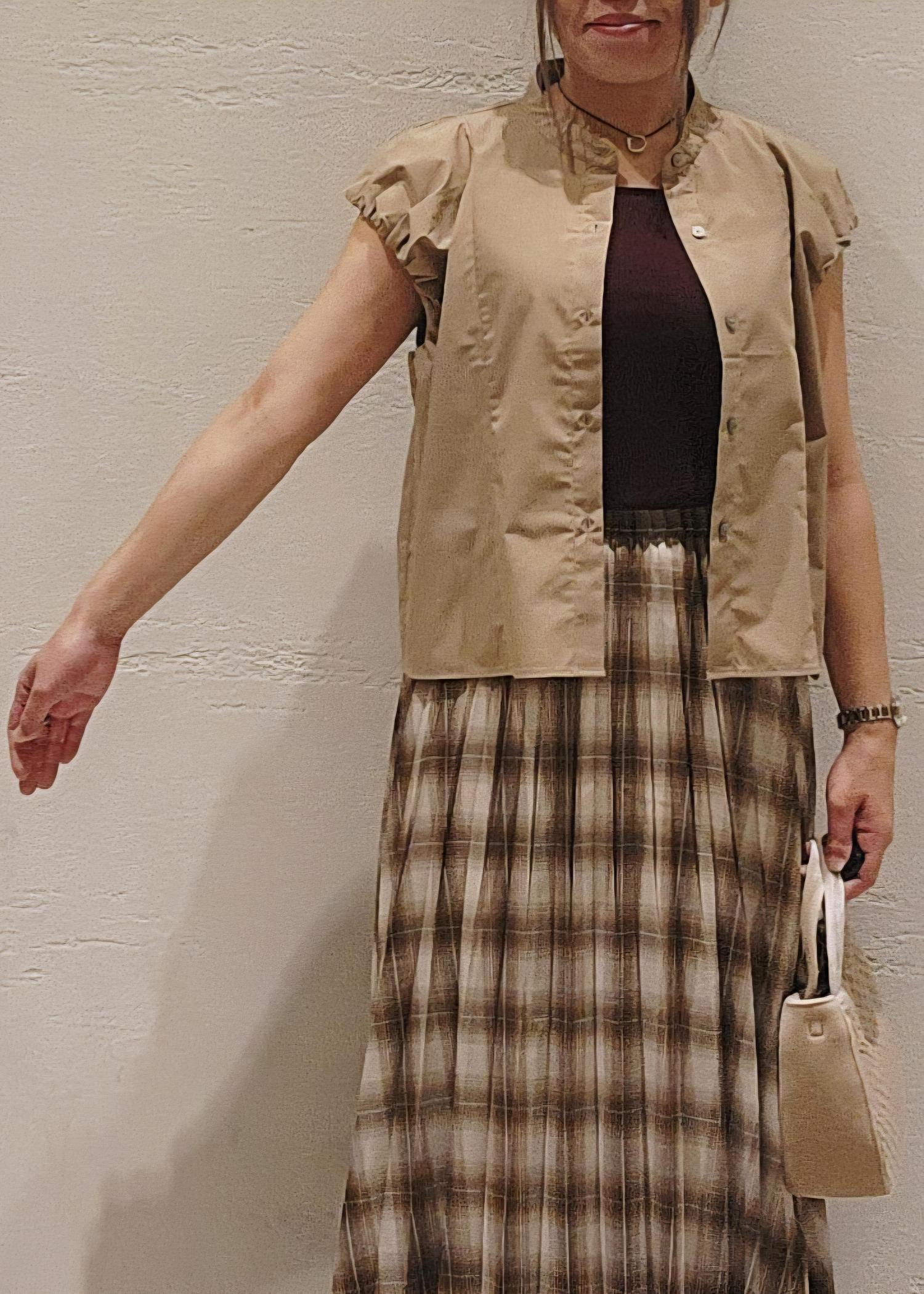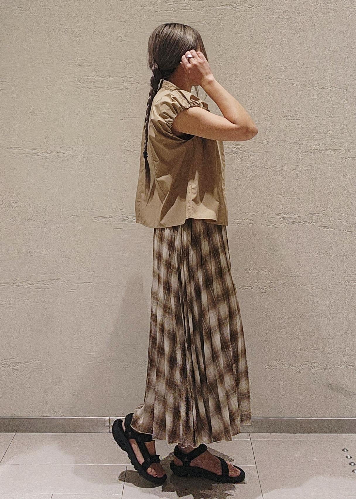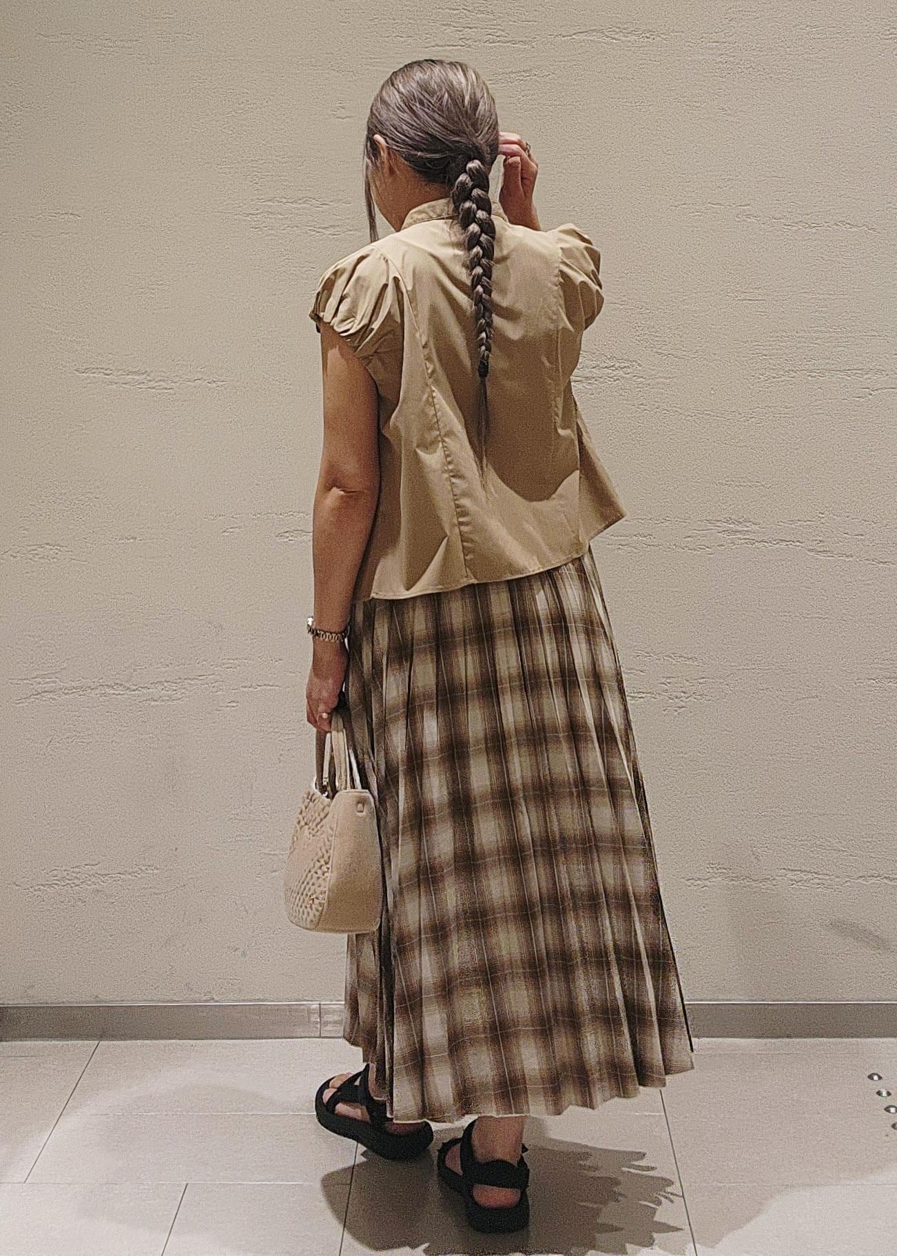 ブラウス、スカート共に薄手なので、夏も涼しく快適な着心地で今から先まで長く着られるコーディネートです。