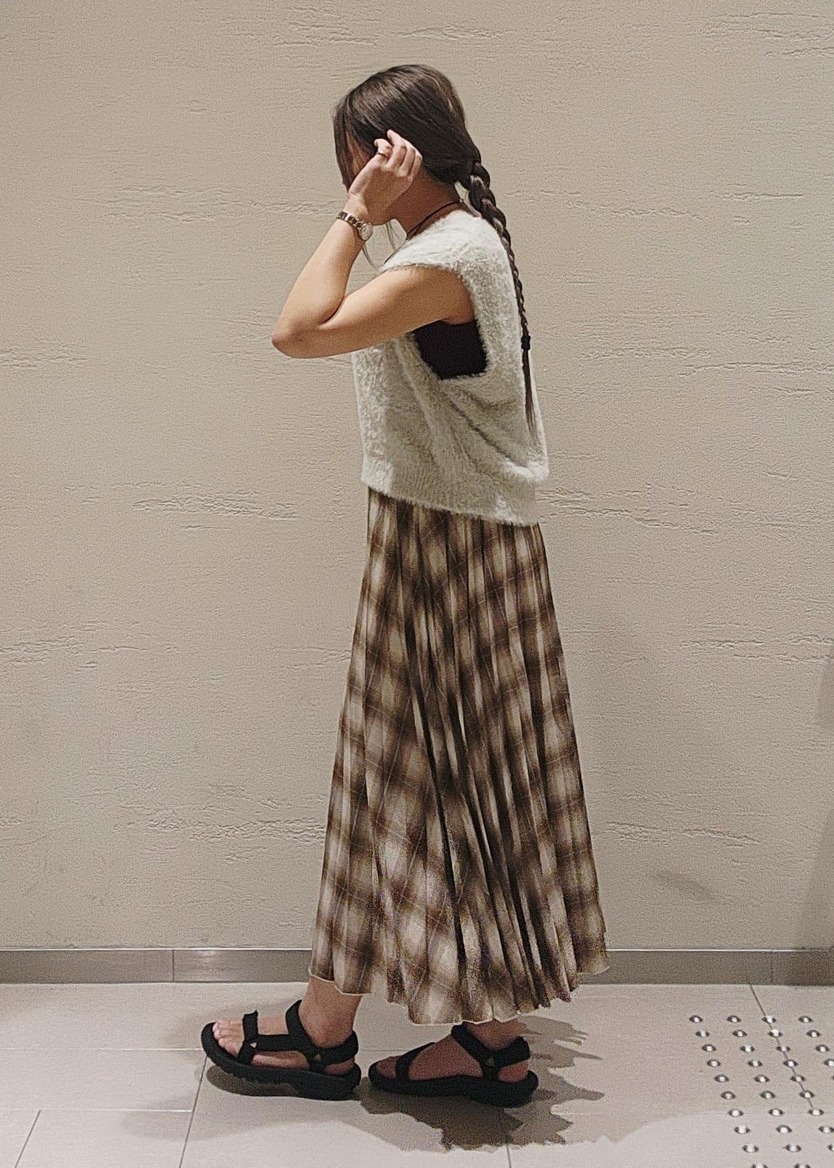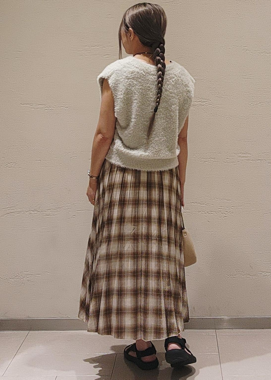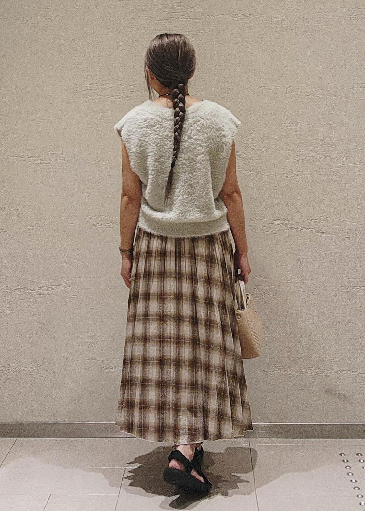 ROPÉ PICNICチェック柄プリーツスカートキャメル / F¥4,994レビュー・ウエスト総ゴムで楽ちんな穿き心地。