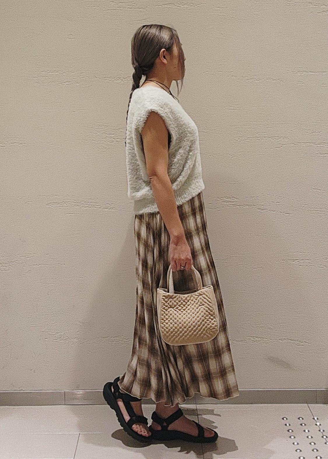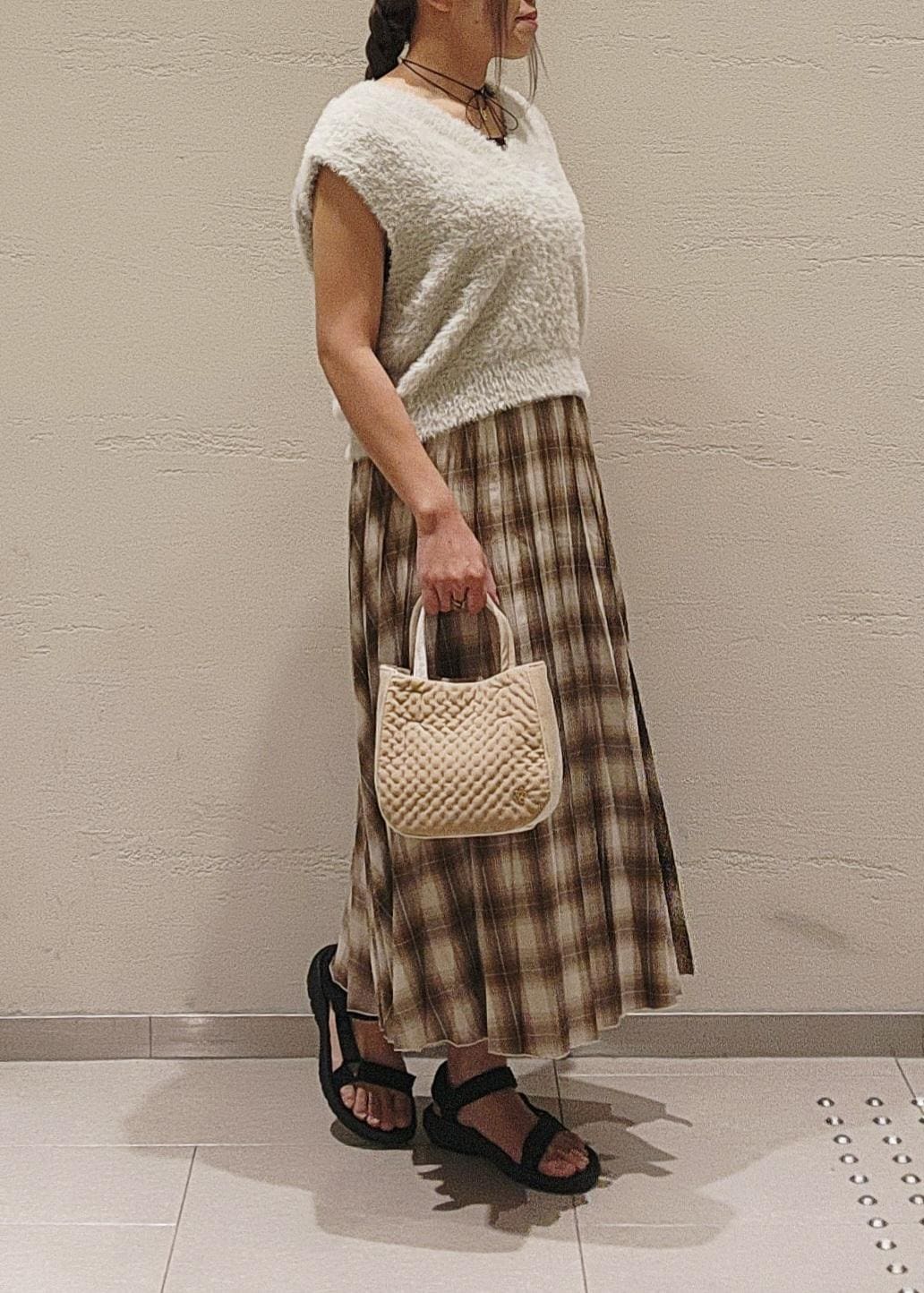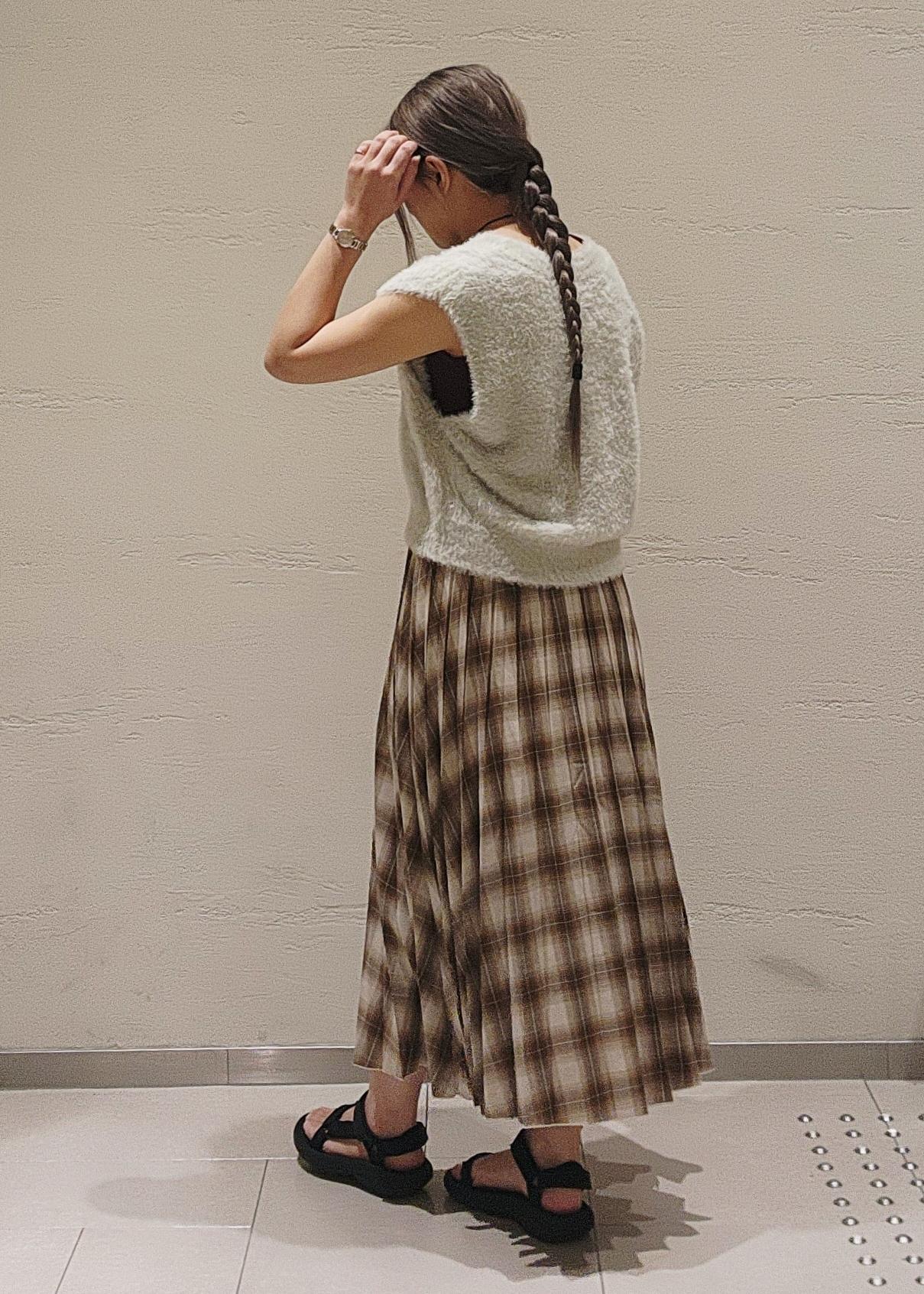 ROPÉ PICNICチェック柄プリーツスカートキャメル / F¥4,994レビュー・ウエスト総ゴムで楽ちんな穿き心地。