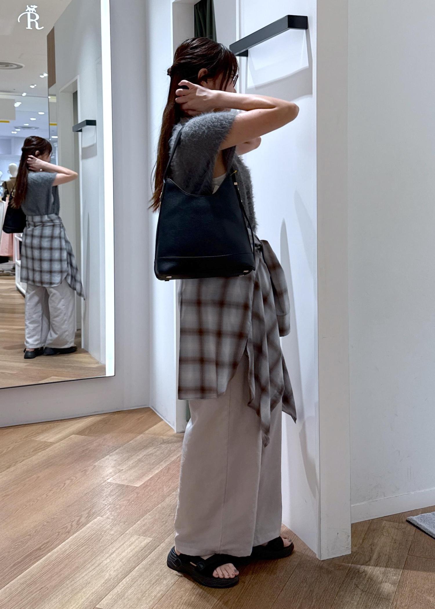 小物は黒で合わせ、統一感を出しているのがポイントです。