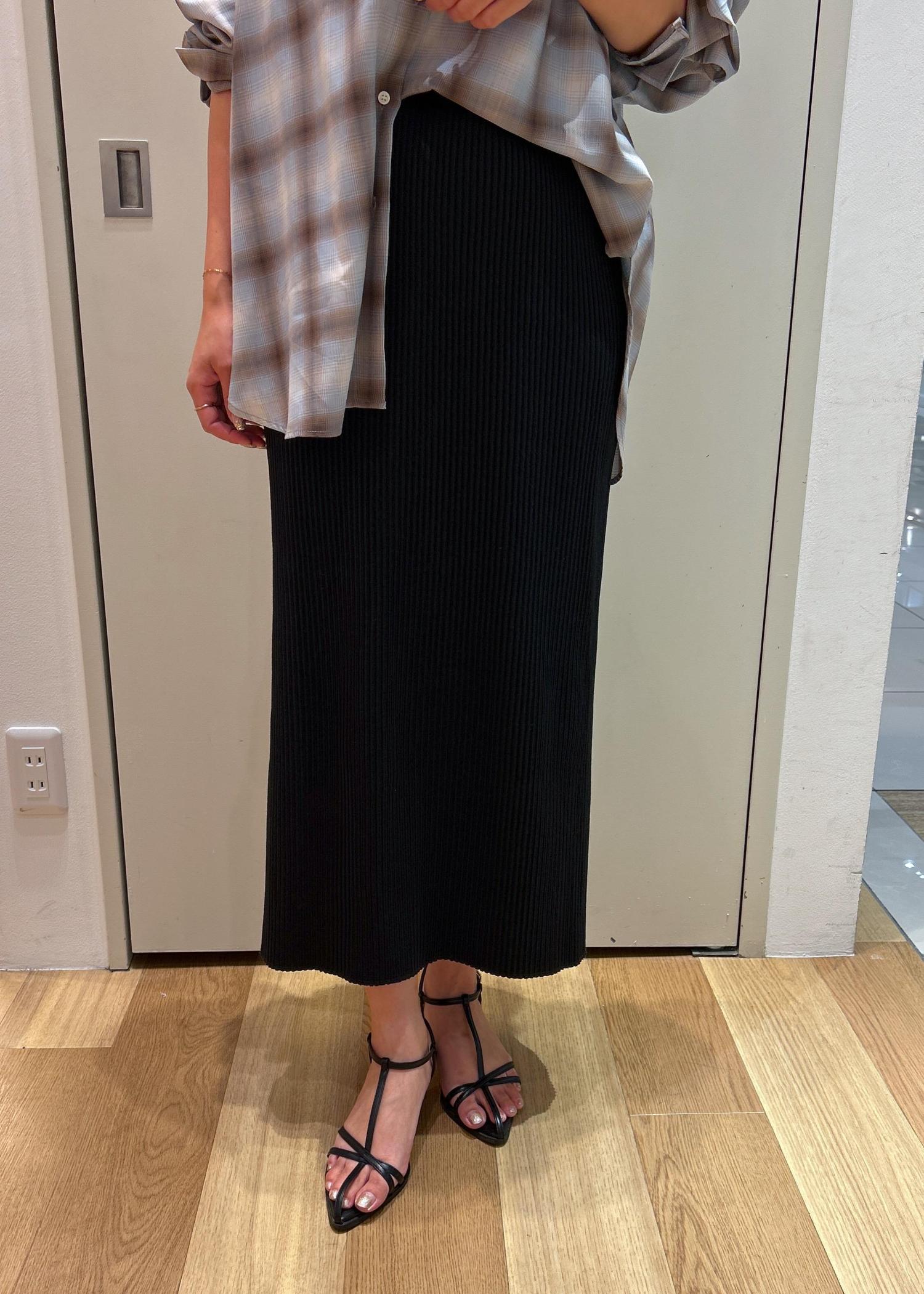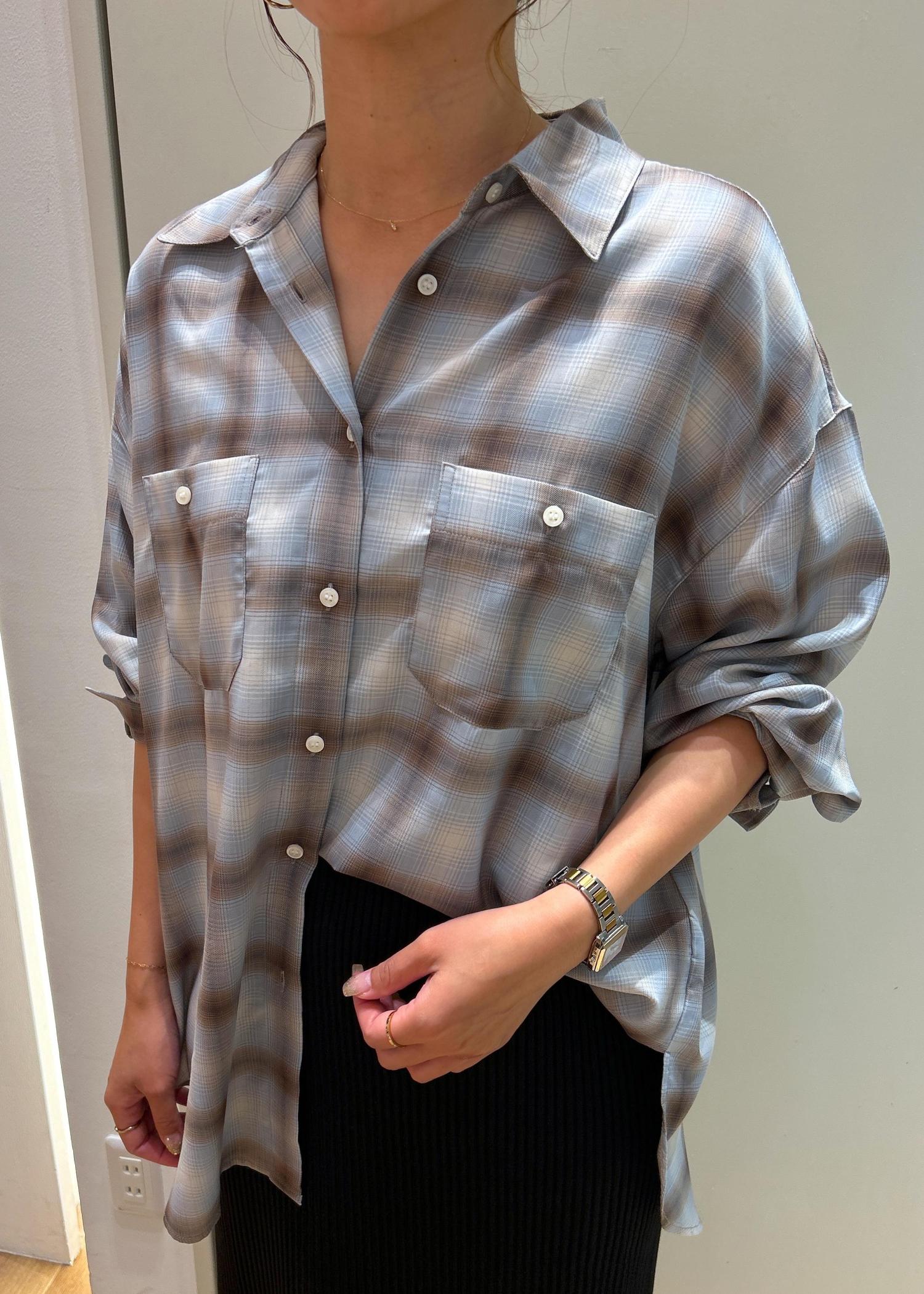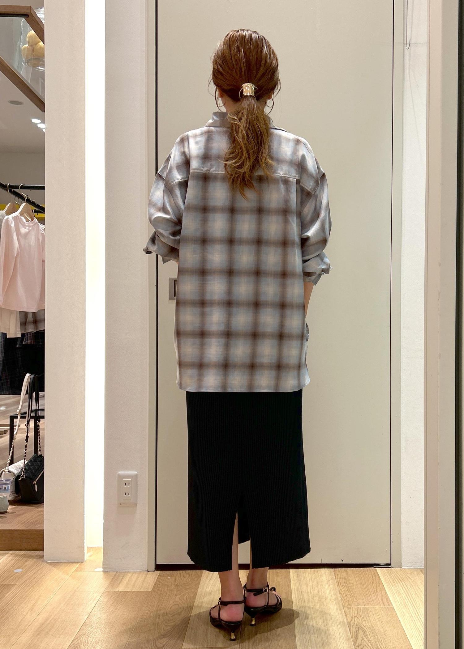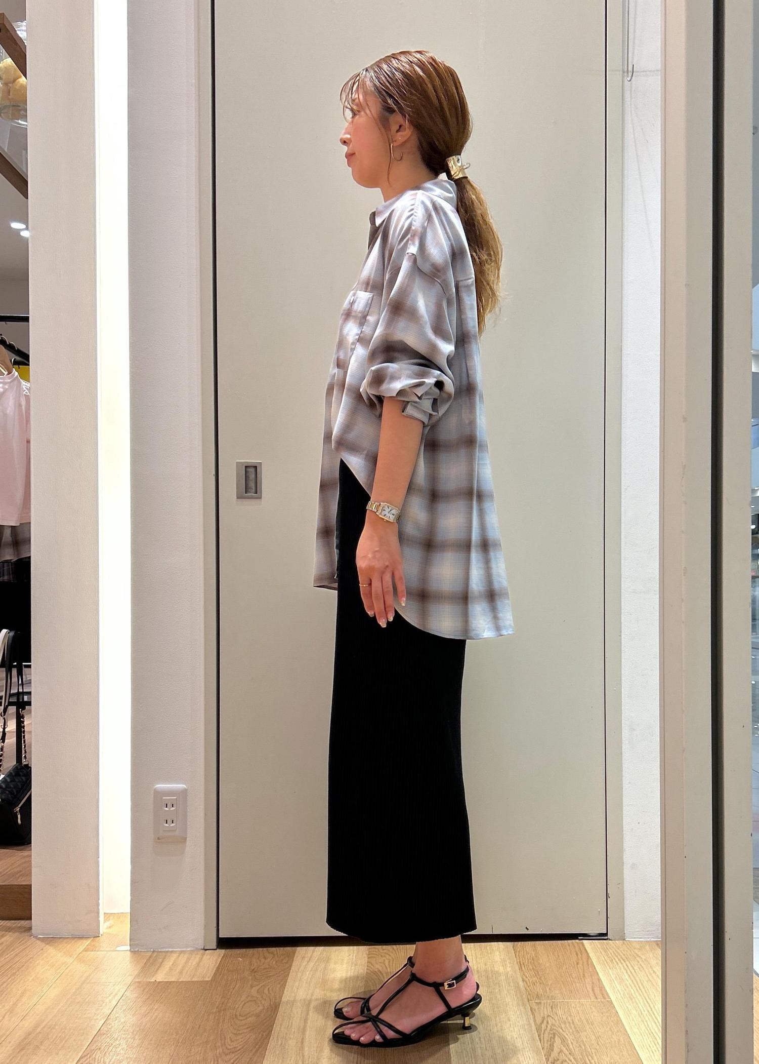 落ち感のあるチェックシャツにタイトスカートを合わせてキレイ目感あるコーディネートにしました。