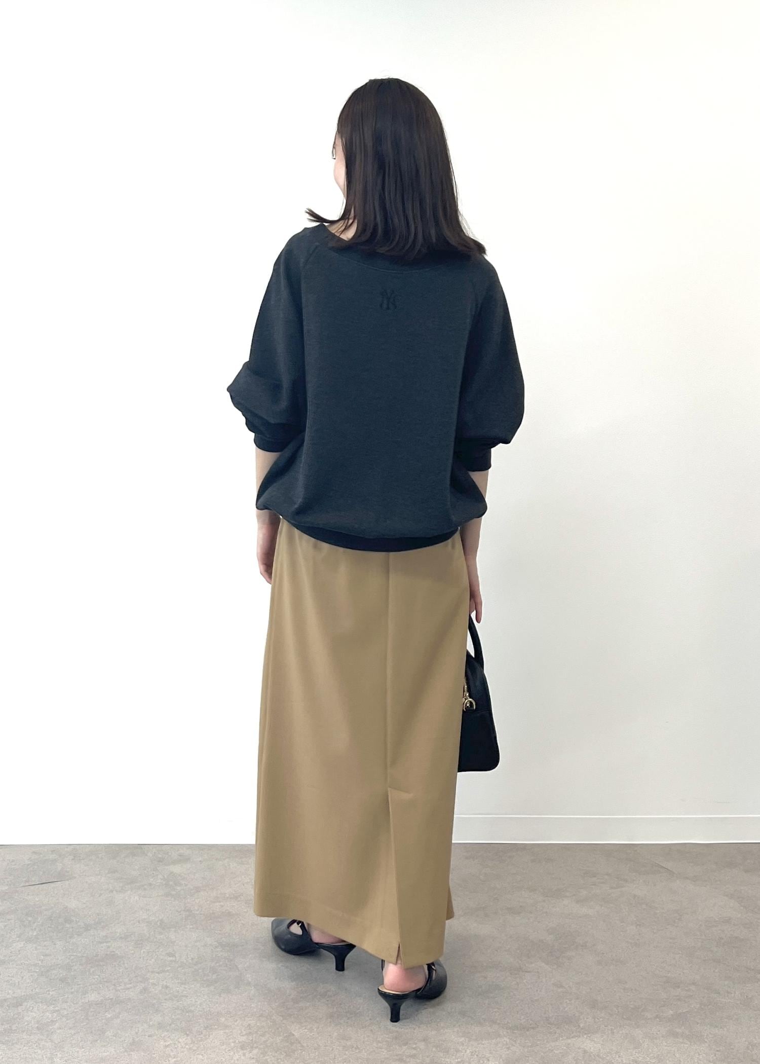 袖口と裾がリブなので、着丈を自由にアレンジできます。裾を伸ばすとヒップにかかるくらいの着丈でした。 -