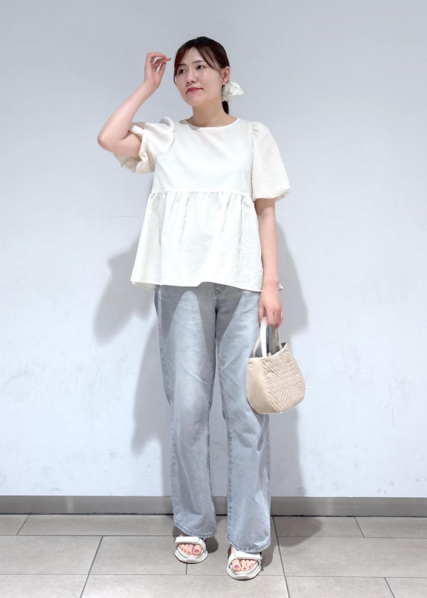 ROPÉ PICNICバルーンペプラムブラウスキナリ / 38¥4,499レビューお袖のボリュームがフェミニンなブラウスです。腕周りは締め付けもなく、二の腕周りをカバーしてくれます。ヒップを覆う丈感で安心感があります。ポコポコした肌離れの良い生地感で肌離れが良いです。