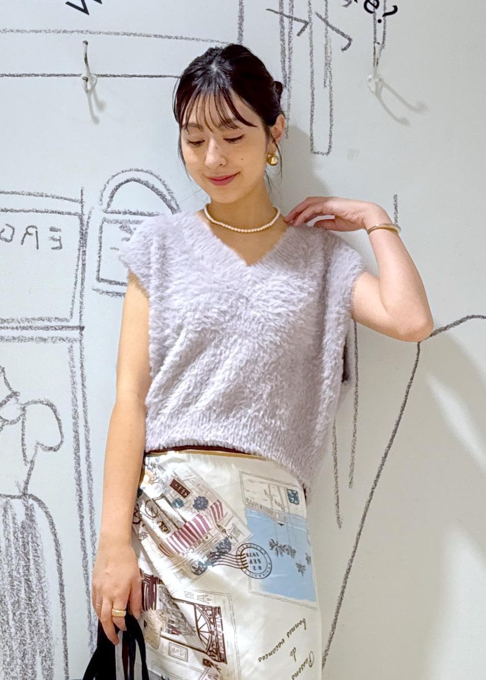 ROPÉ PICNICショートフェザーニットベストパープル系 / F¥3,993レビュー深すぎるVネックではないので一枚着としても着られます。直接肌に触れてもチクチク感がないのも嬉しいところ。ショート丈なのでどんなボトムスとも好相性です。