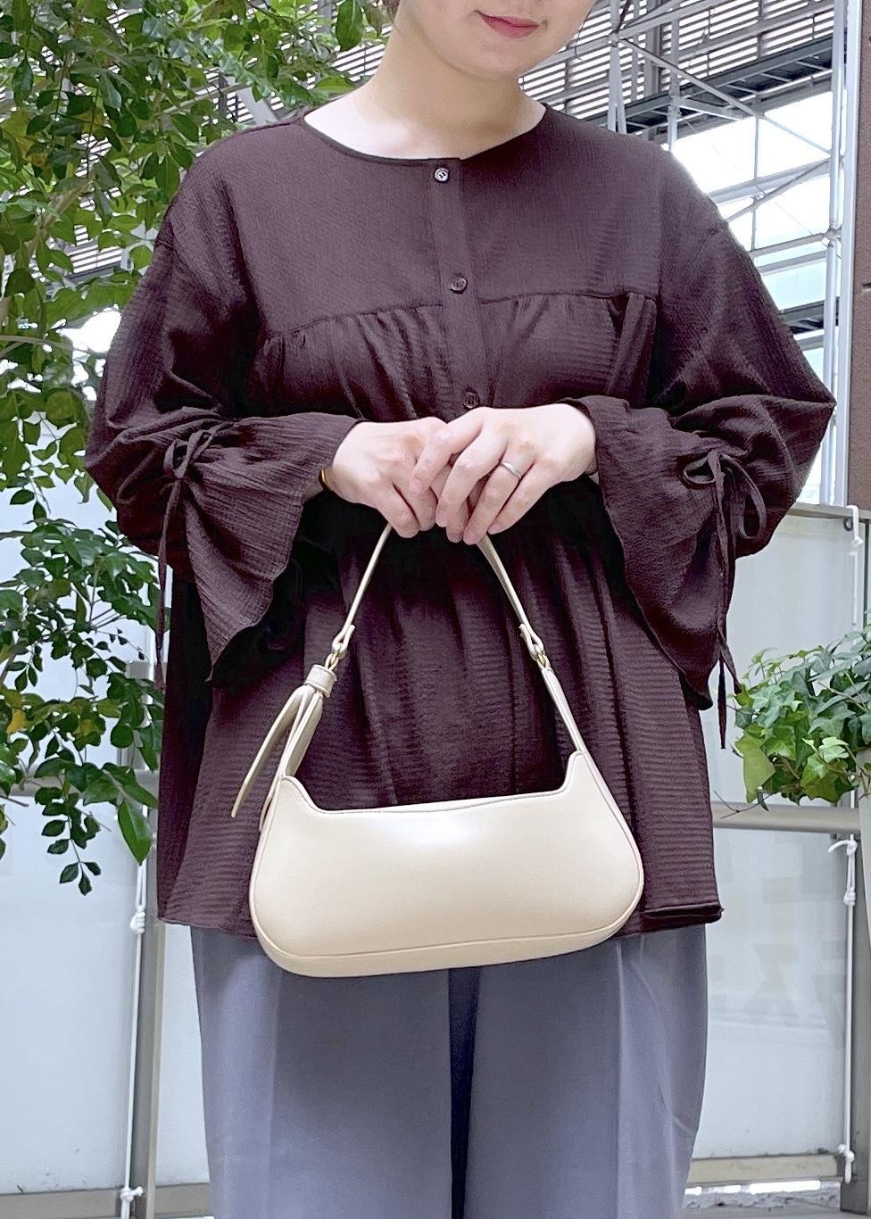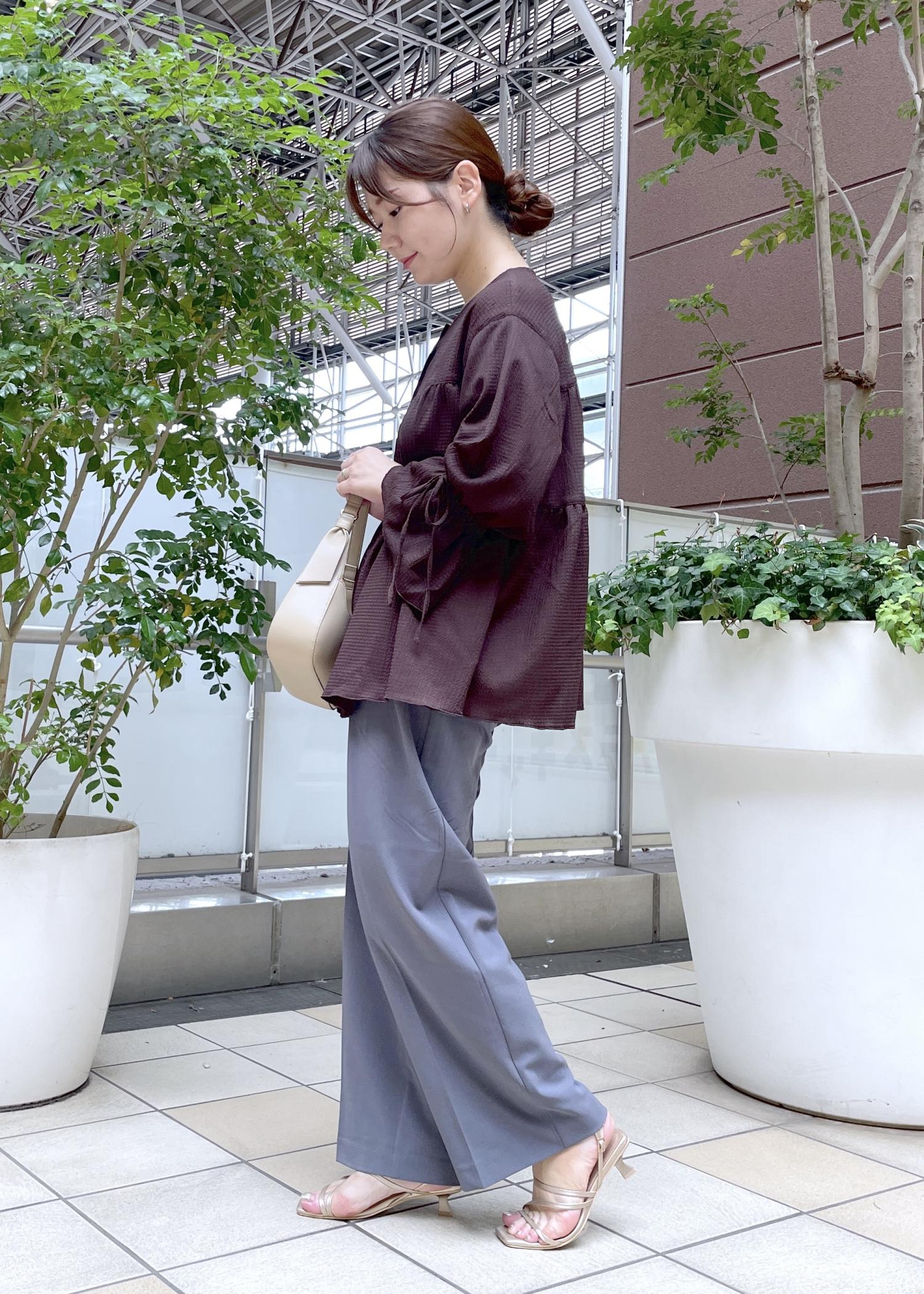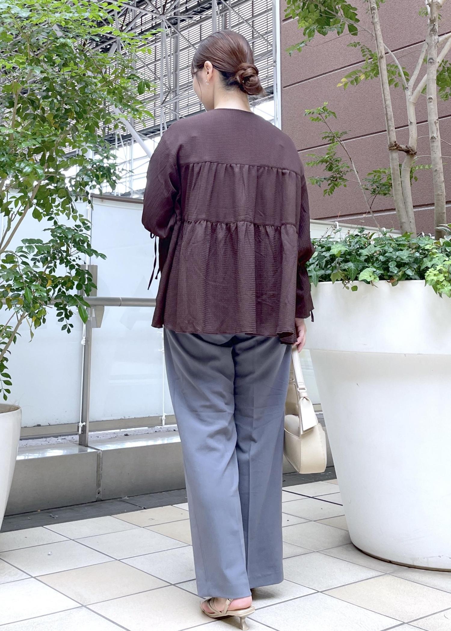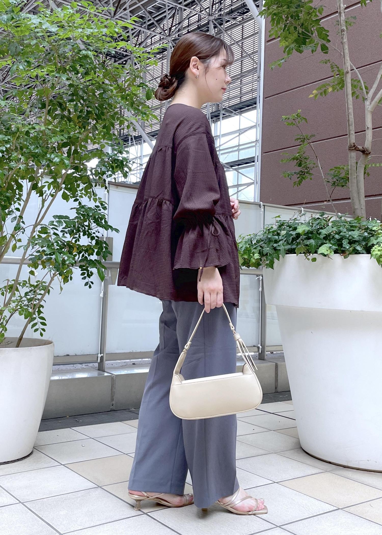 ティアードのデザインでフェミニンな印象ですが、ブラウンのカラーだと甘さも控えられてお使いしやすくオススメです◎