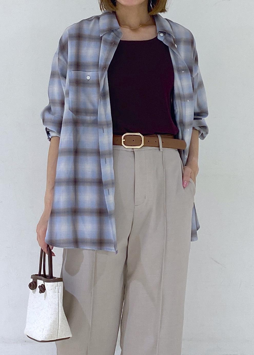 夏から秋に向けてロングシーズン着られるスタイリングです。
