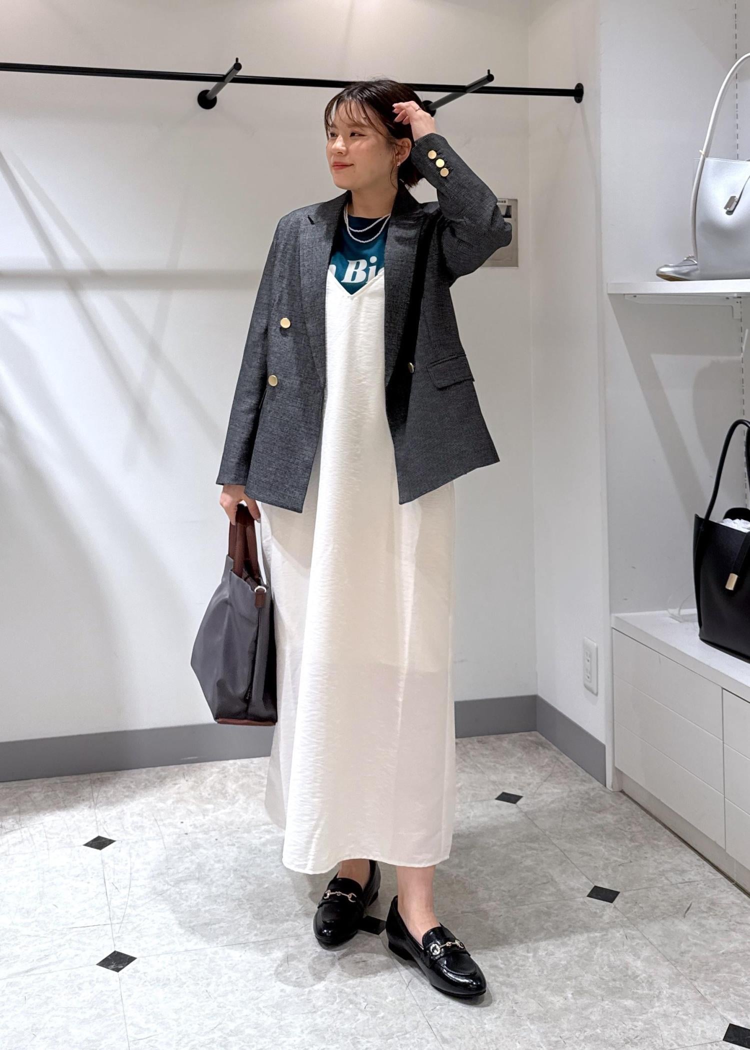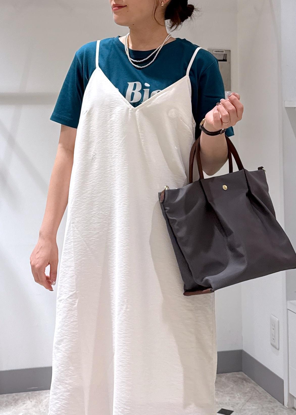 Tシャツ+キャミワンピースの少しカジュアルな合わせも