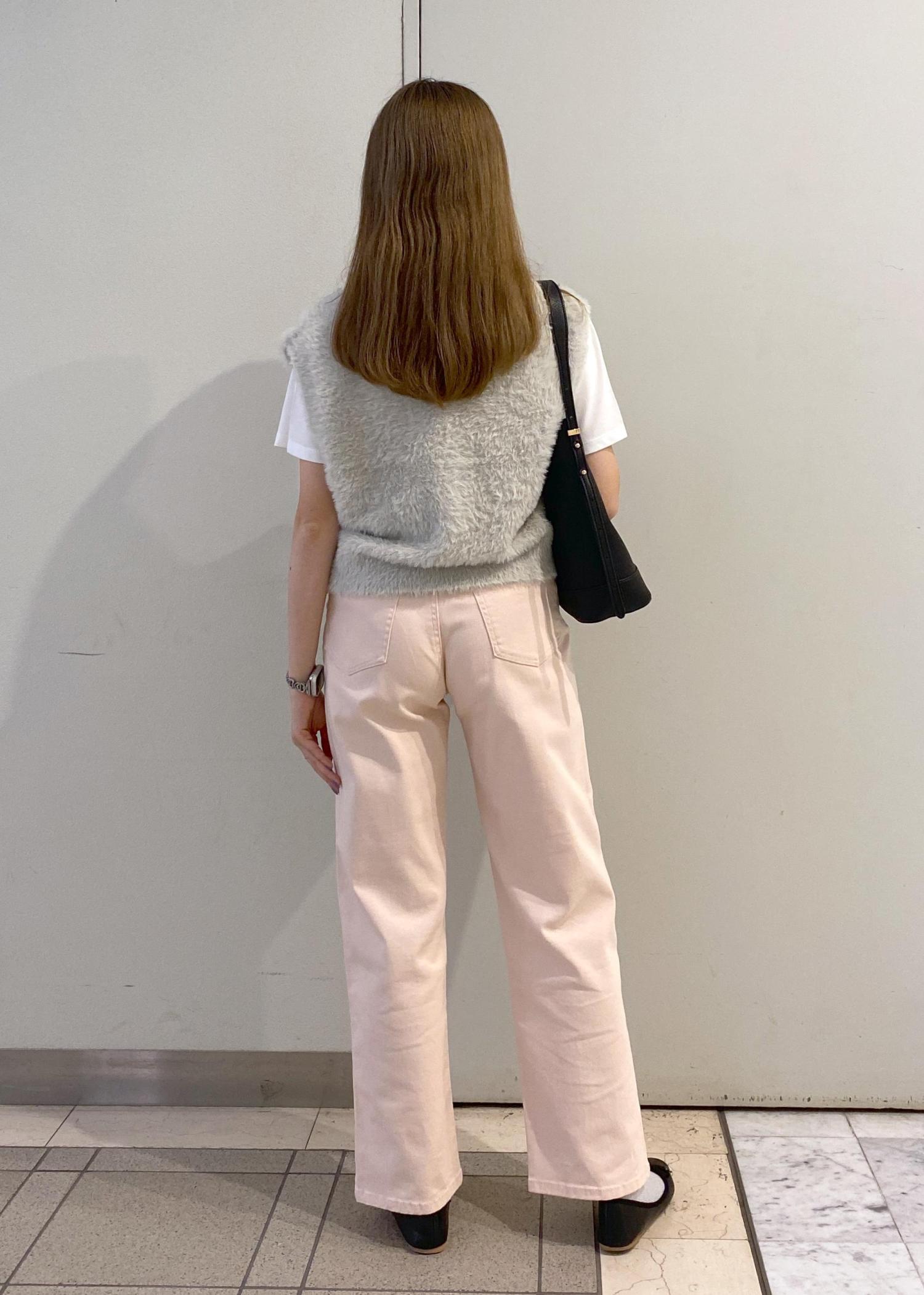ショート丈のベストと【ウエスト革命デニム】シリーズの組み合わせでスタイルアップ効果もあるコーディネートです♪