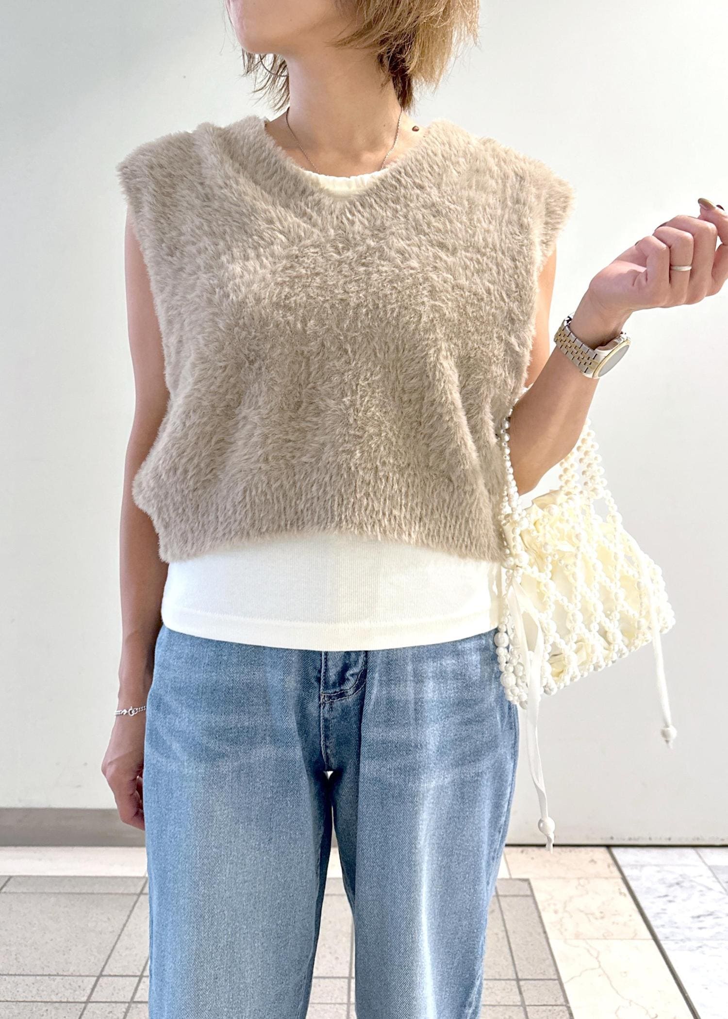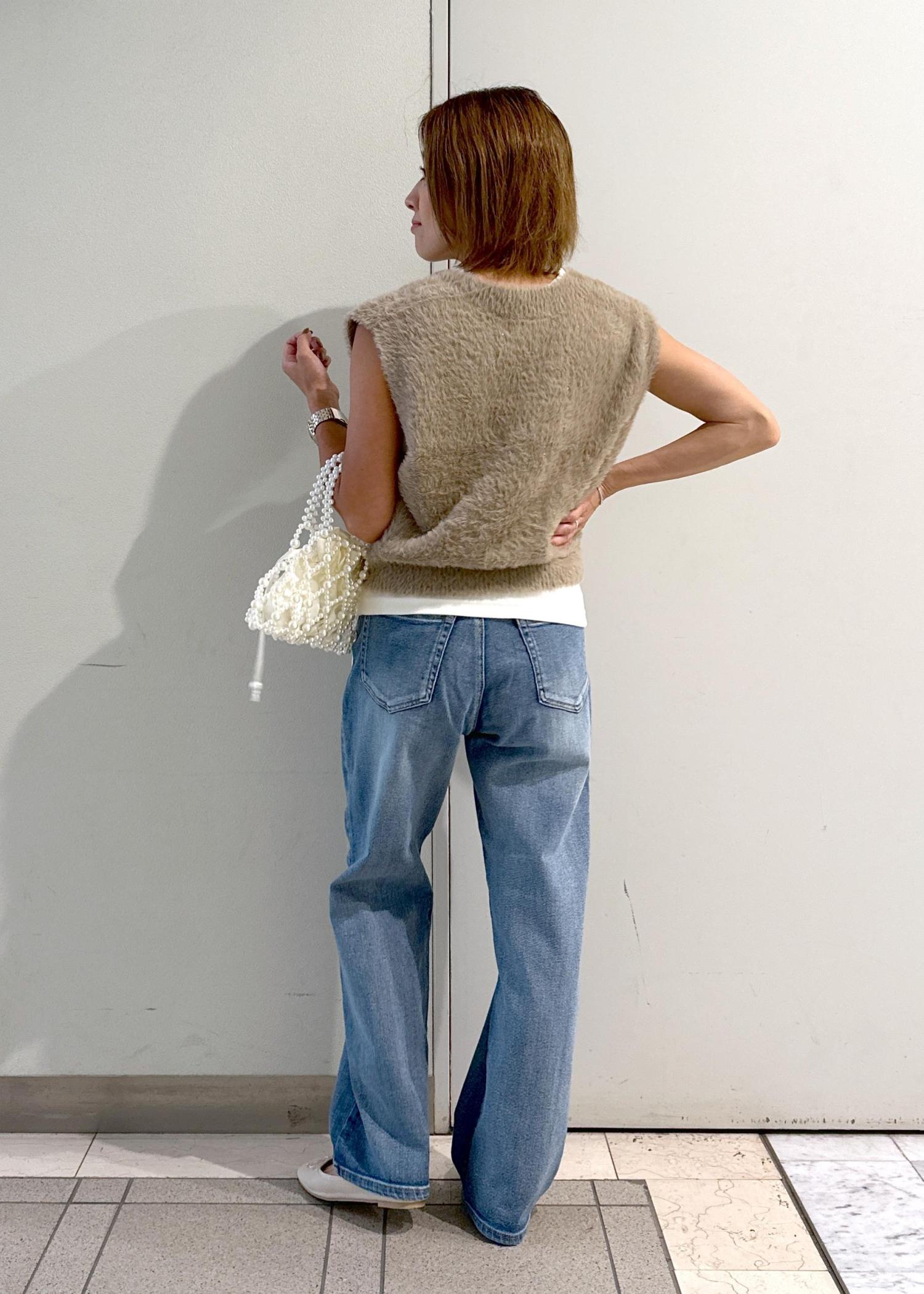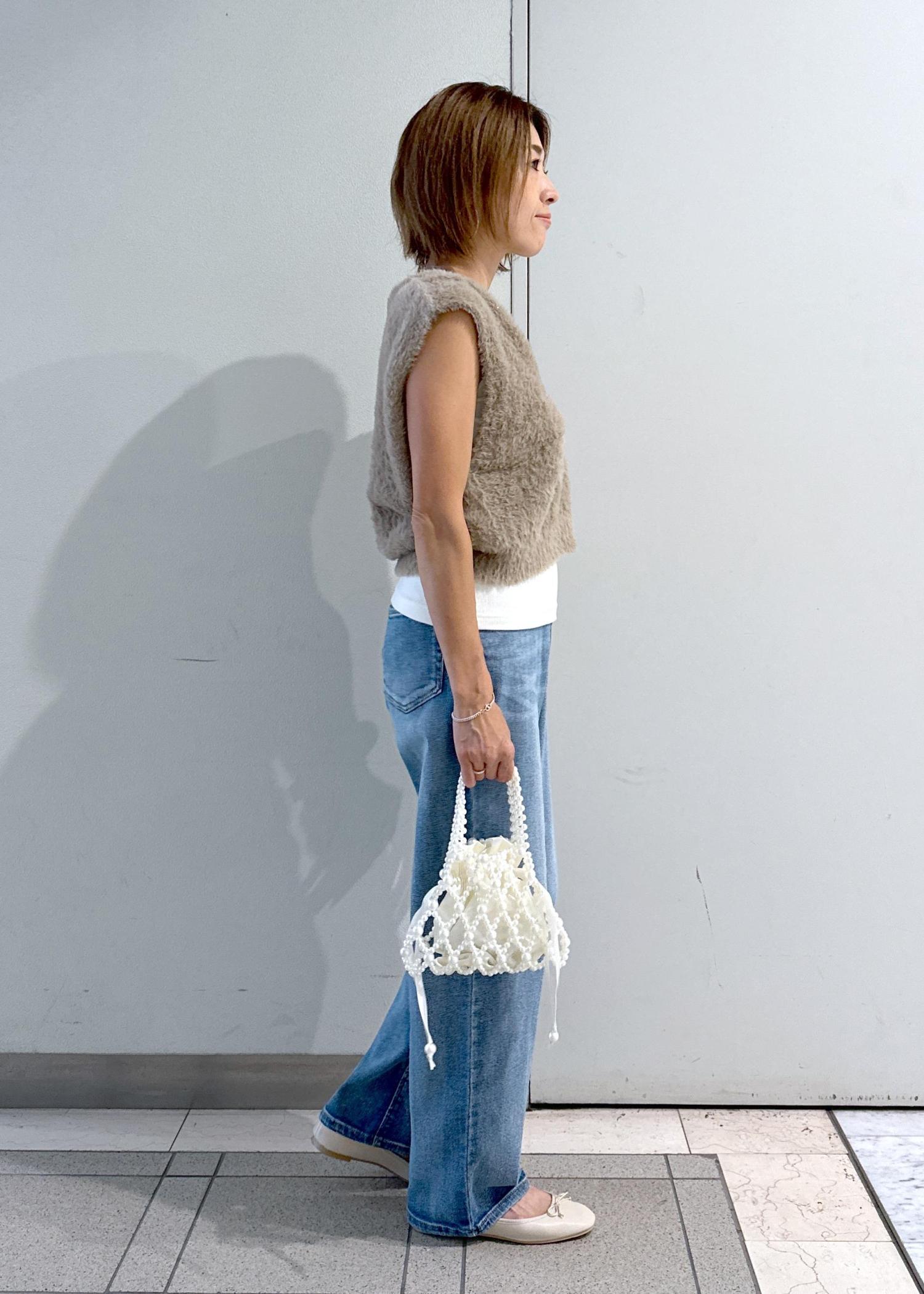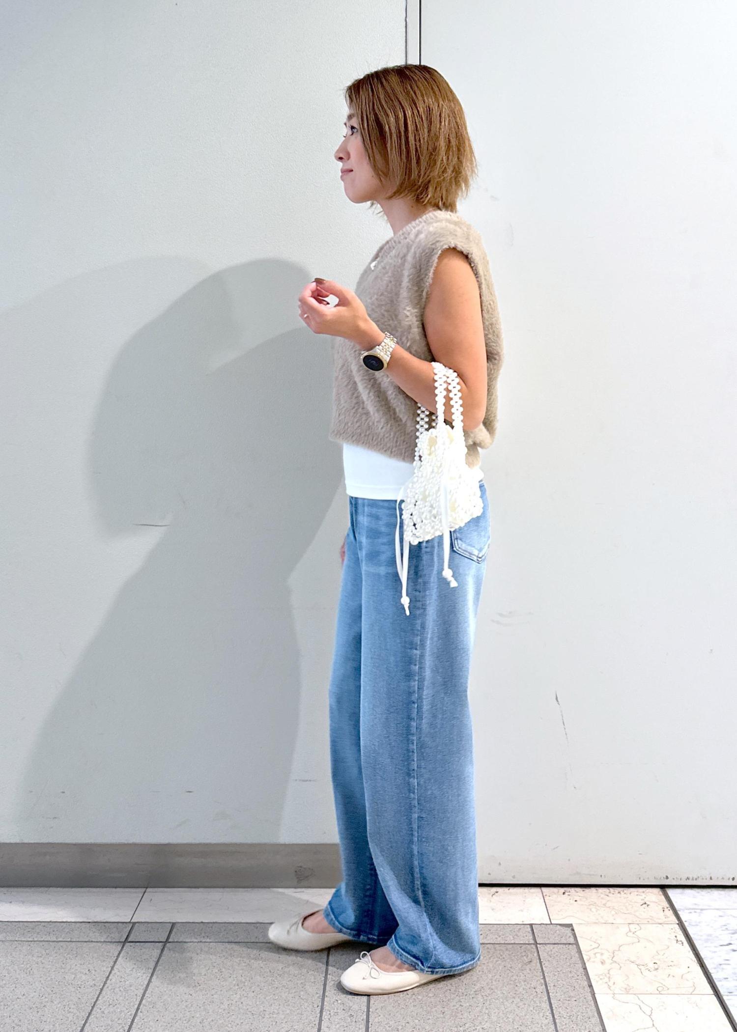 秋を先取り出来るフェザーベストを取り入れたお出かけコーディネートです。