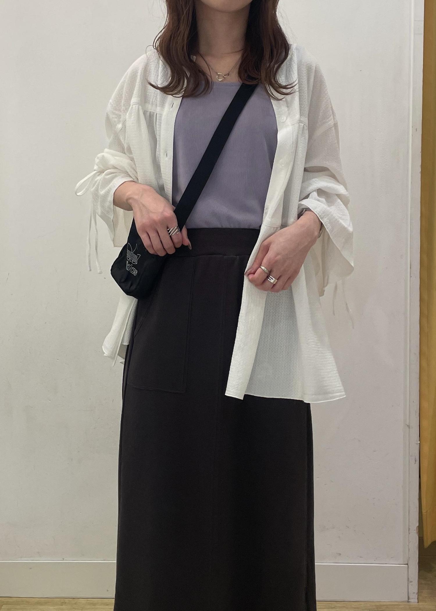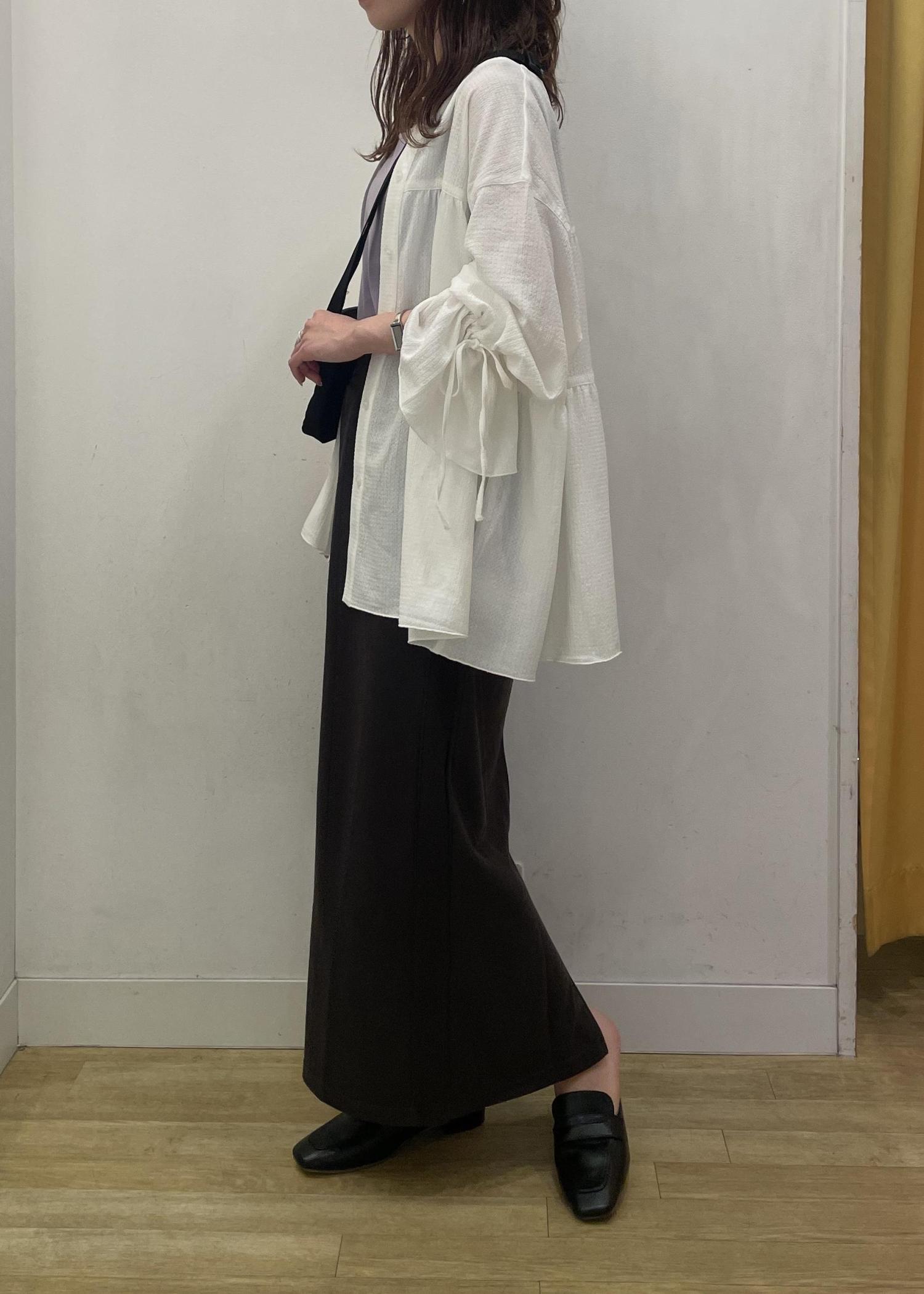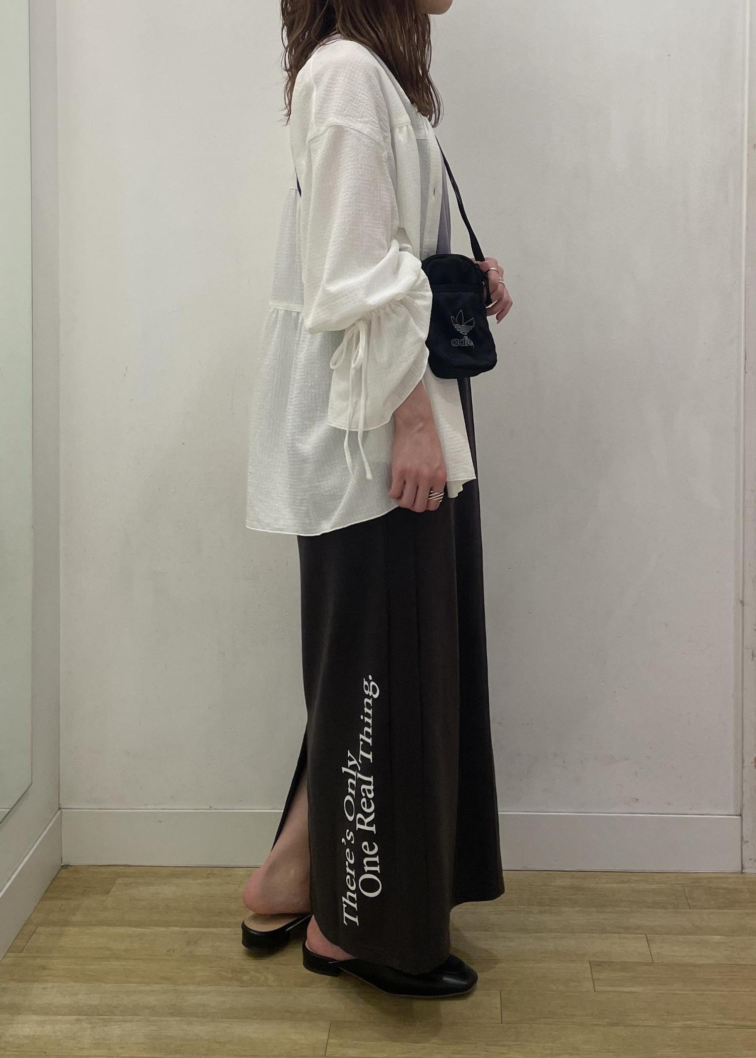 ゆったりとしたデザインなのでタイトなボトムを合わせるとメリハリのあるコーディネートに♡