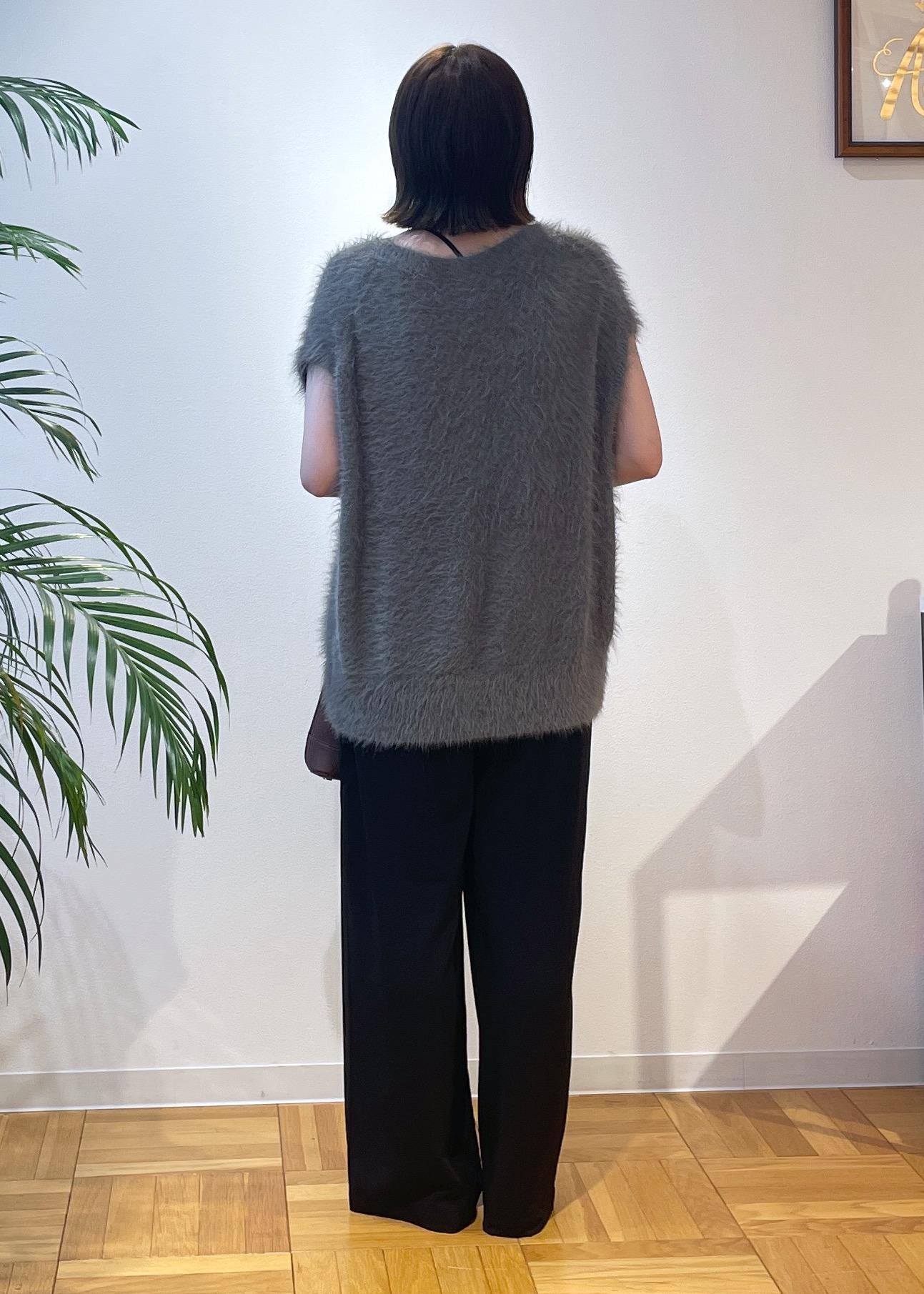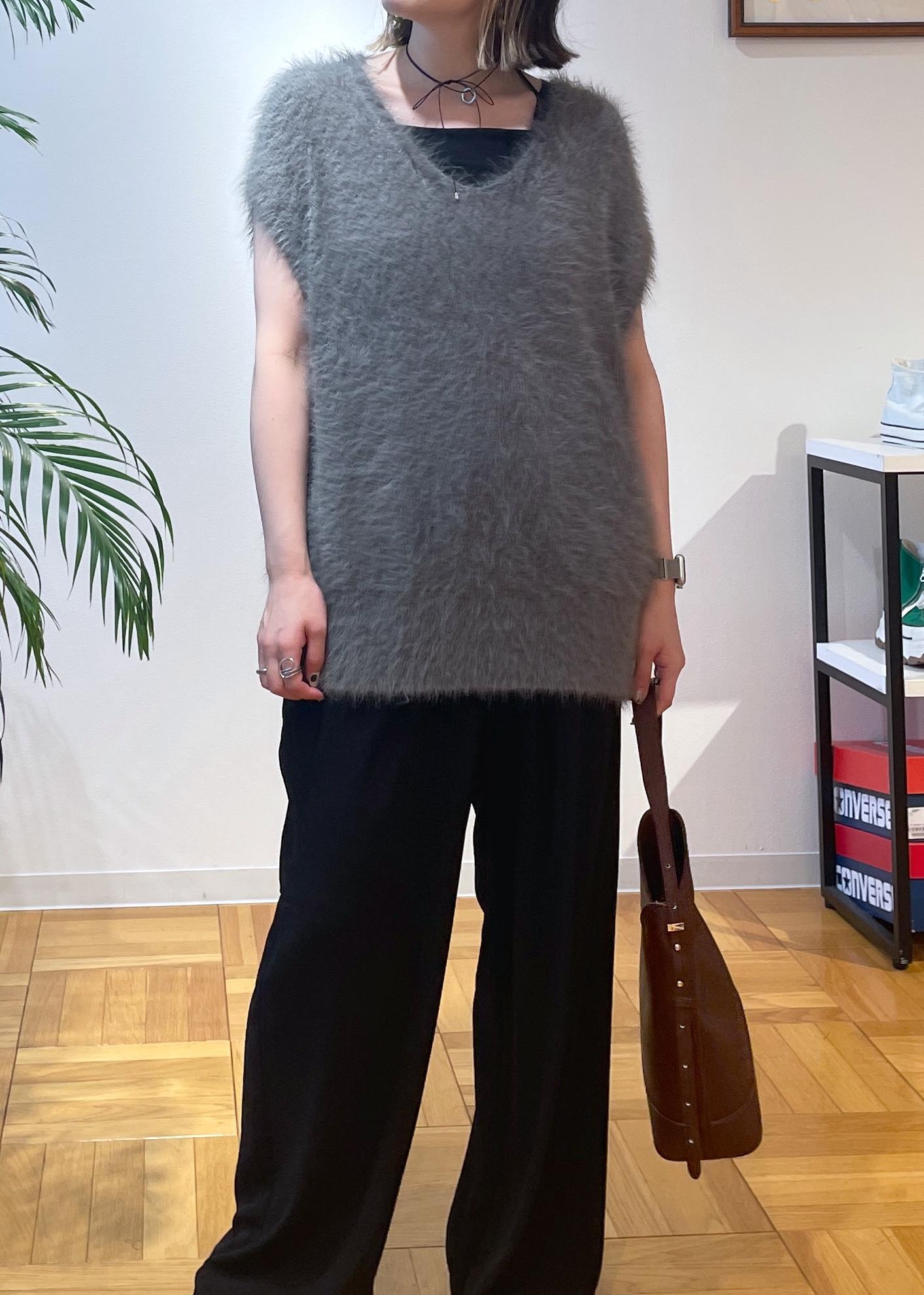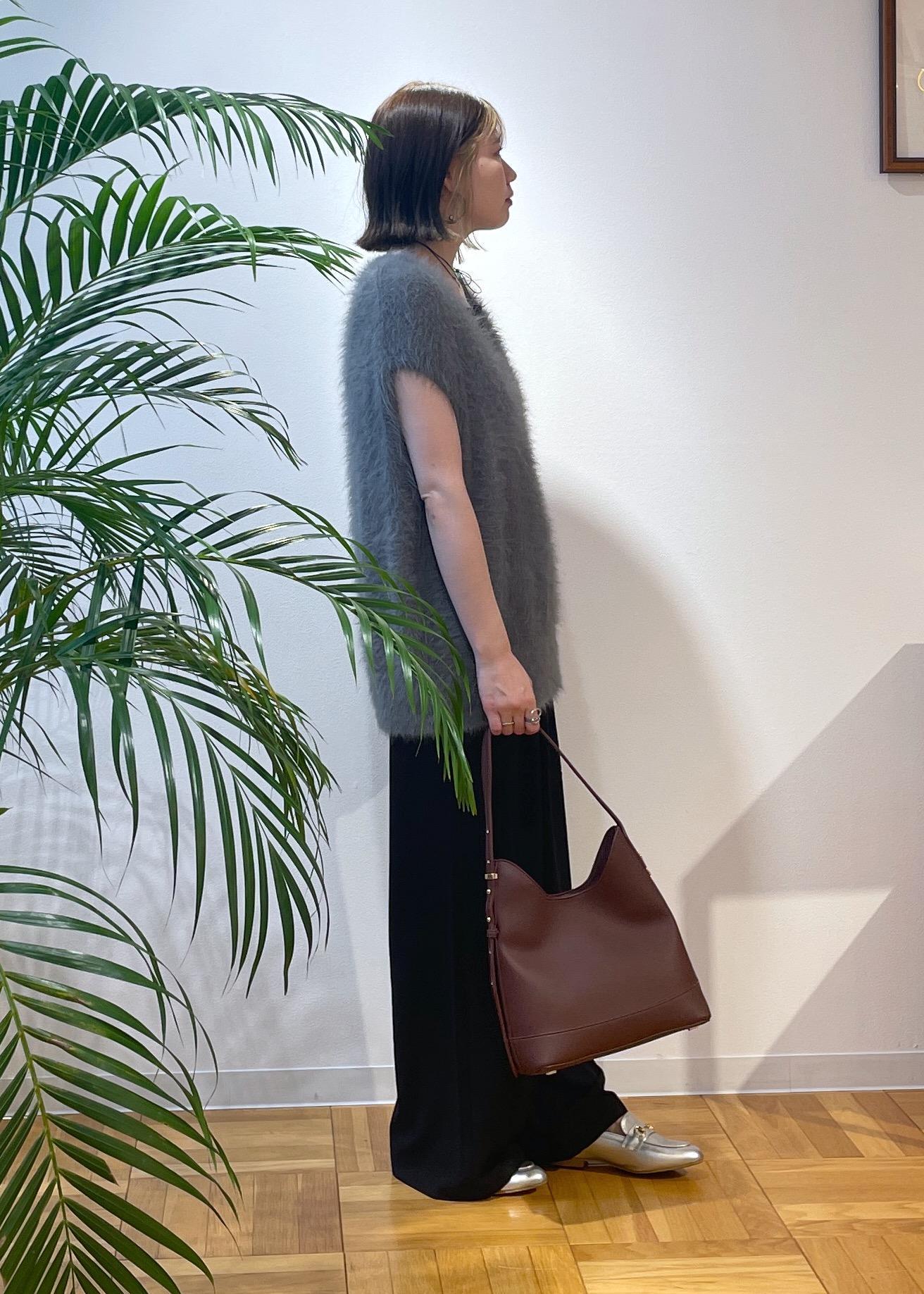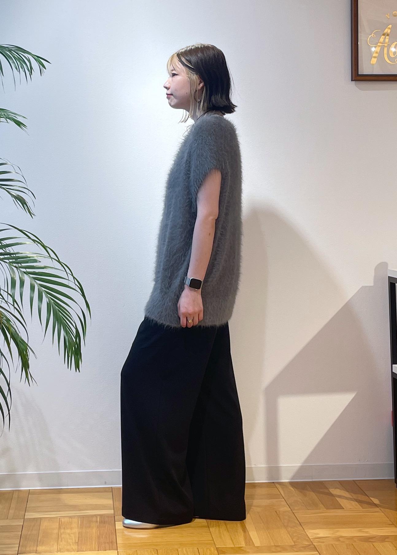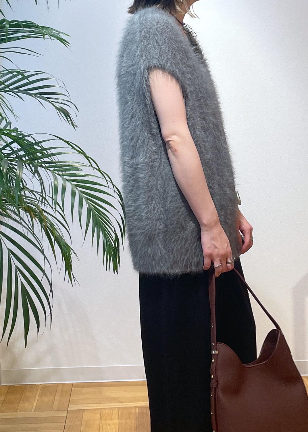 今回は、秋素材のシャギーニットベストを今の暑い時期でも可愛く“大人カジュアル”をテーマにコーディネートしてみました♩