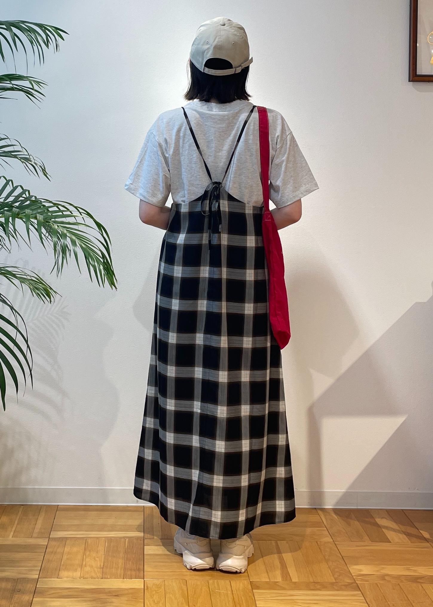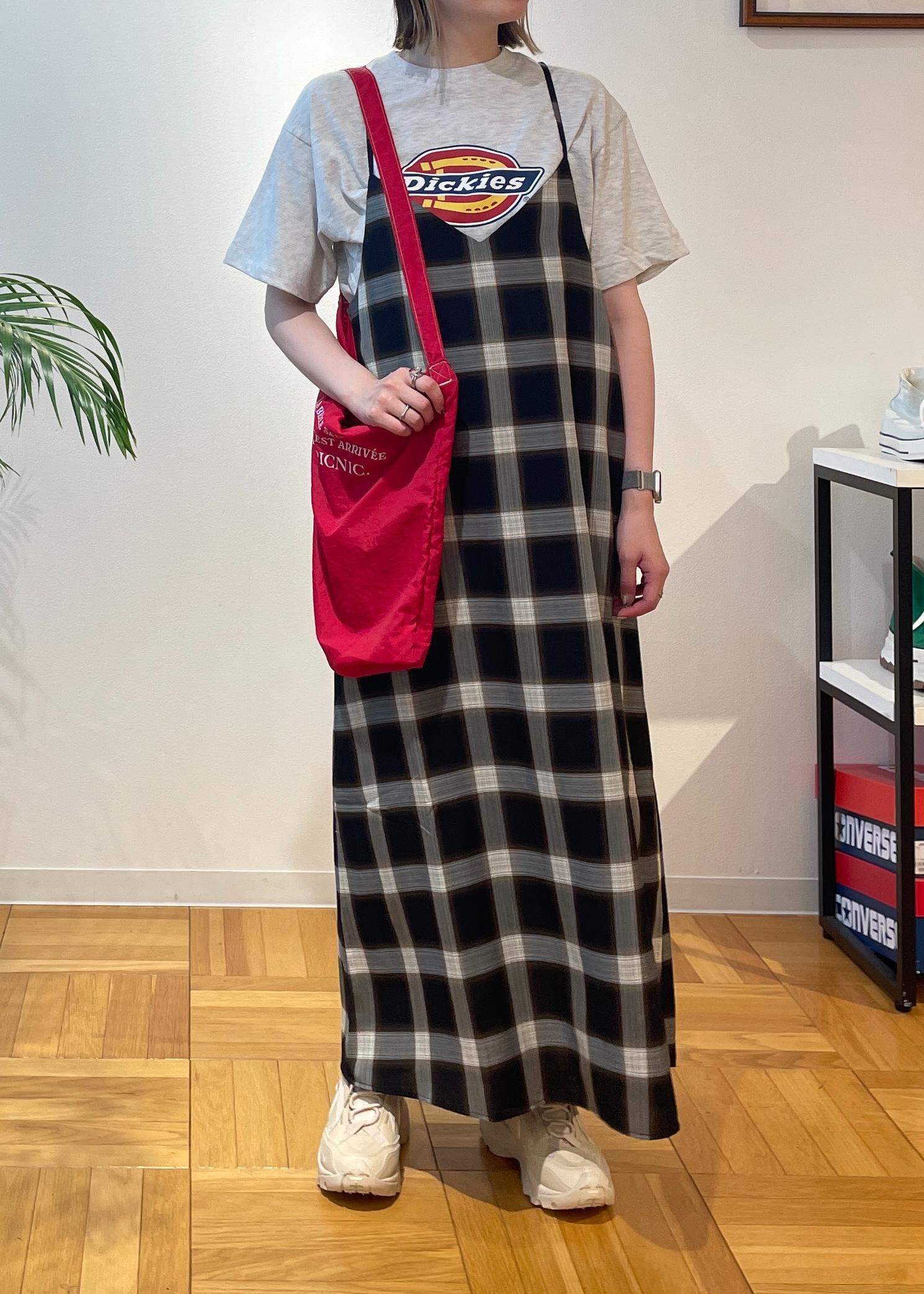 今回はキャップを被ることにしたので、キャミワンピースで女性らしさプラスした着こなしにしてみました¨̮⃝