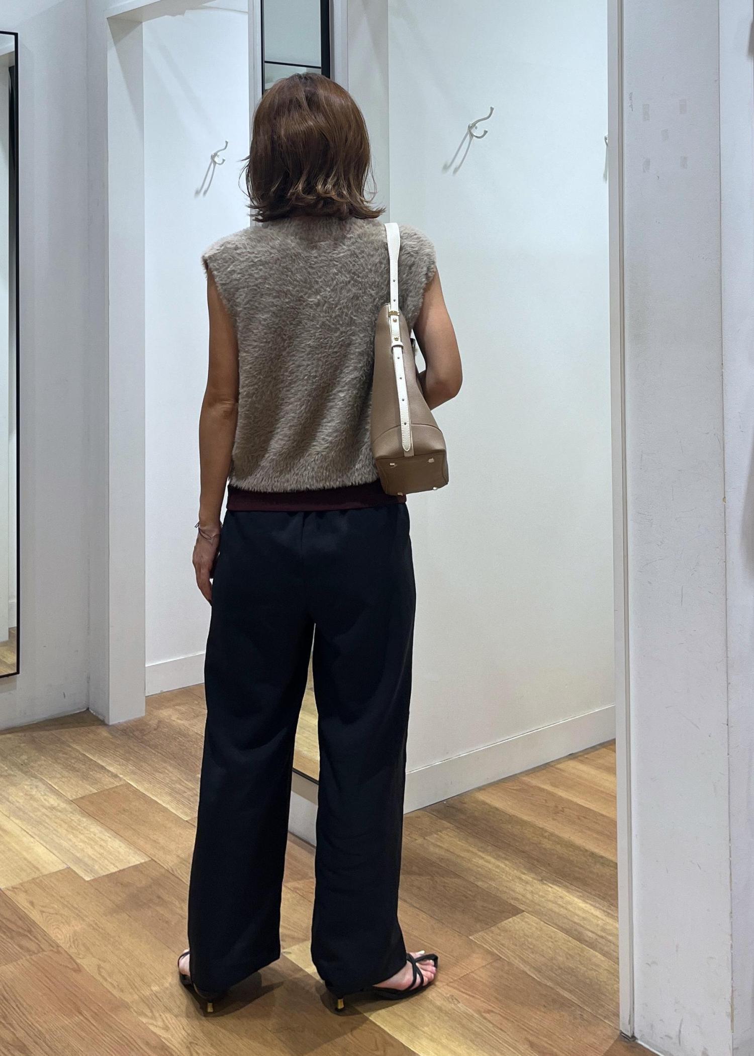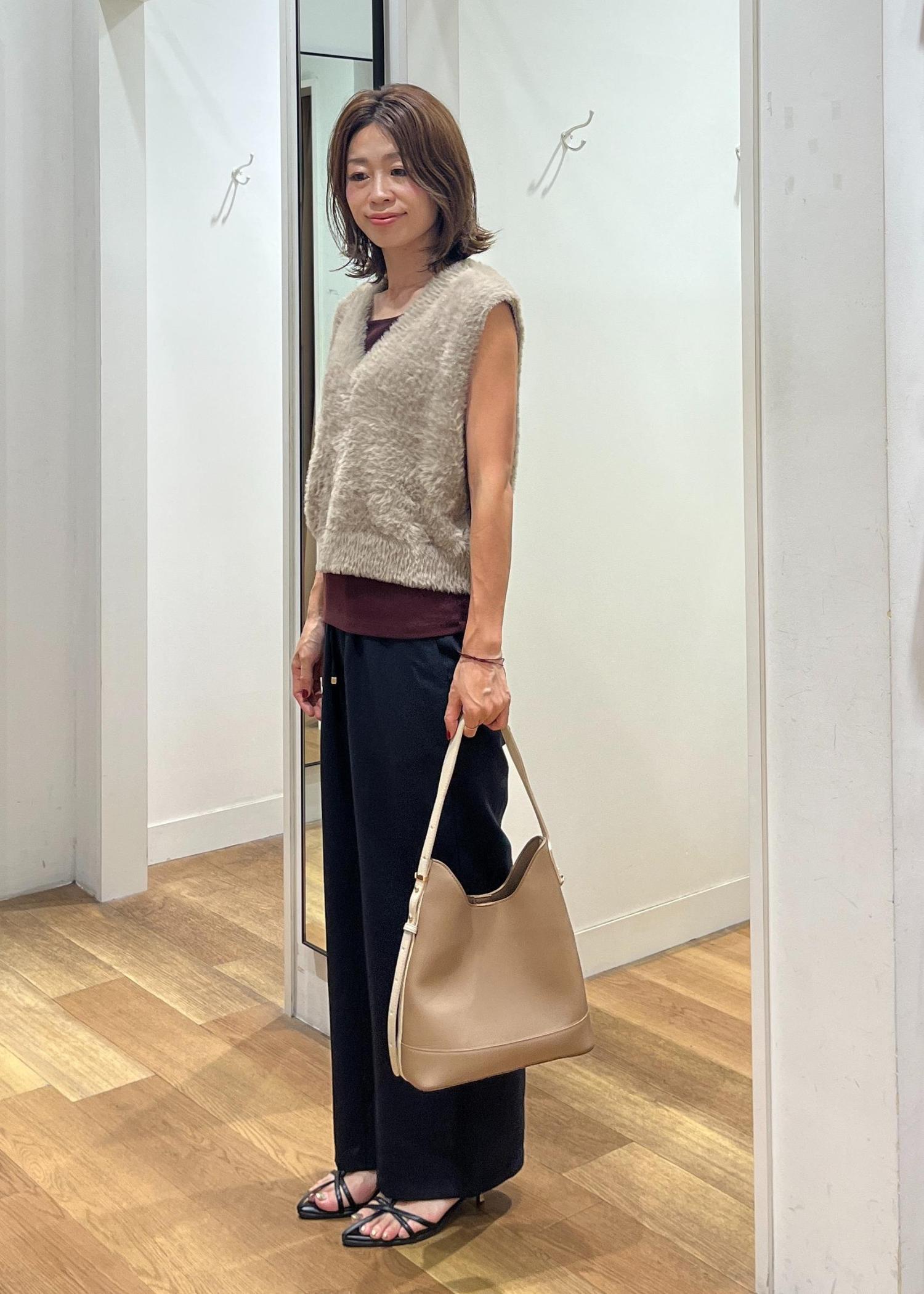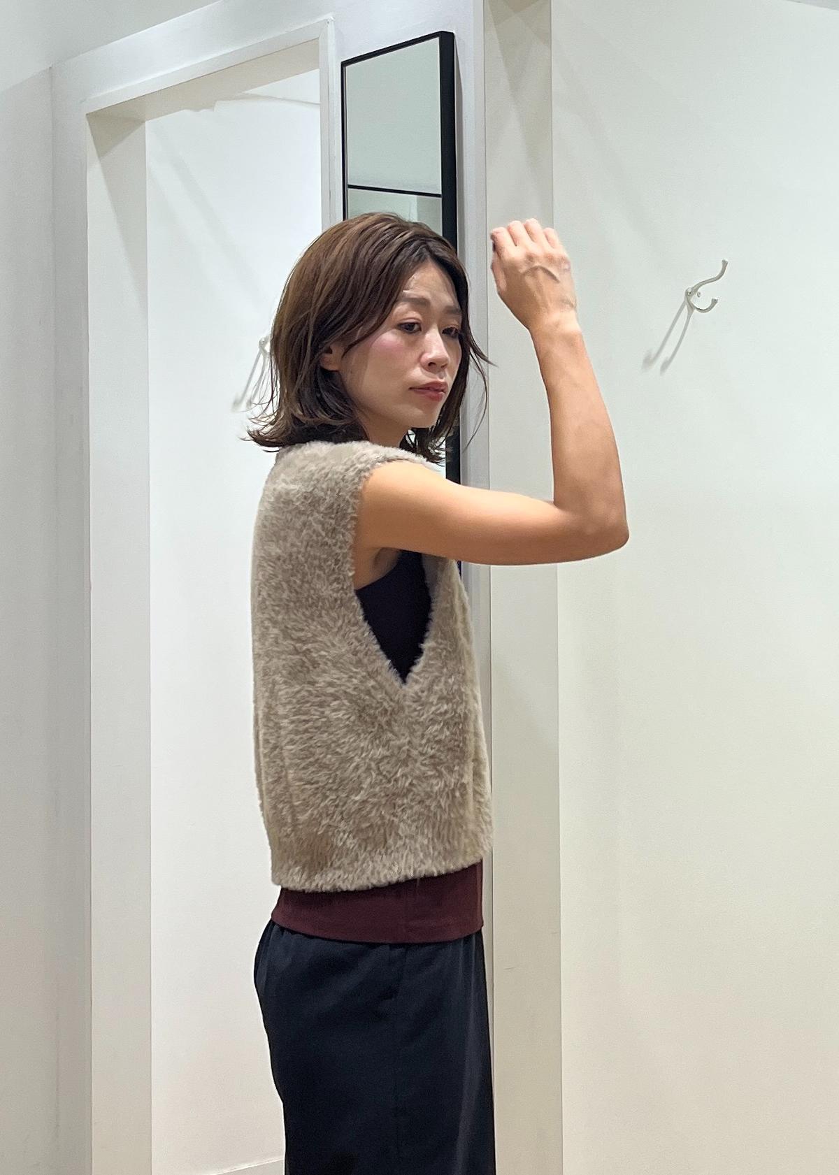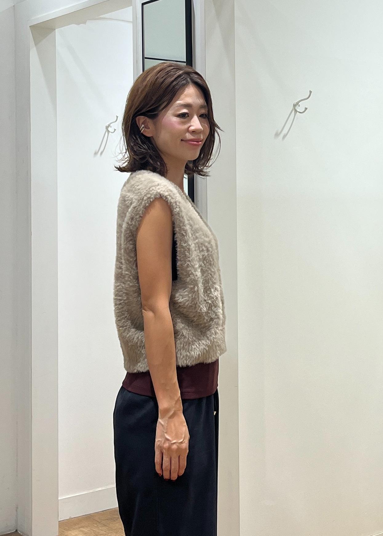 ROPÉ PICNICショートフェザーニットベストベージュ / F¥3,993レビュー1枚で着ると、おへそが見え隠れする