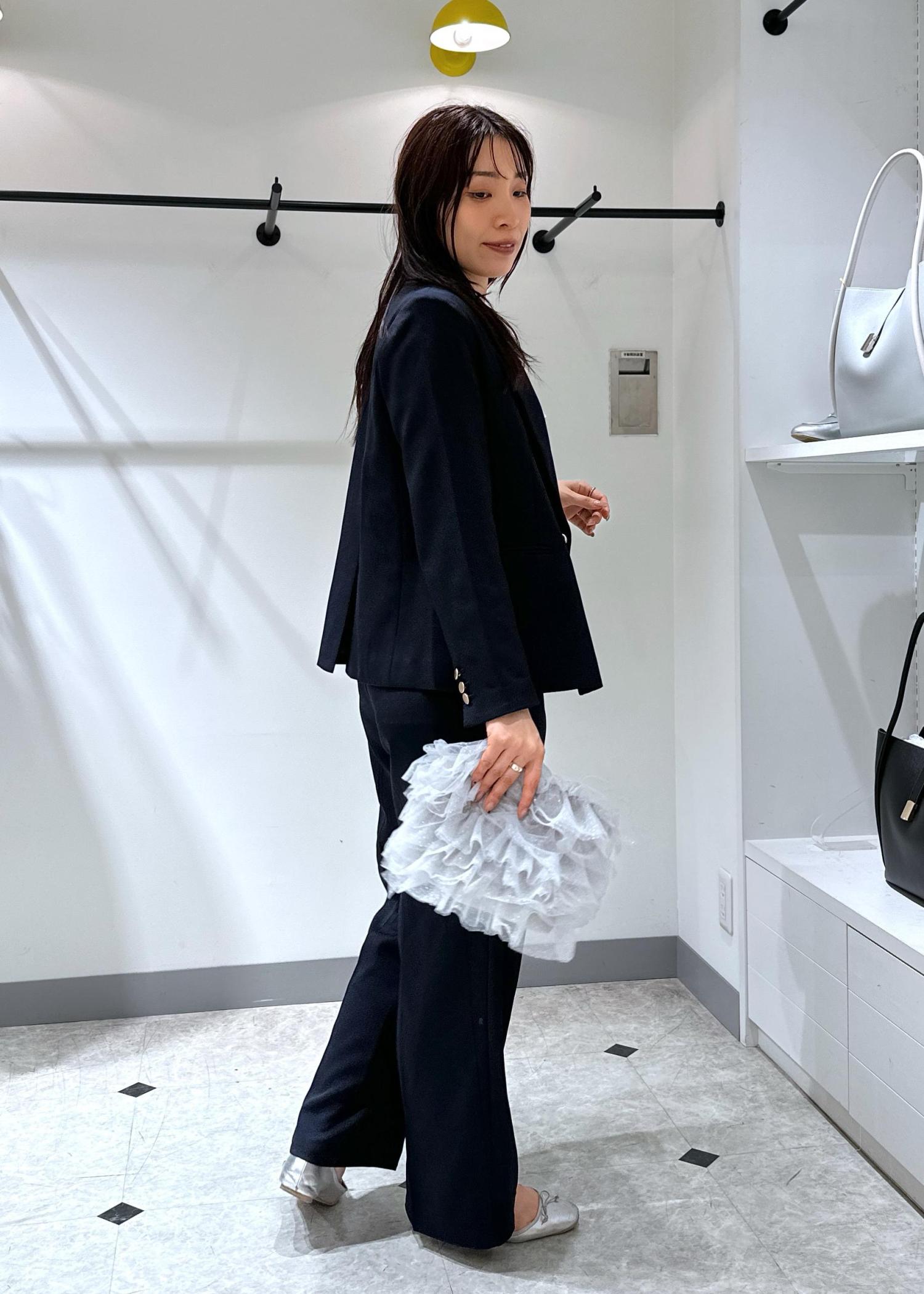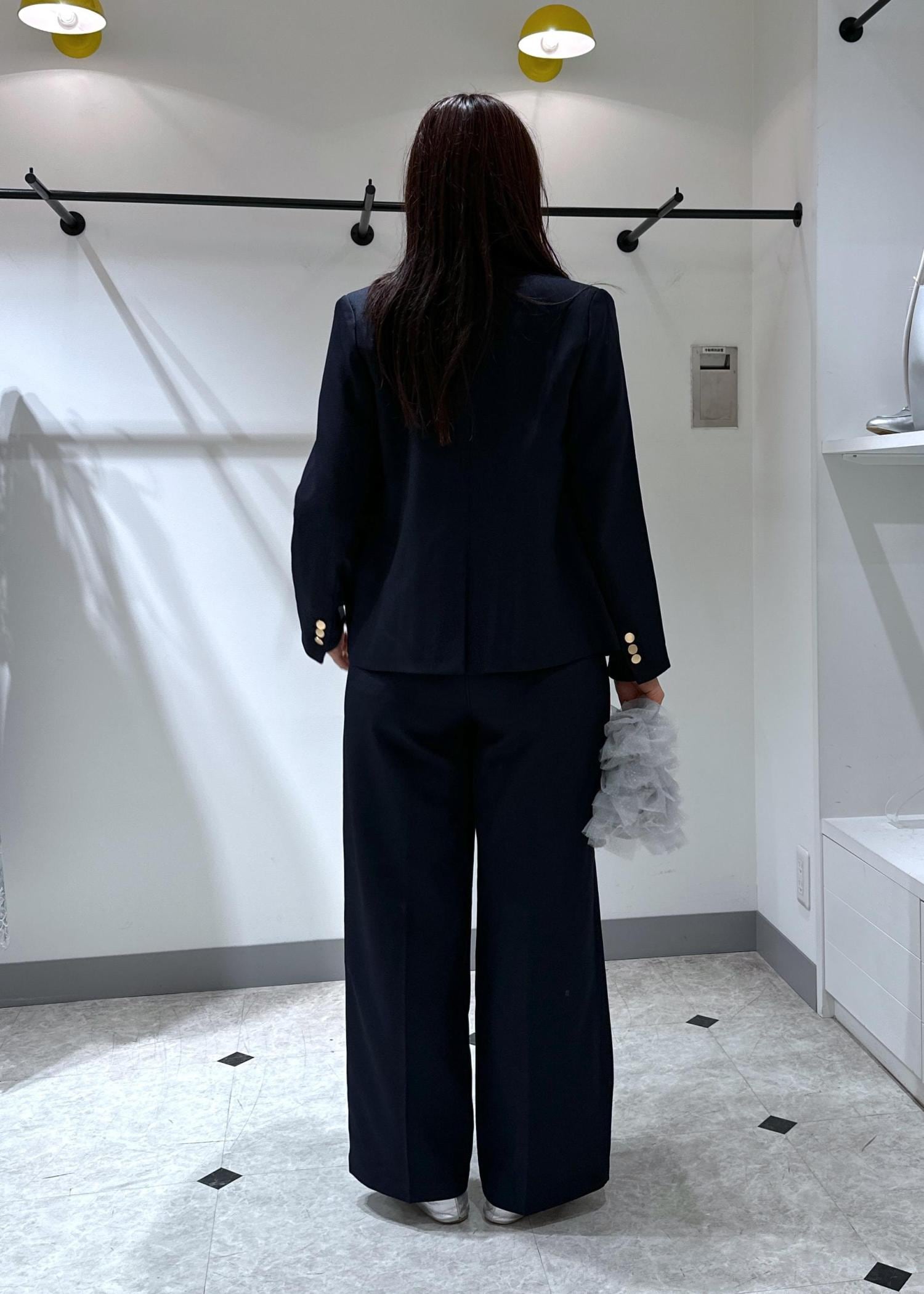 ジャケットは通常丈、パンツは長めの着丈を着用しています。