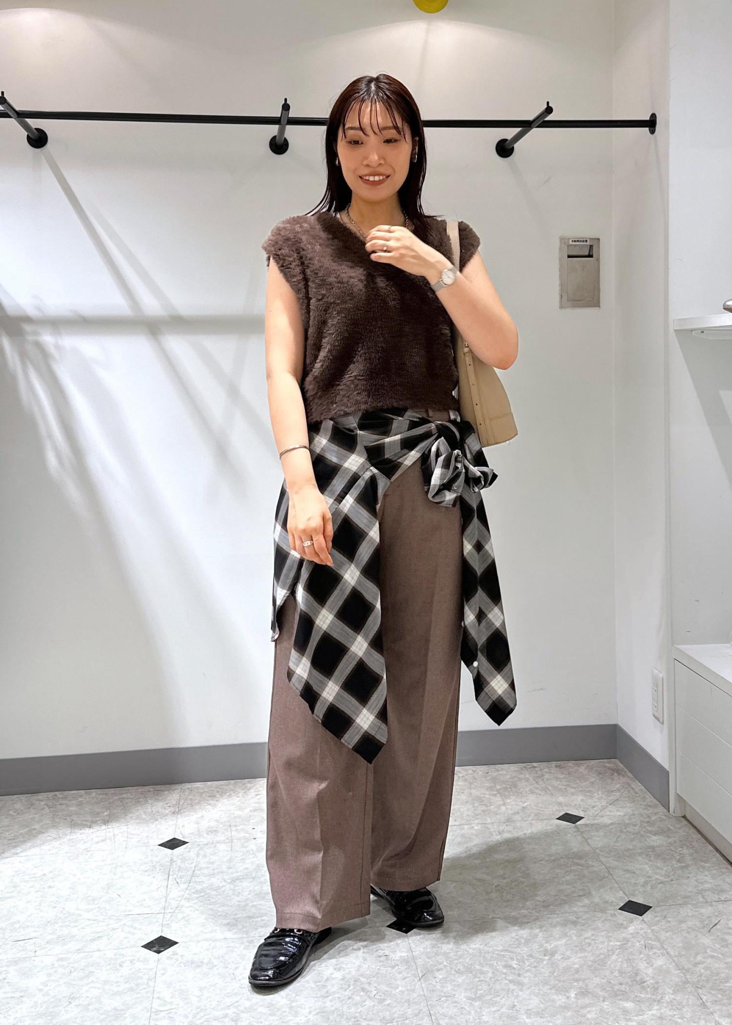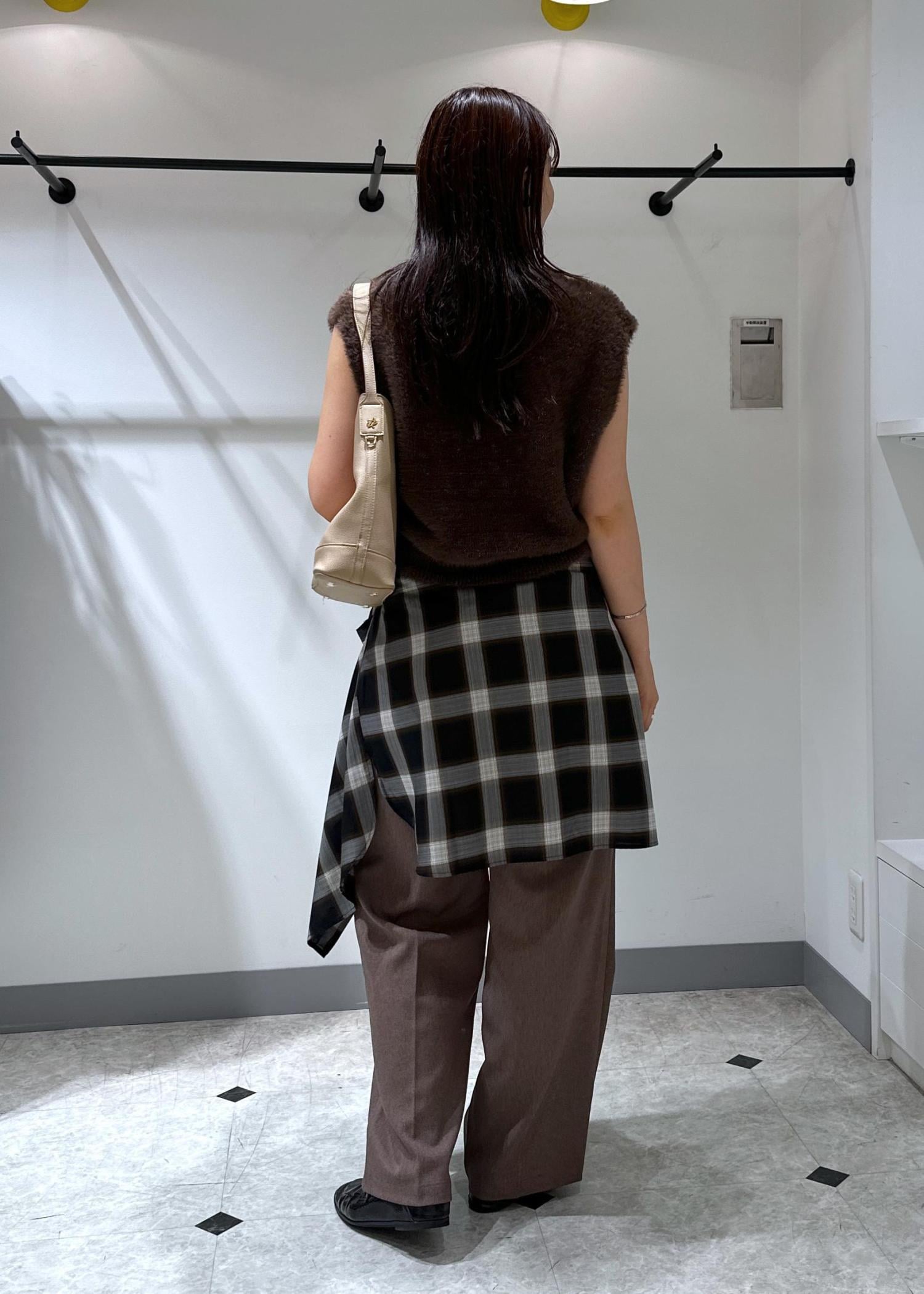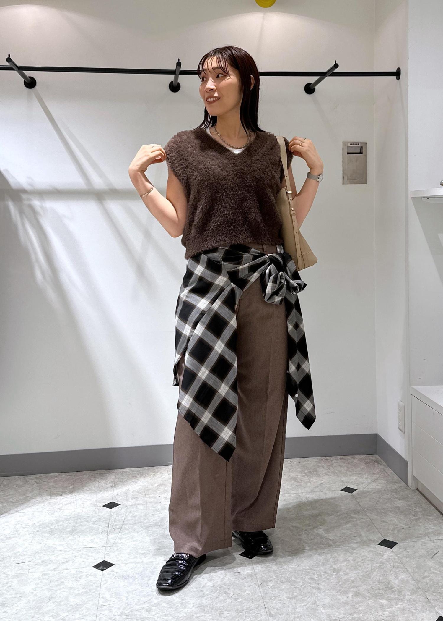 まだ暑いのでベストのインナーはタンクトップにしましたが、涼しくなってくるとブラウスやロンTを入れるのもオススメです!