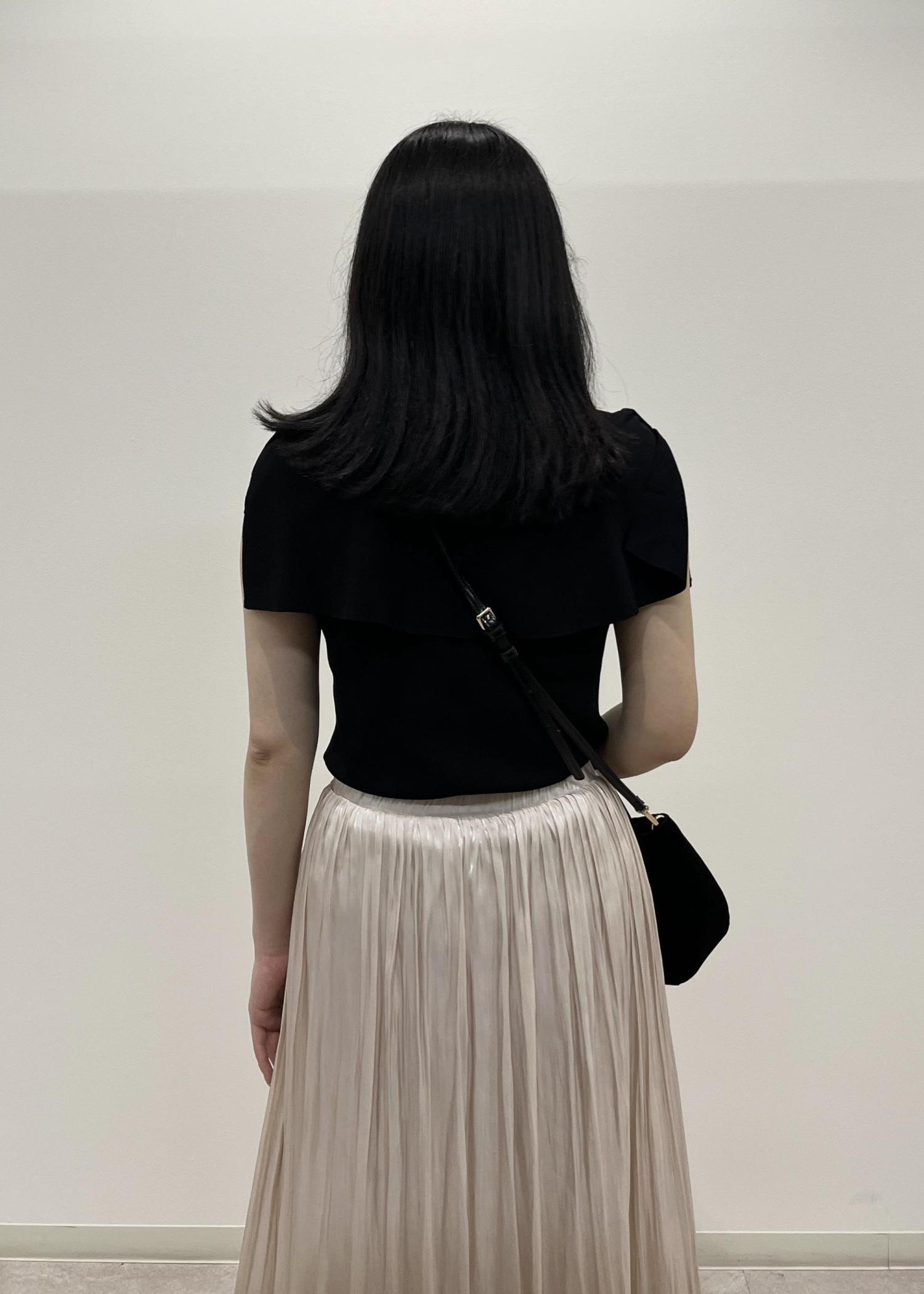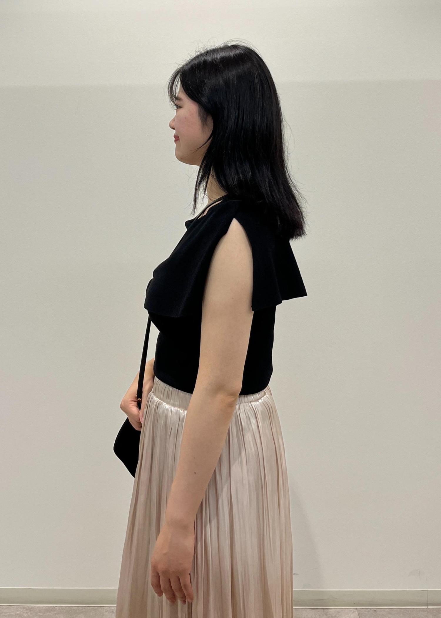 スクエアネックで首元がスッキリ見えるデザインなので骨格ストレートさんにオススメです。