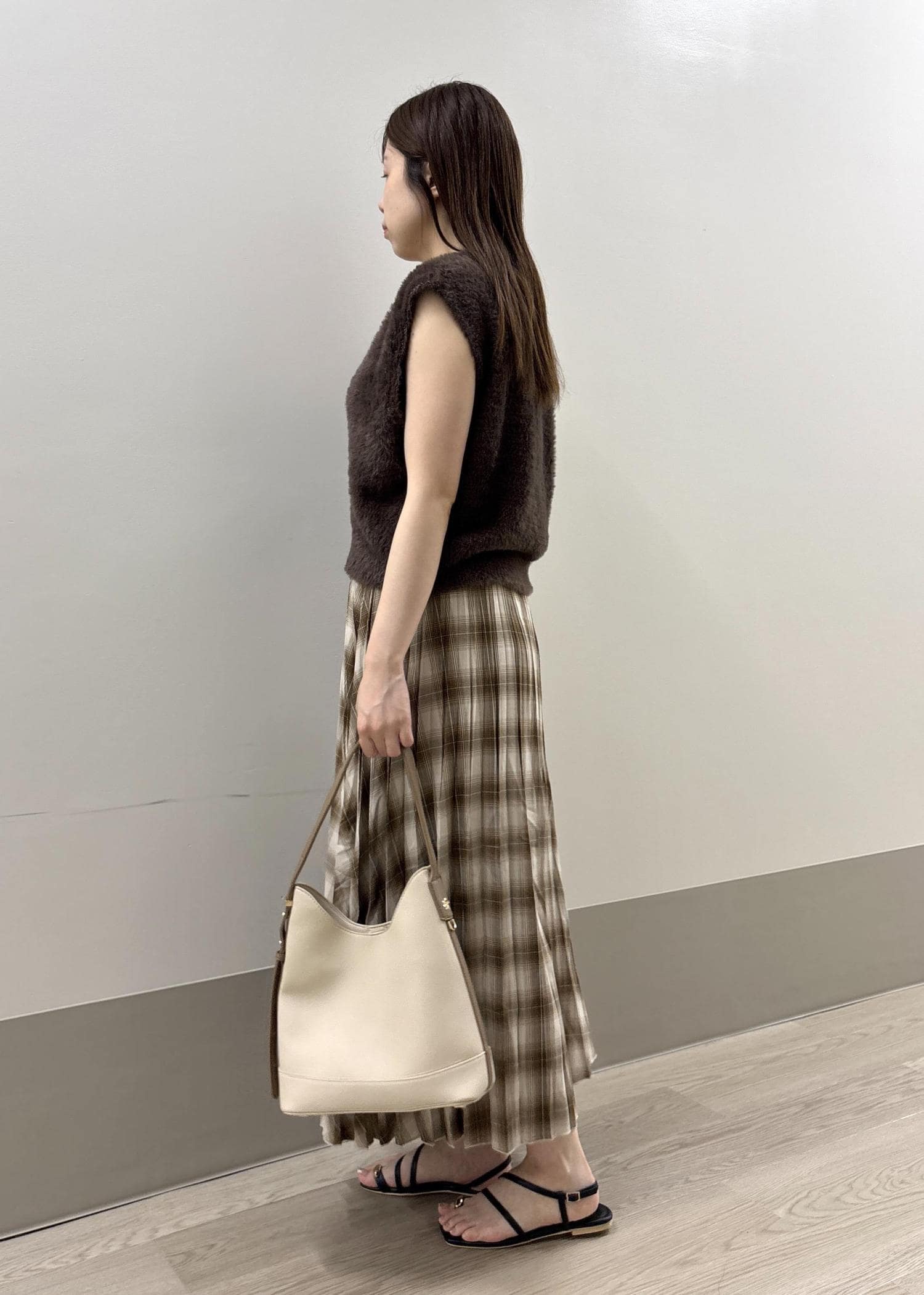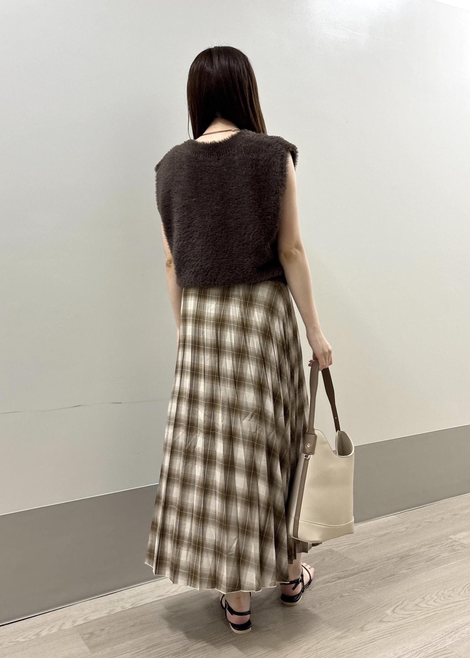 スカートも秋らしいチェックが可愛いのでおすすめです◎