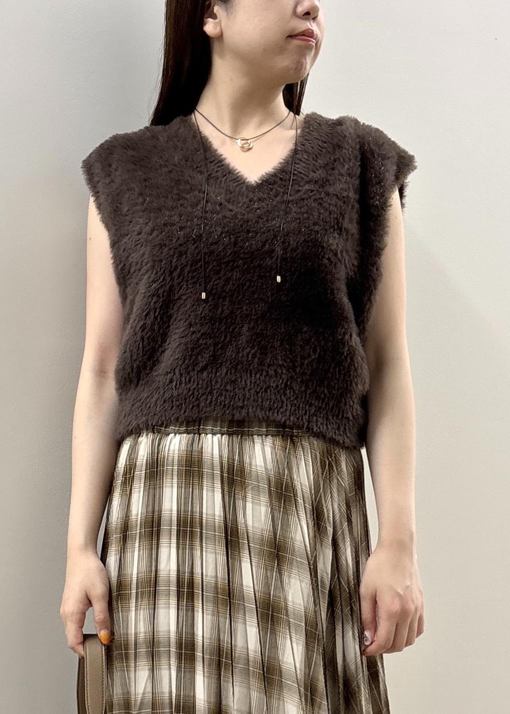 ROPÉ PICNICショートフェザーニットベストダークブラウン / F¥3,993レビュー柔らかい素材のニットベストです。ベストなのでインナーを変えて着用すると印象を変えてお使いいただけます。丈感は158cmで腰くらいの長さです。