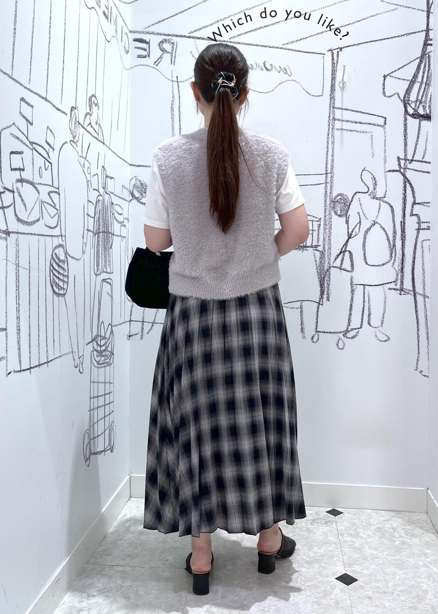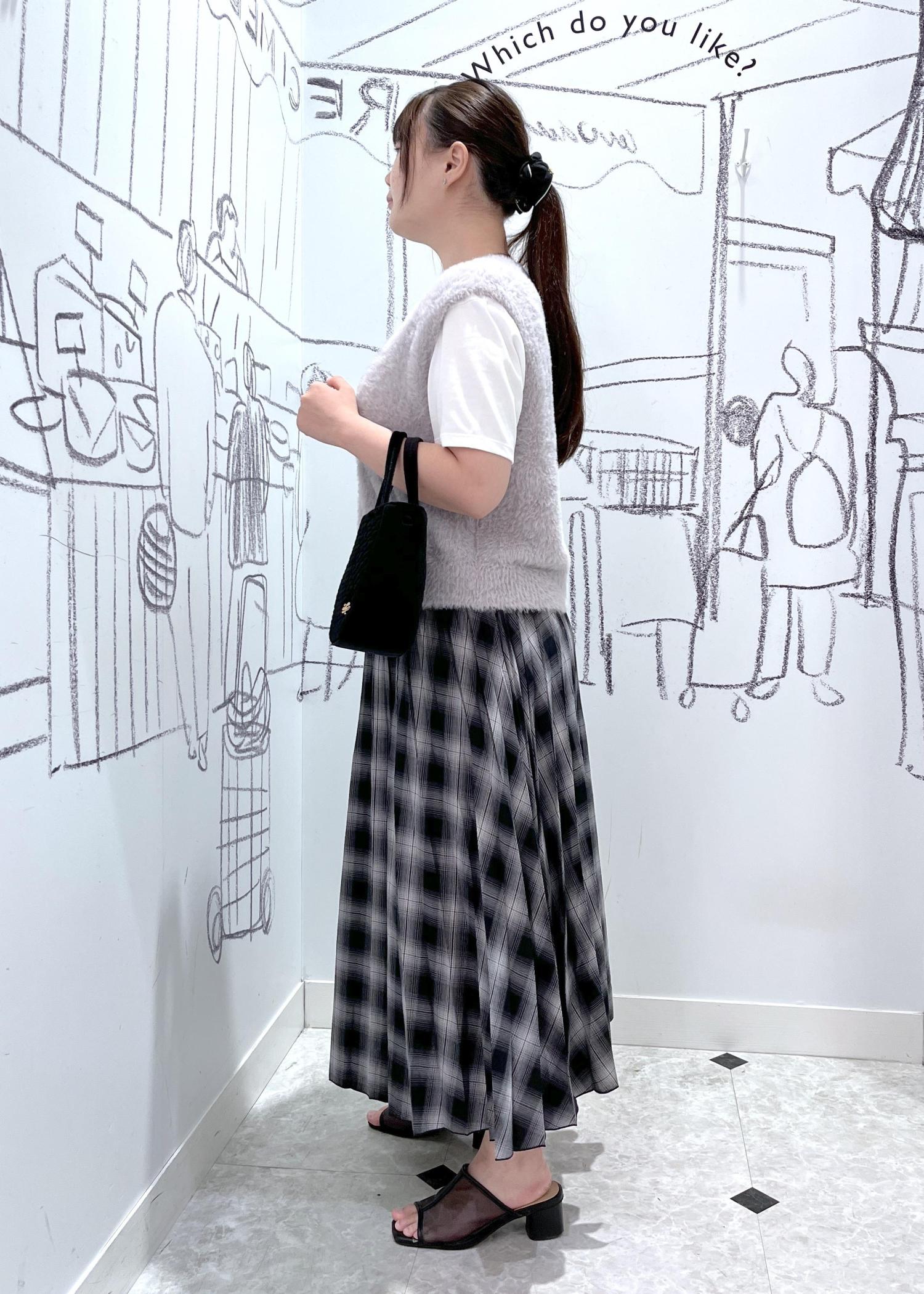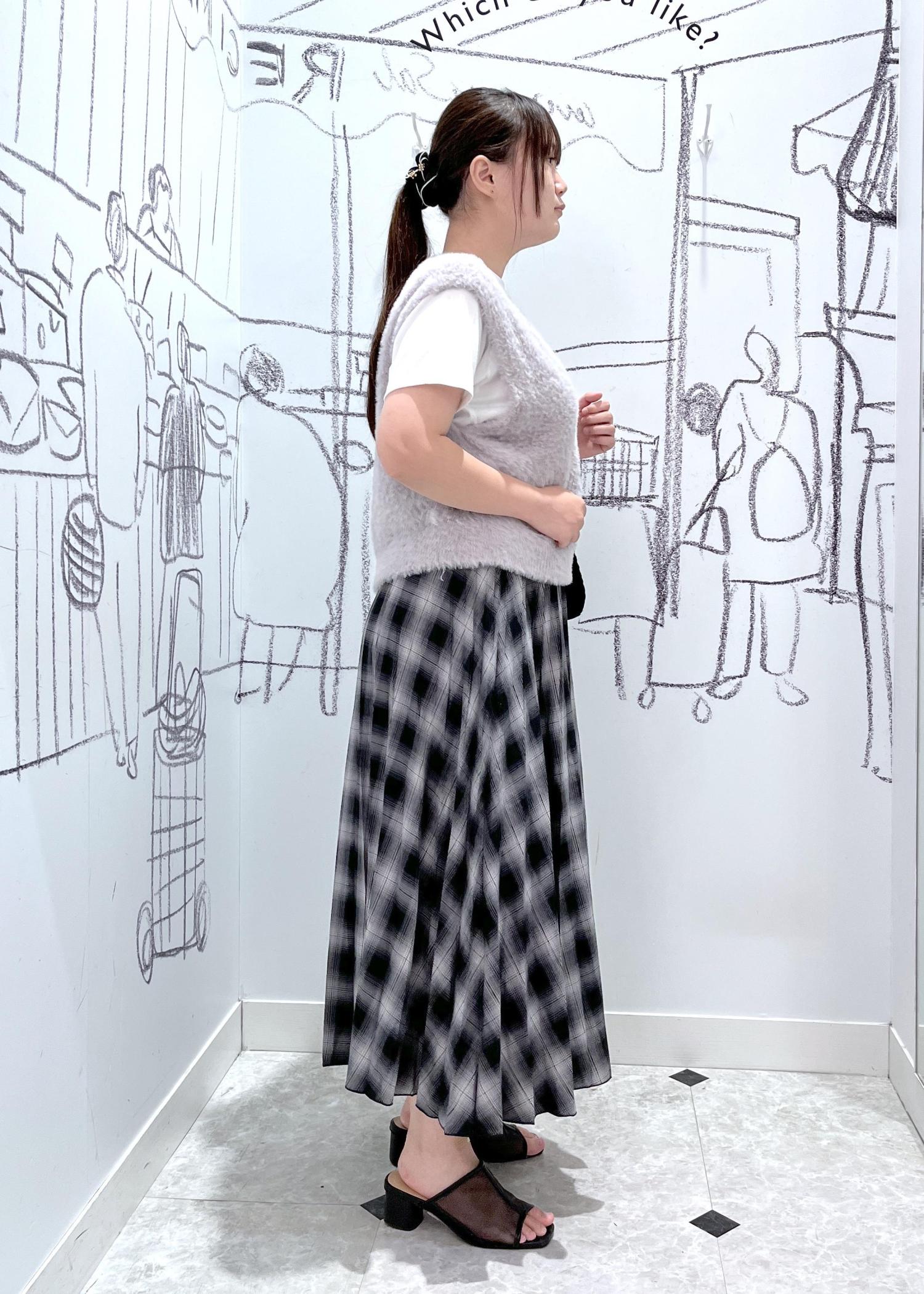 スカートの長さは私の身長155cmでも足首がしっかり見えるぐらいの丈感で低身長の方も着やすい丈感です。