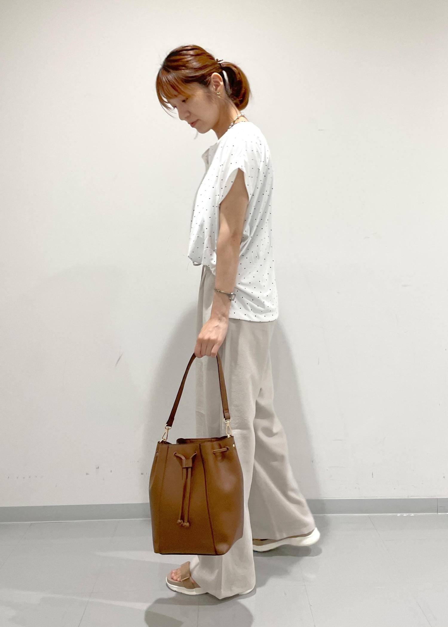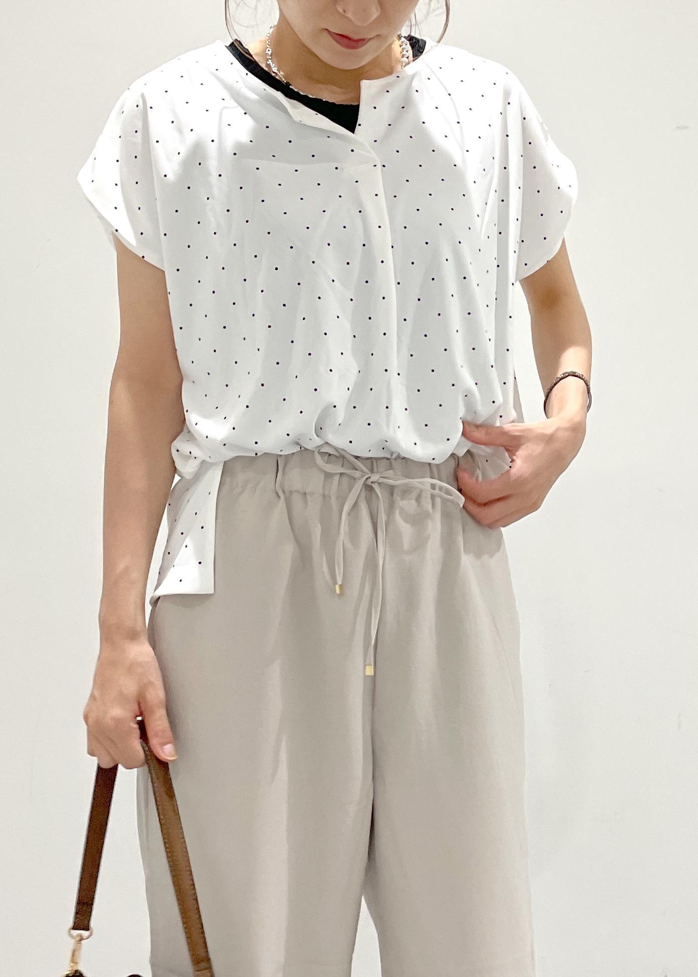 暑い夏、ゆったりと楽に着たいと思い、スキッパーブラウスとワイドパンツで合わせました!