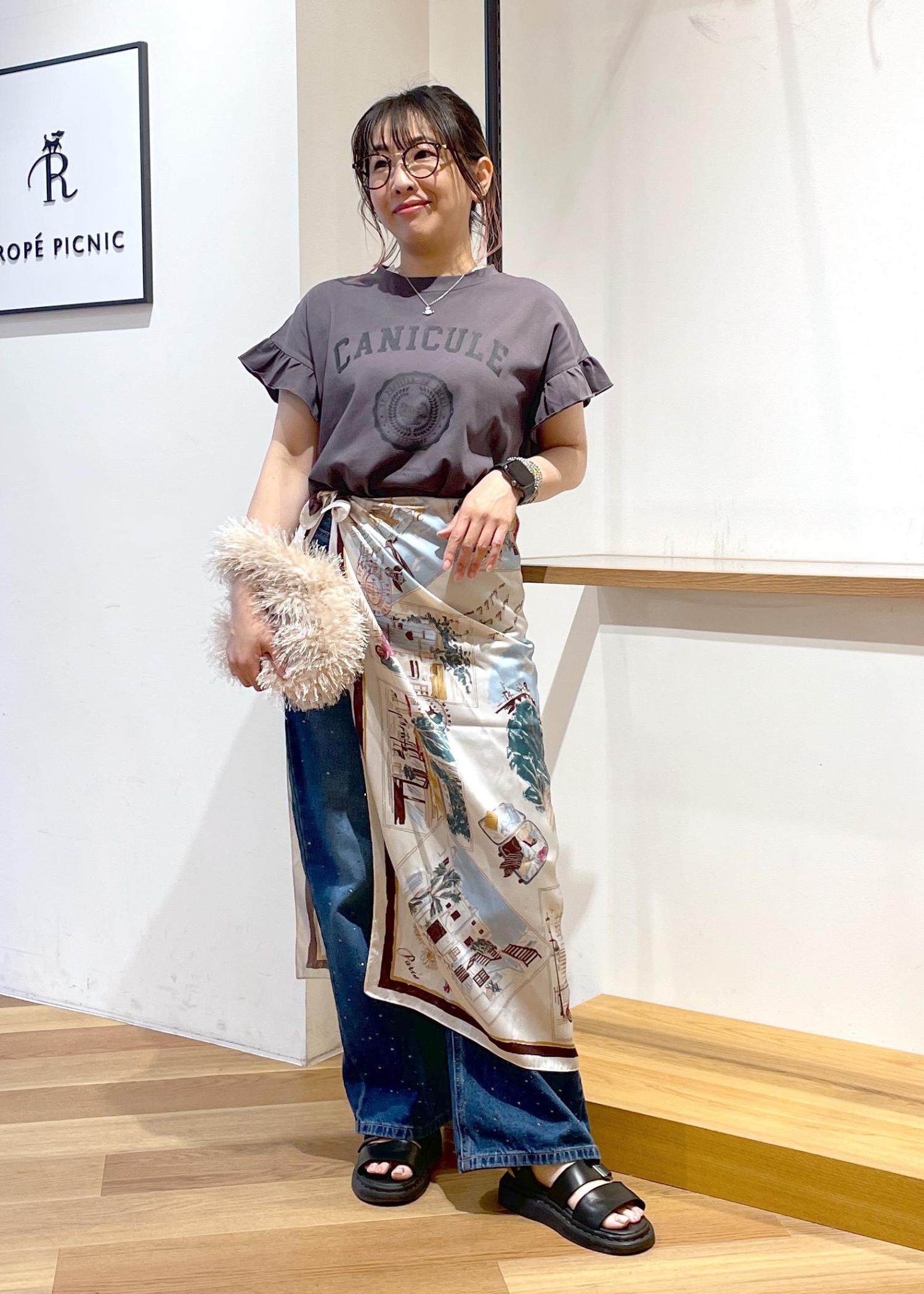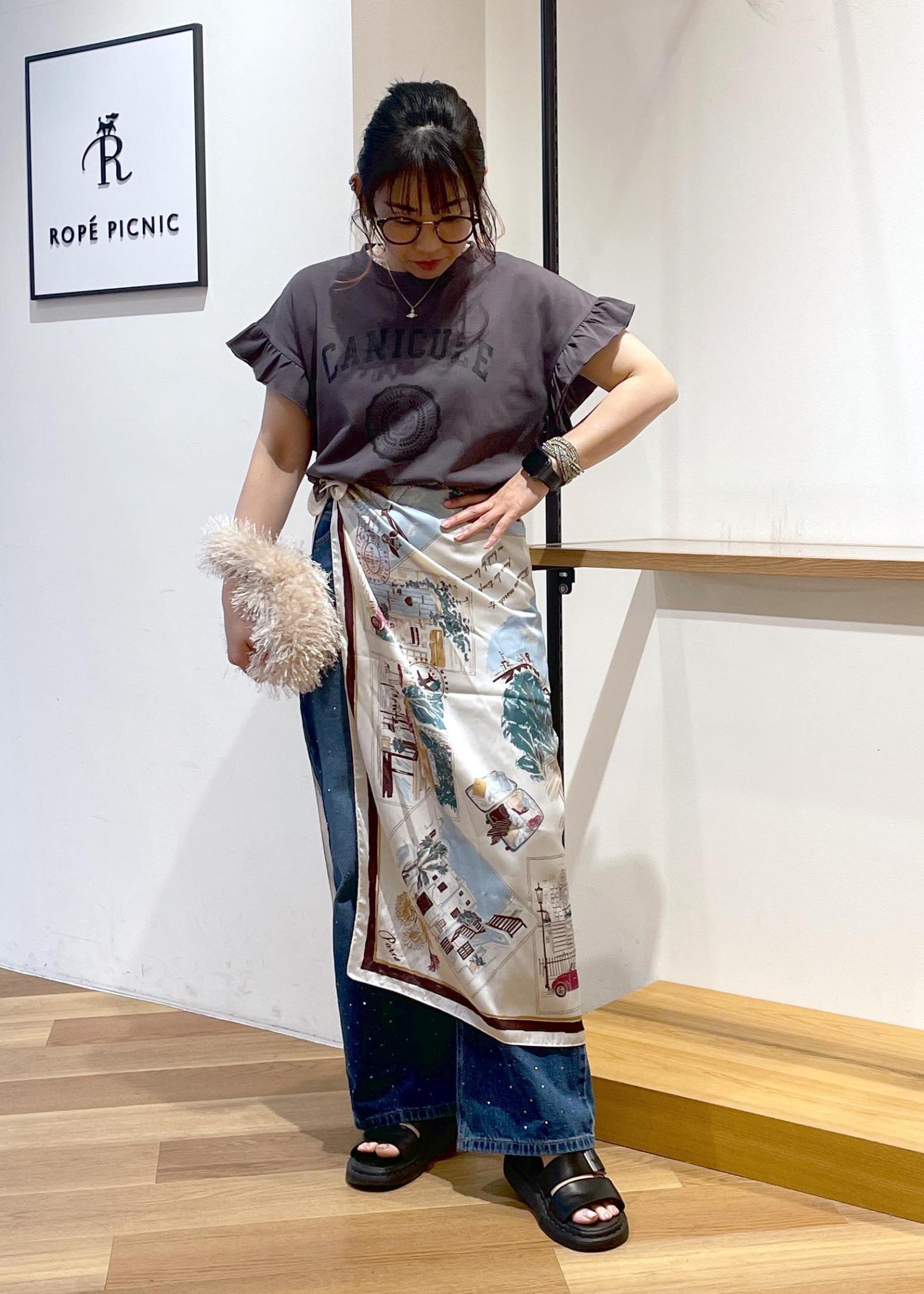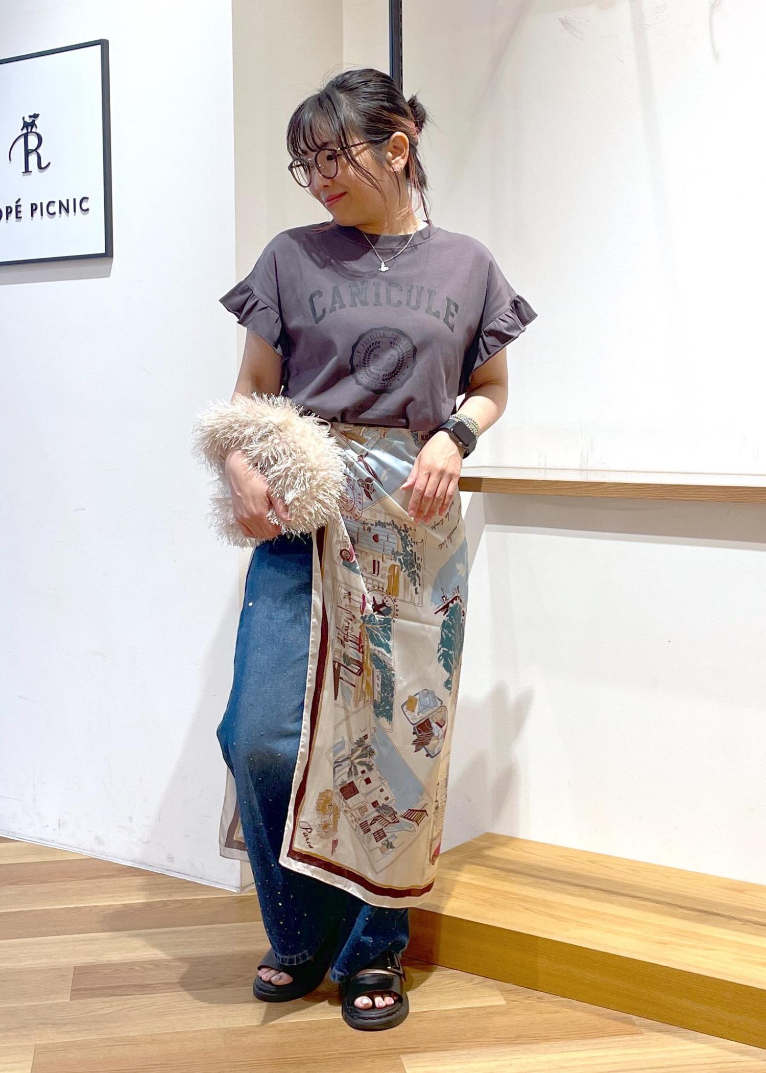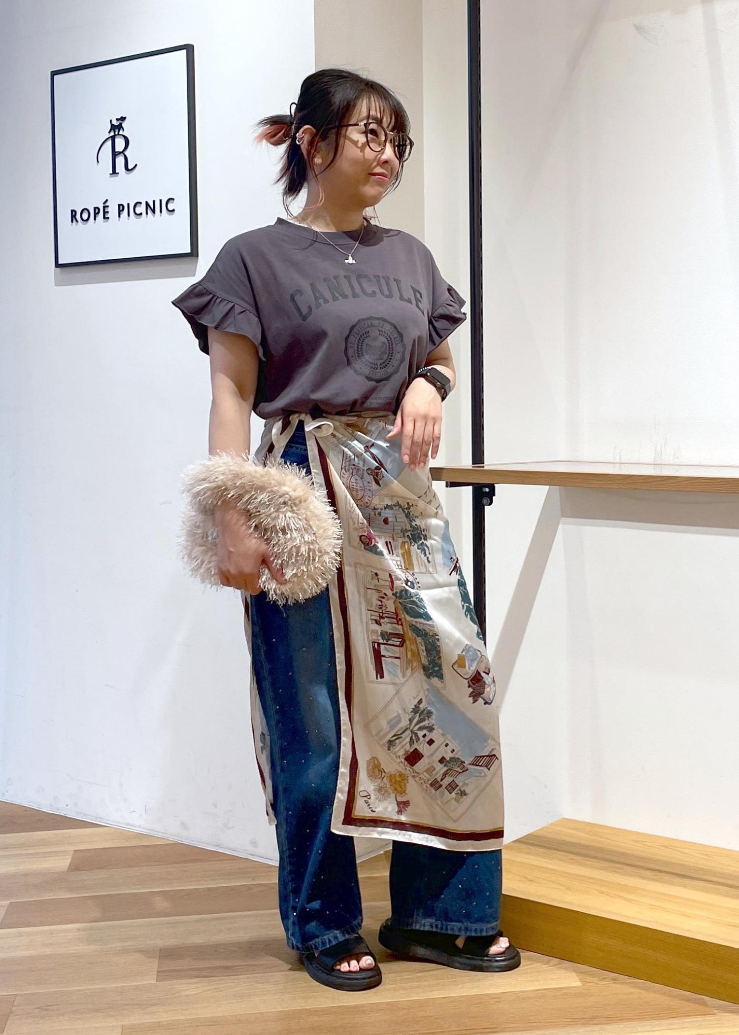 ROPÉ PICNIC袖フリルカレッジロゴTシャツチャコール / 38¥4,499レビューゆったりとしたシルエットでカレッジロゴが可愛いTシャツです。お袖のフリルも印象的です○