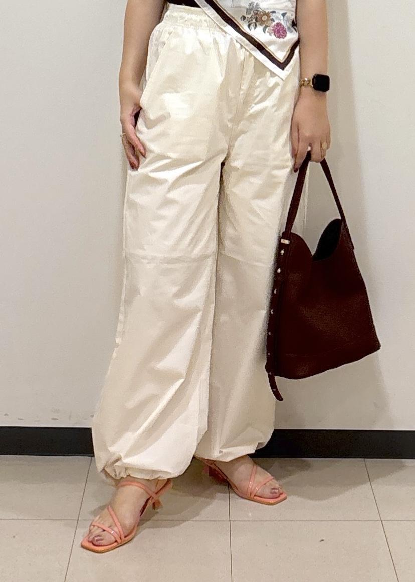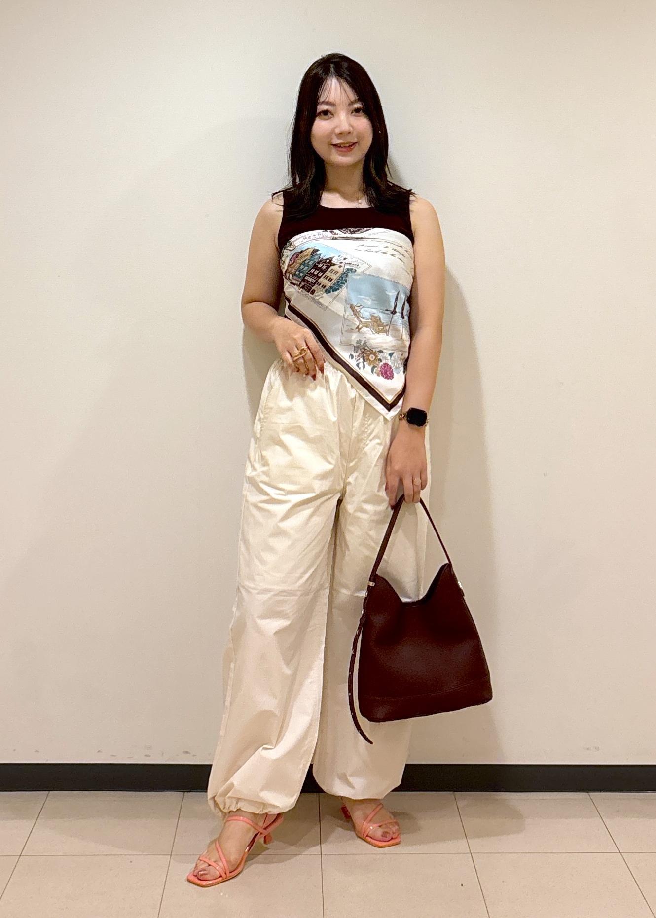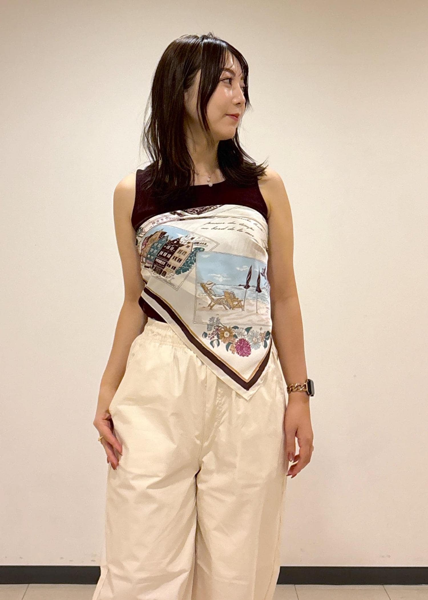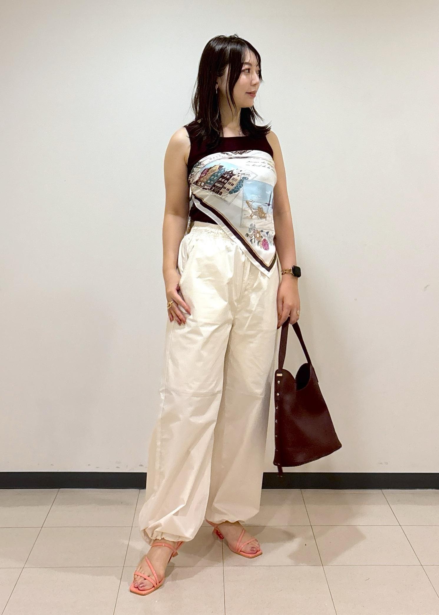タンクトップにドロストパンツでボーイッシュなアイテムを