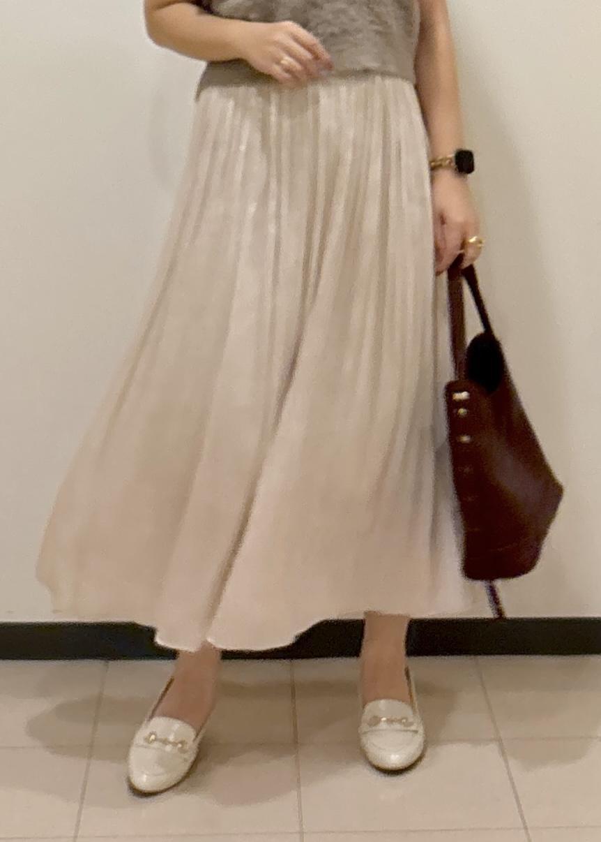 アウトレットROPÉ PICNICシャイニーリラックスプリーツスカートベージュ系 / 38¥2,992レビュー光沢あるスカートで綺麗目な印象。裏地付きなので下着の透けは心配なかったです。