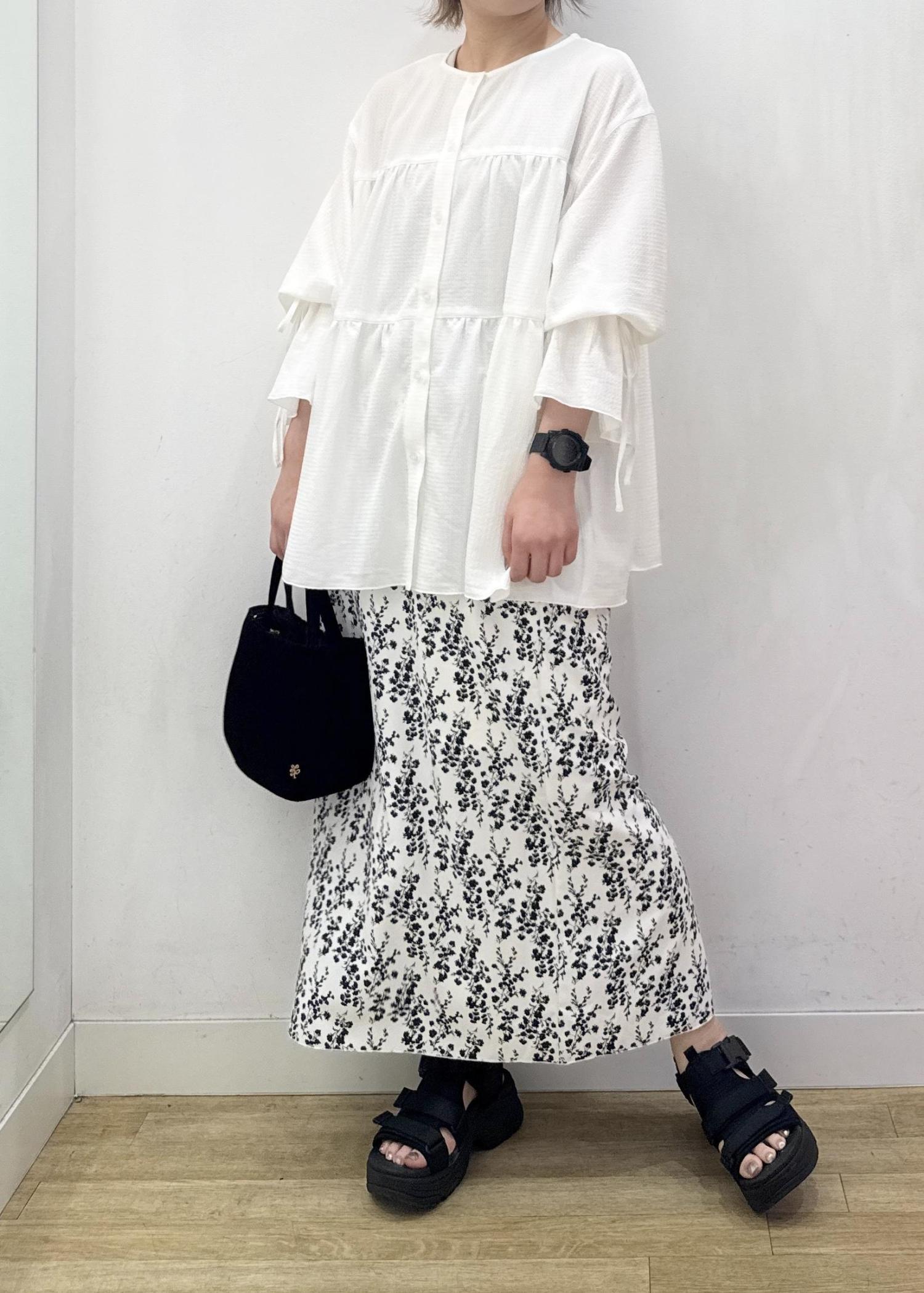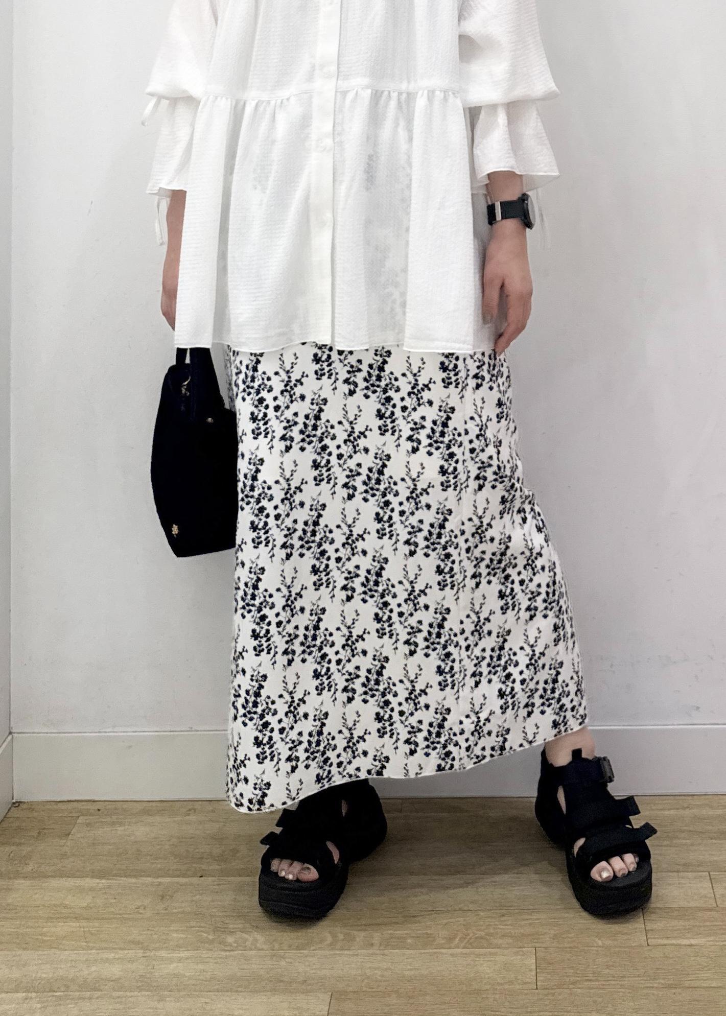 アウトレットROPÉ PICNICフラワープリントスカート/リンクコーデホワイト系 / 38¥2,998レビューシルエットは少しタイトめでスッキリとしていますが、ヒップや脚のラインは拾わないぐらいのサイズ感でした。