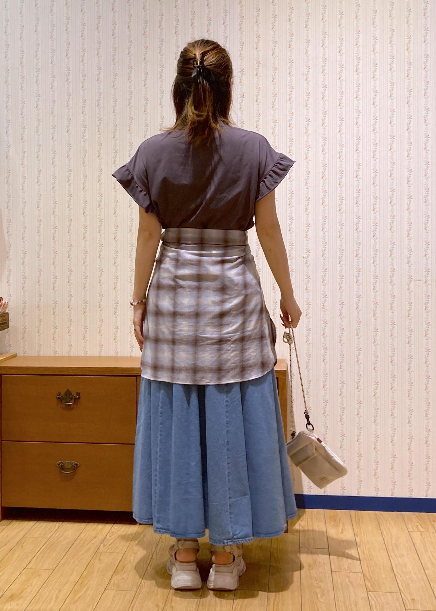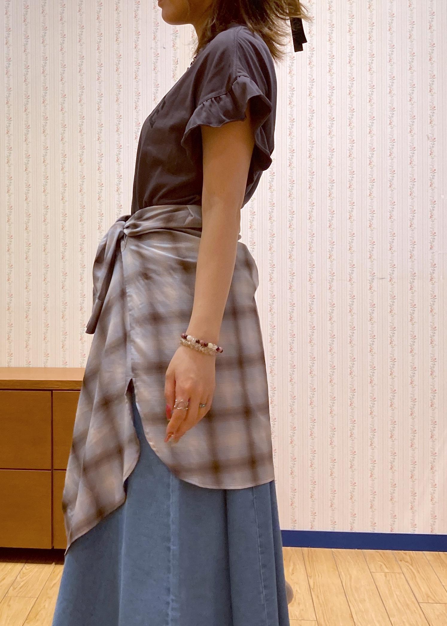 オーバーサイズでゆったり感があり、今年っぽい腰巻きスタイルもおすすめ。 -