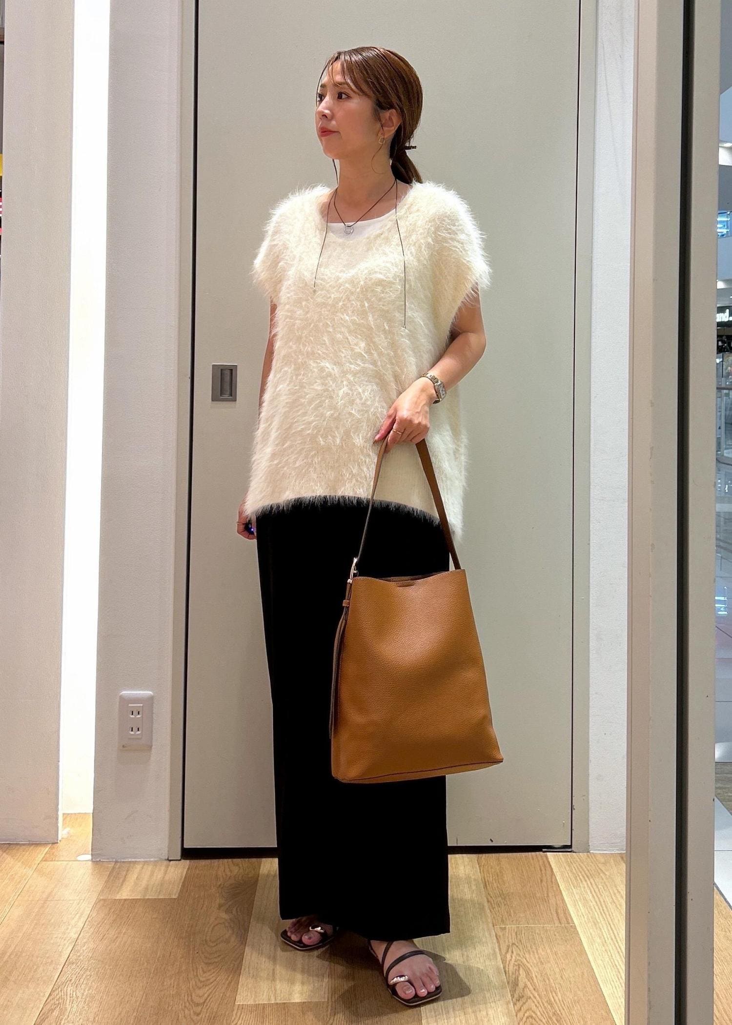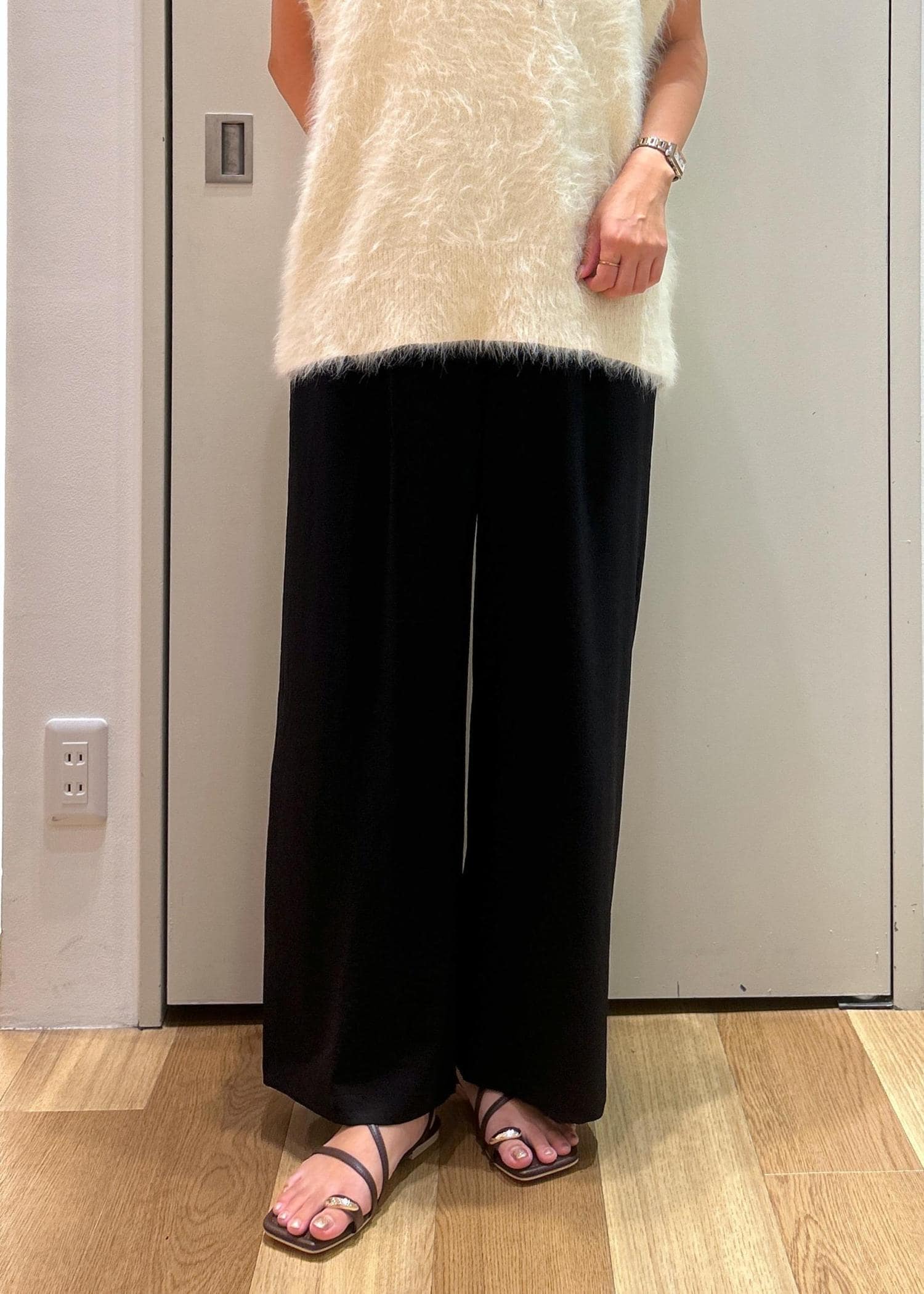 柔らかな触り心地のシャギーベストにワイドパンツを合わせたリラックスコーデです。