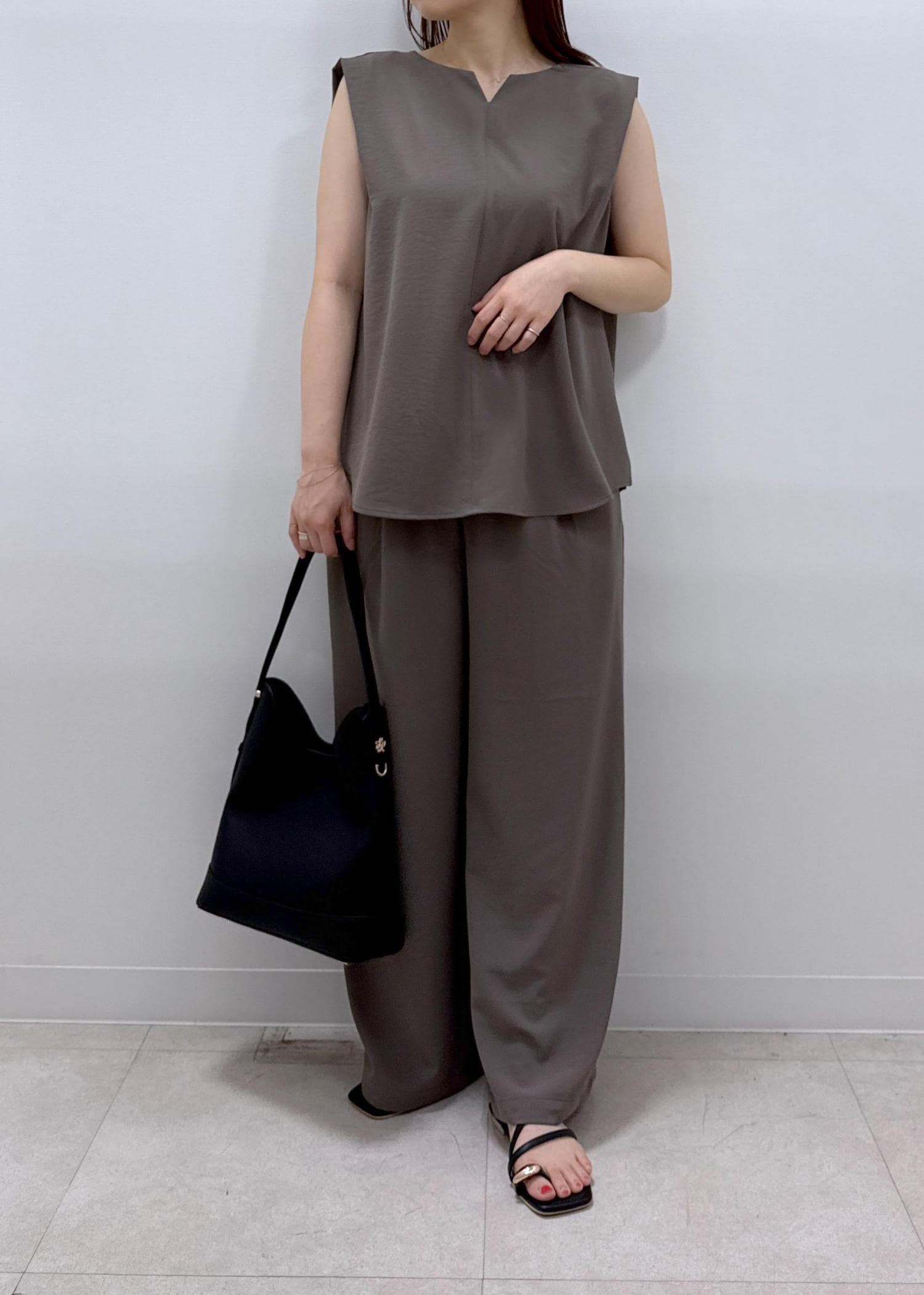 ウエストは総ゴムで落ち感のあるサラッとした素材なので楽ちんです◎ -