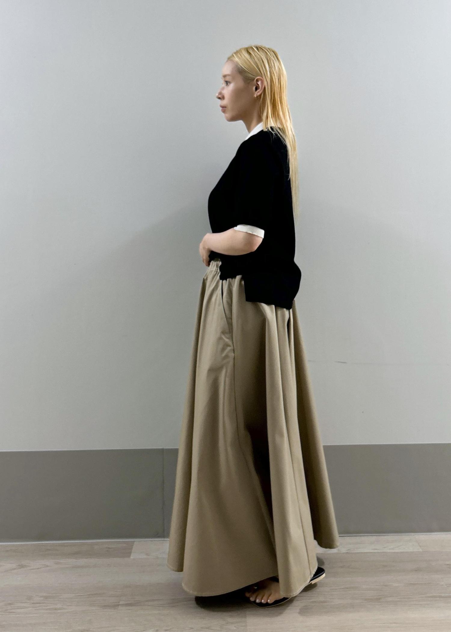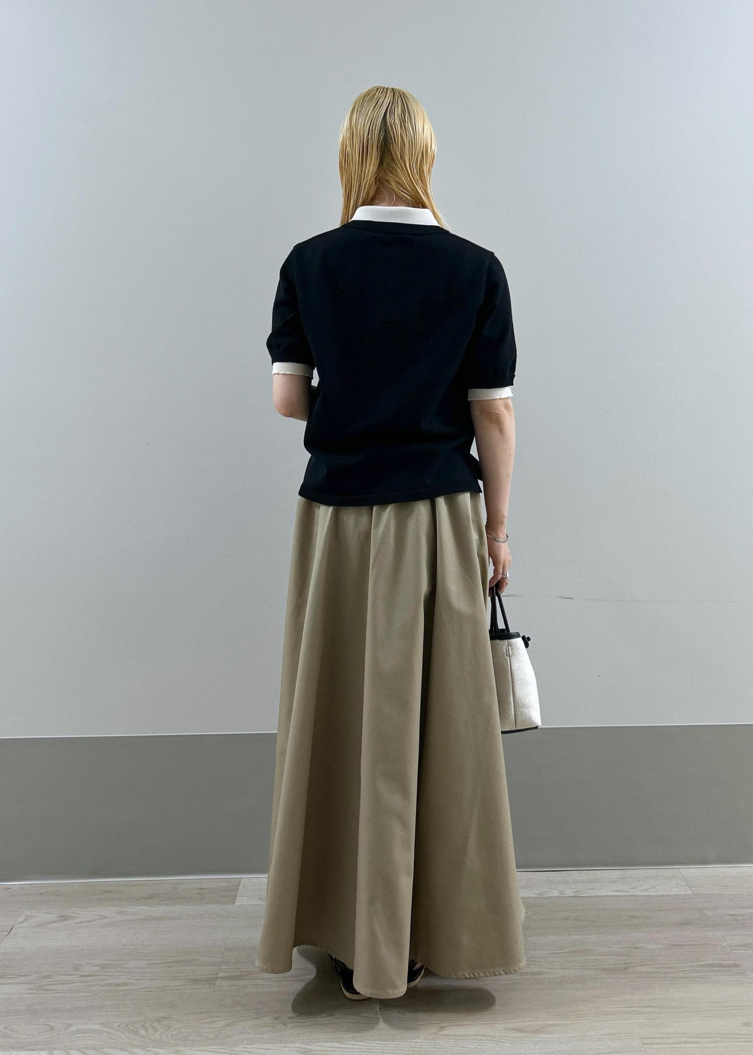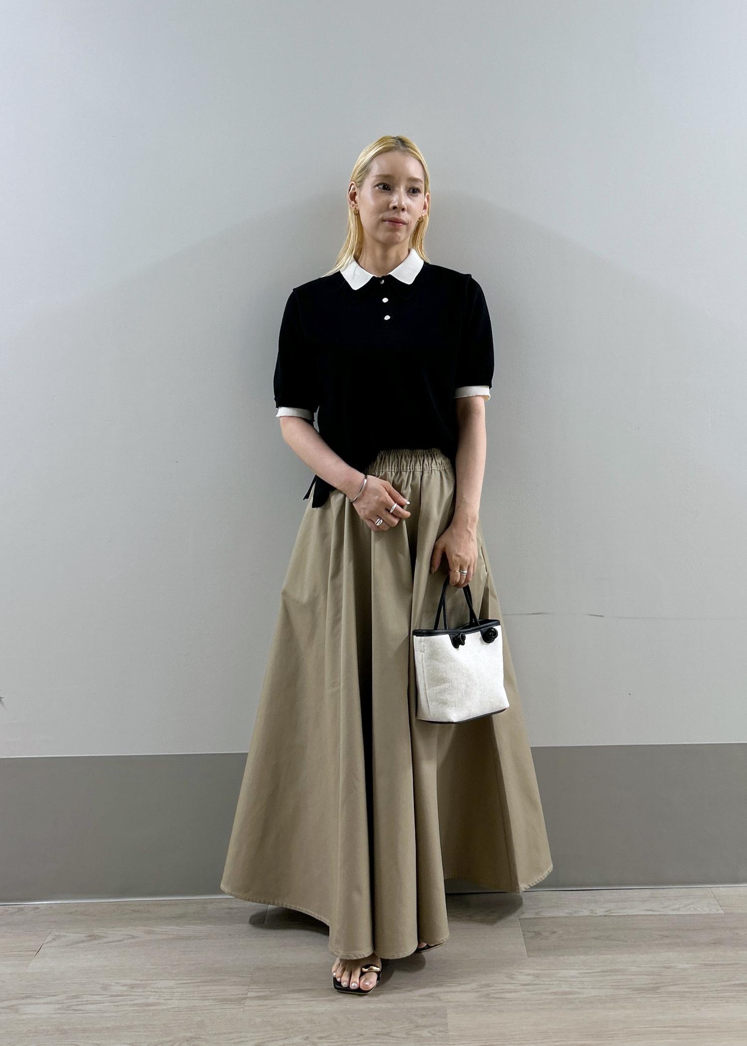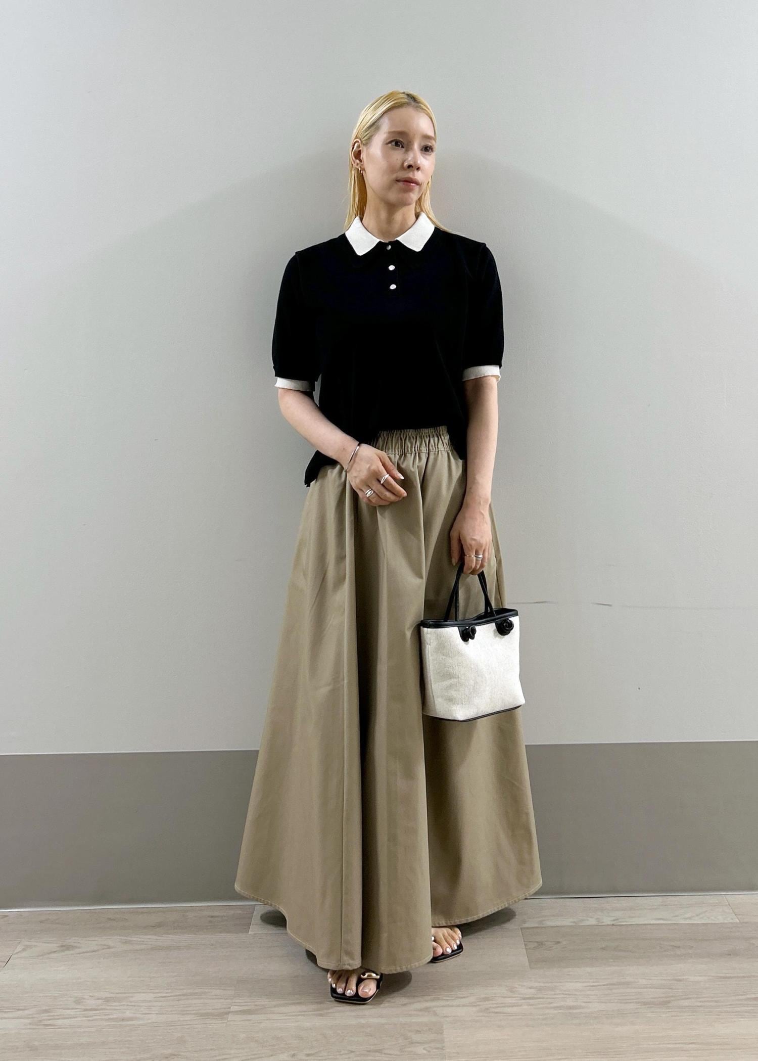 カジュアルになりすぎないようカラーはブラックを選び、大人見えのスカートで合わせてみました。