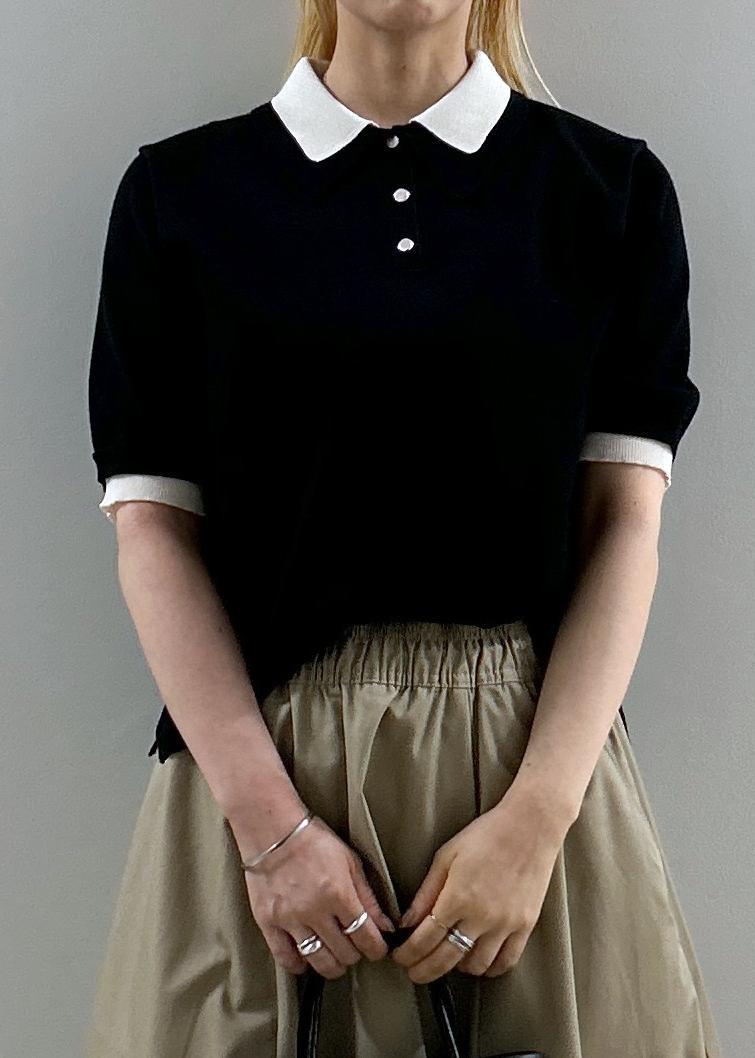 ROPÉ PICNIC【新色追加】バイカラーレイヤード風ニットポロシャツブラック系 / 38¥4,499レビューボディラインを拾いにくい素材感です。