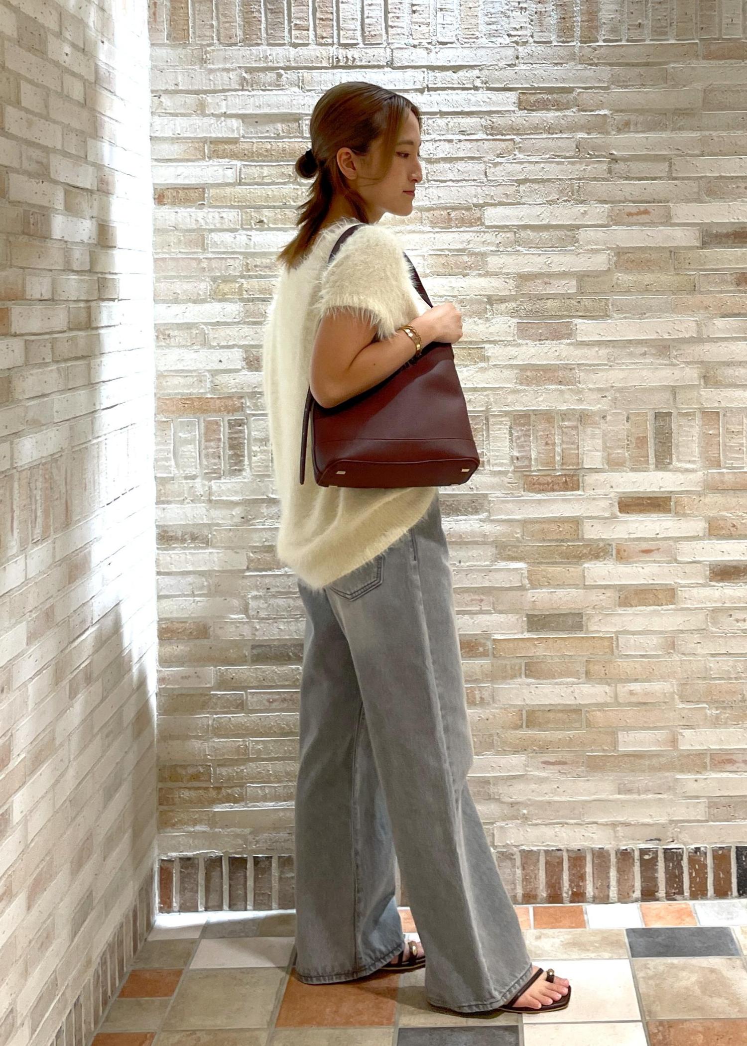 肩先が隠れる袖丈なので二の腕がすっきりと見えて、素材から秋を先取りできるアイテムです♫ -