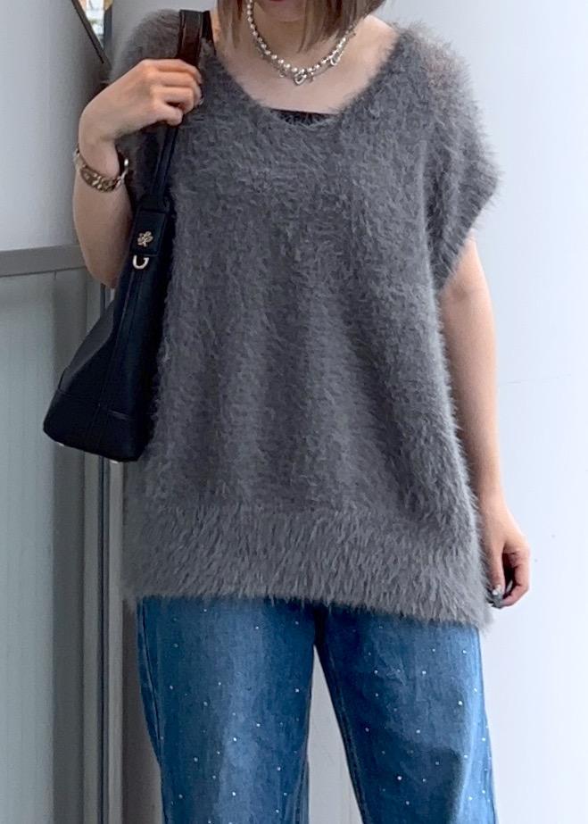 ROPÉ PICNICシャギーニットベストグレー / F¥3,993レビュー肩周りがしっかり隠れる袖丈なので、中にキャミやタンクトップを合わせて着用しても腕を細く見せてくれます◎