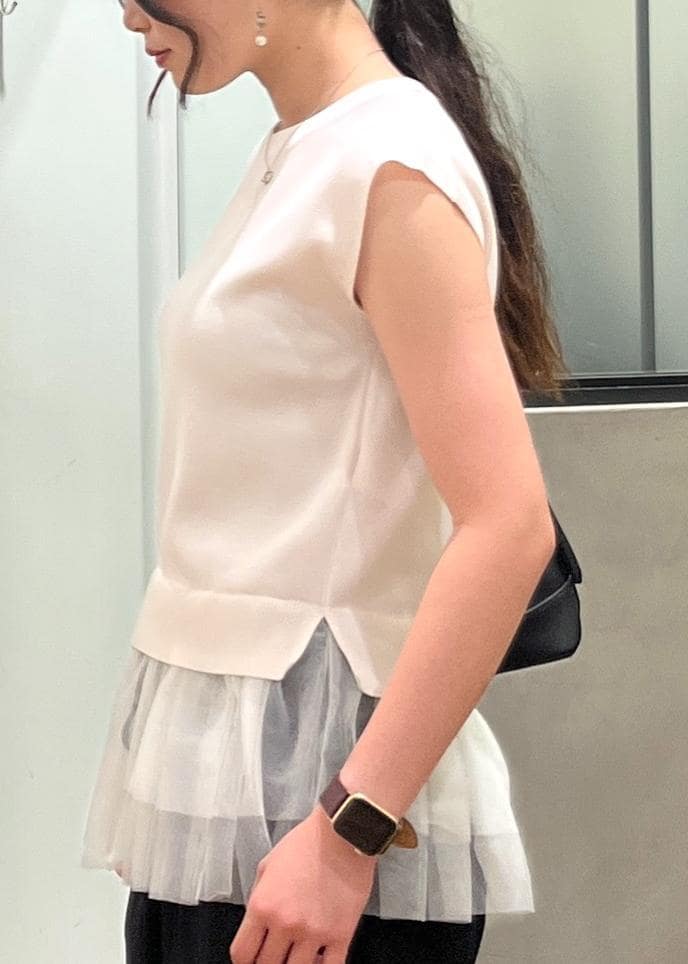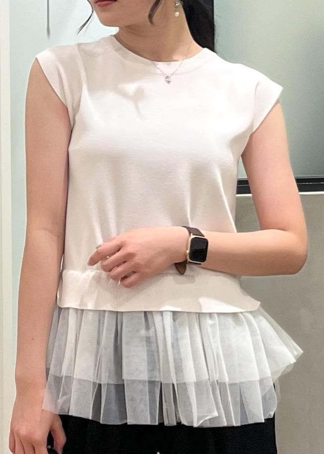 ROPÉ PICNICチュールドッキングプルオーバーキナリ / F¥2,992レビューニット部はとても柔らかく、1枚でレイヤード風になるので、暑い夏にピッタリです!