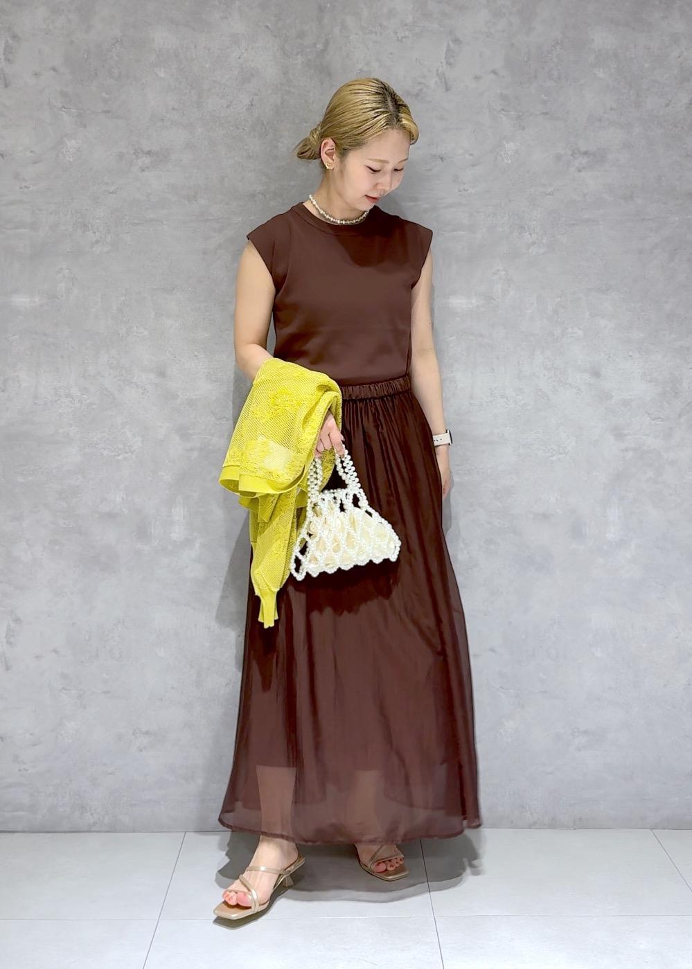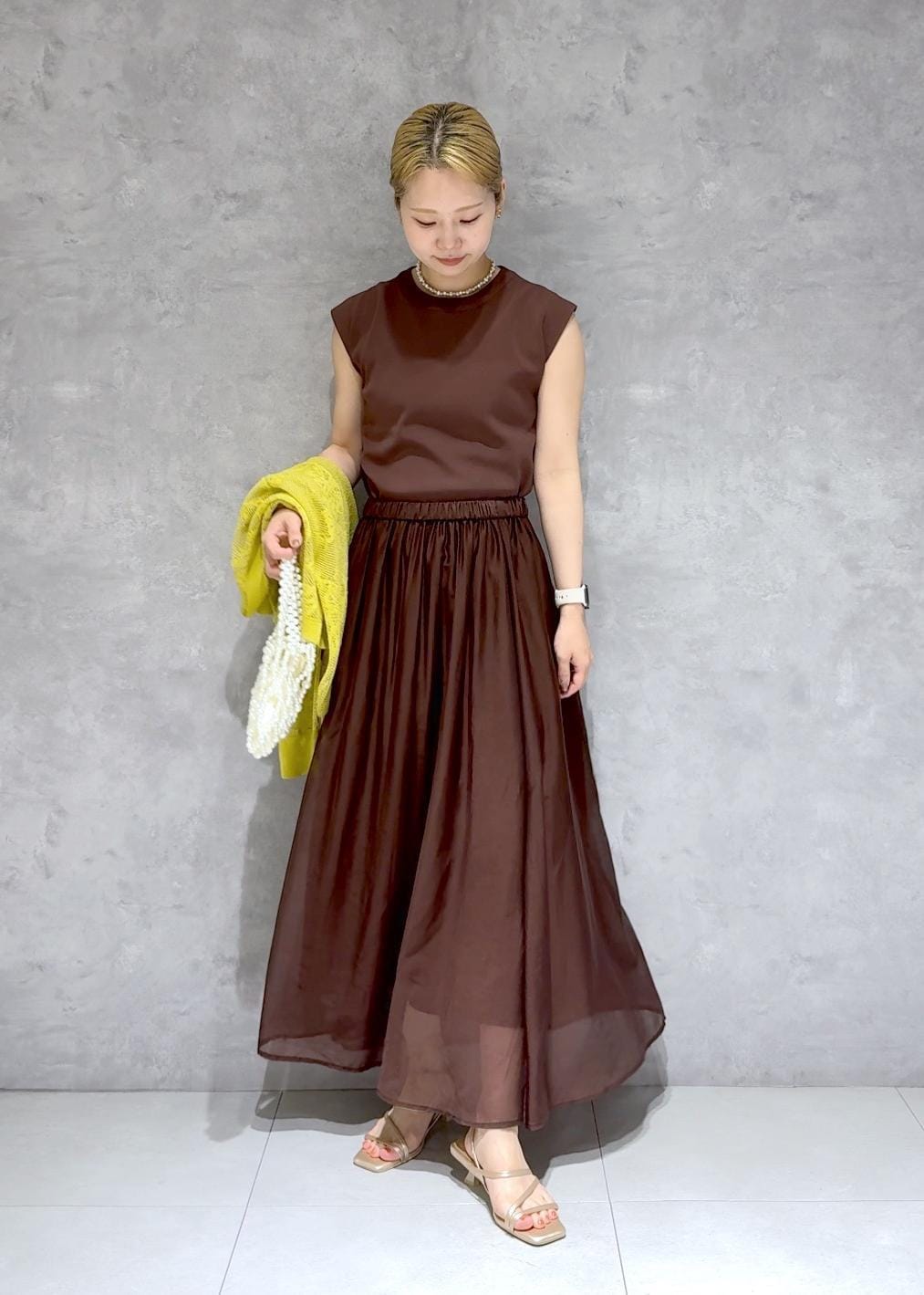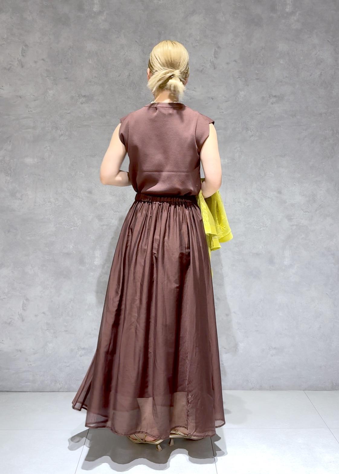 薄手で柔らかく軽い生地で光沢感がキレイなシアースカートです。